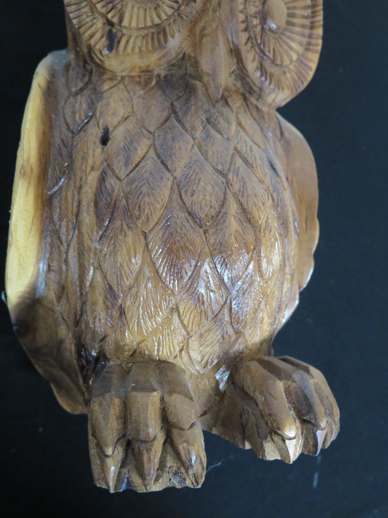 Carved Wooden Owl 9" x 14"H