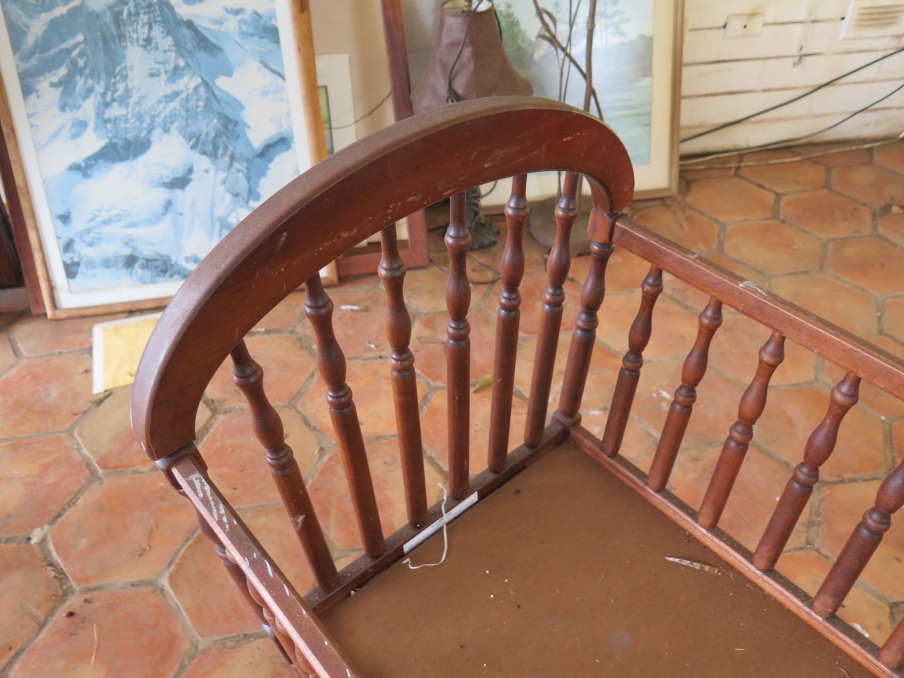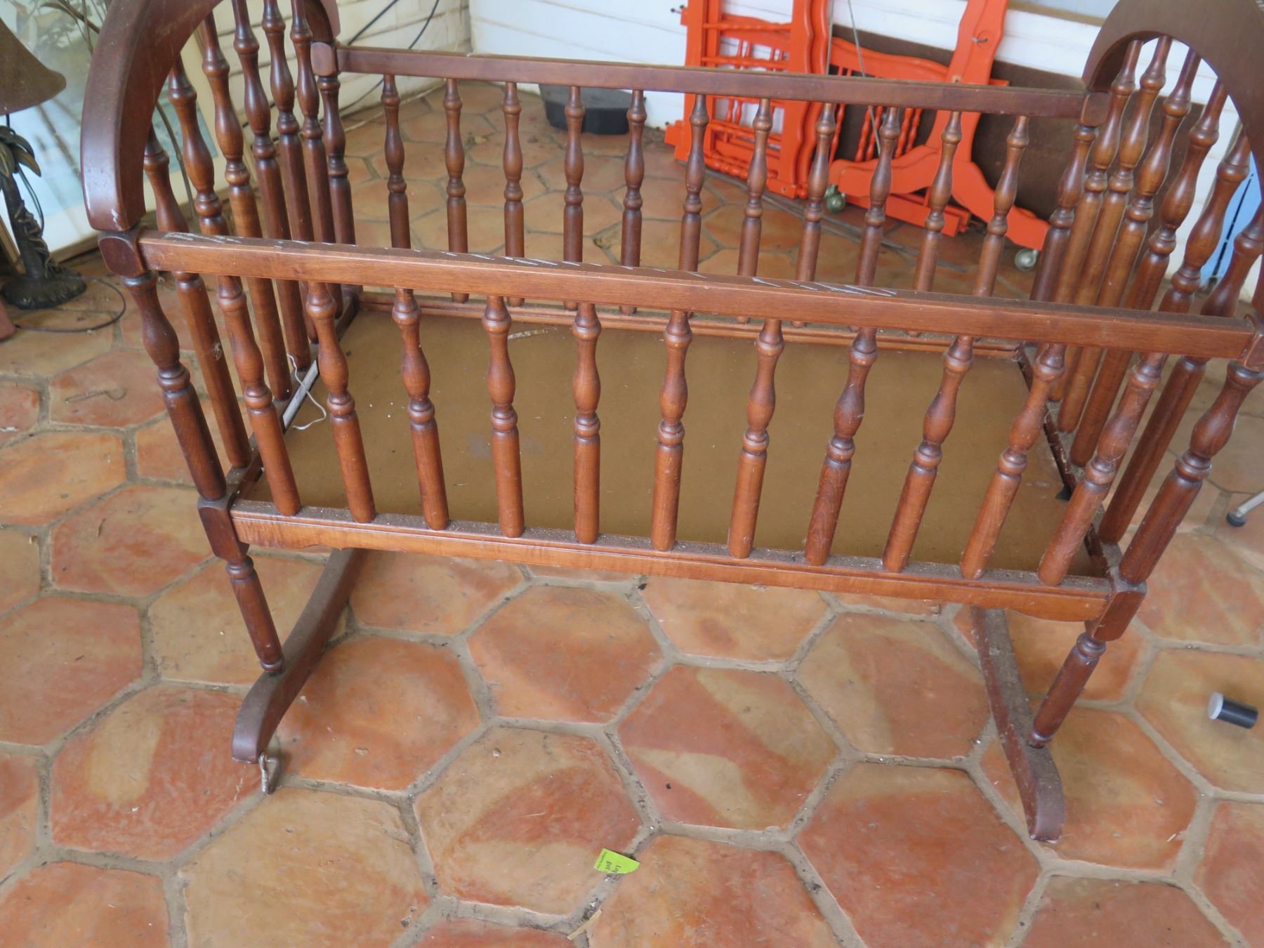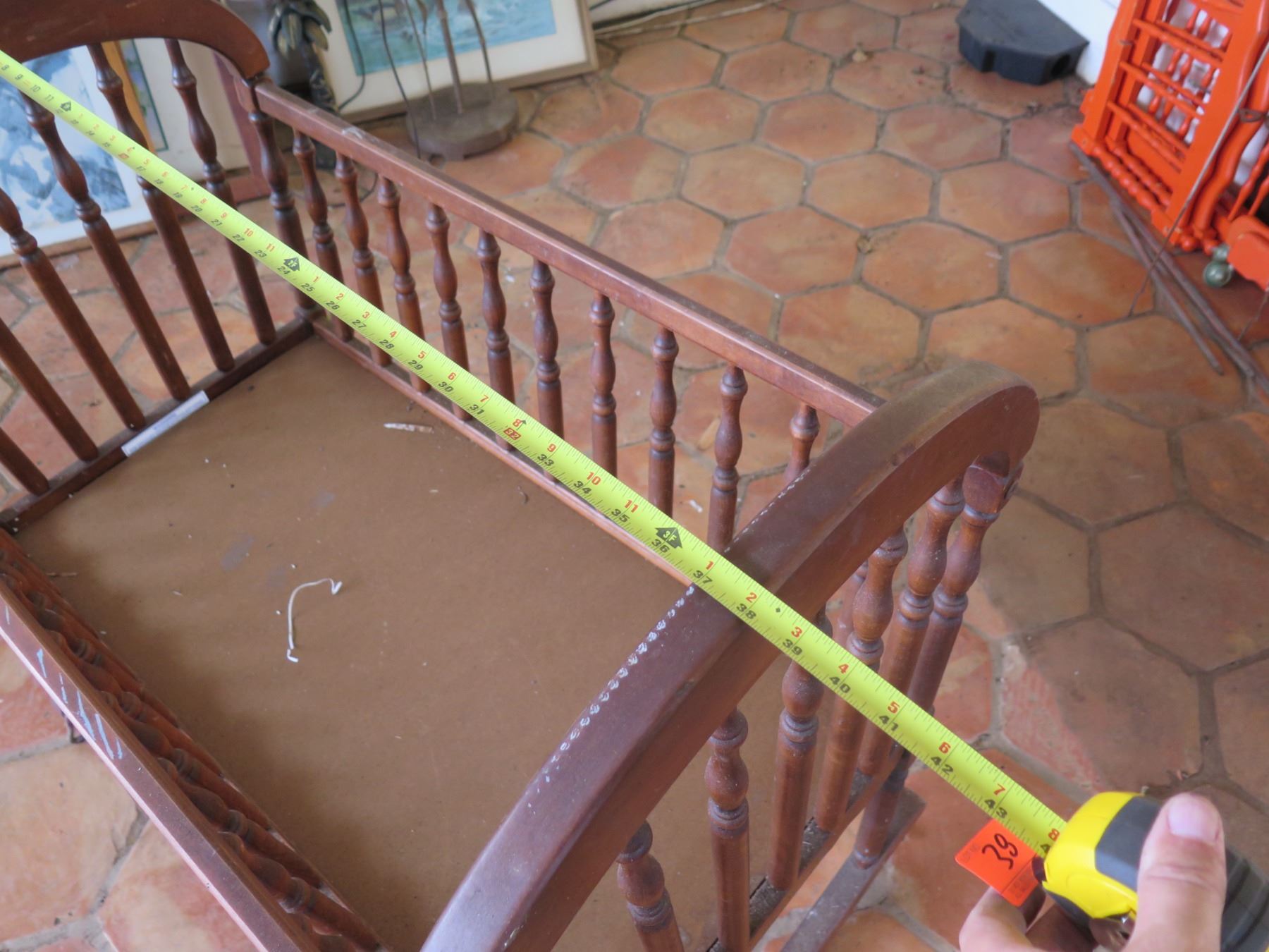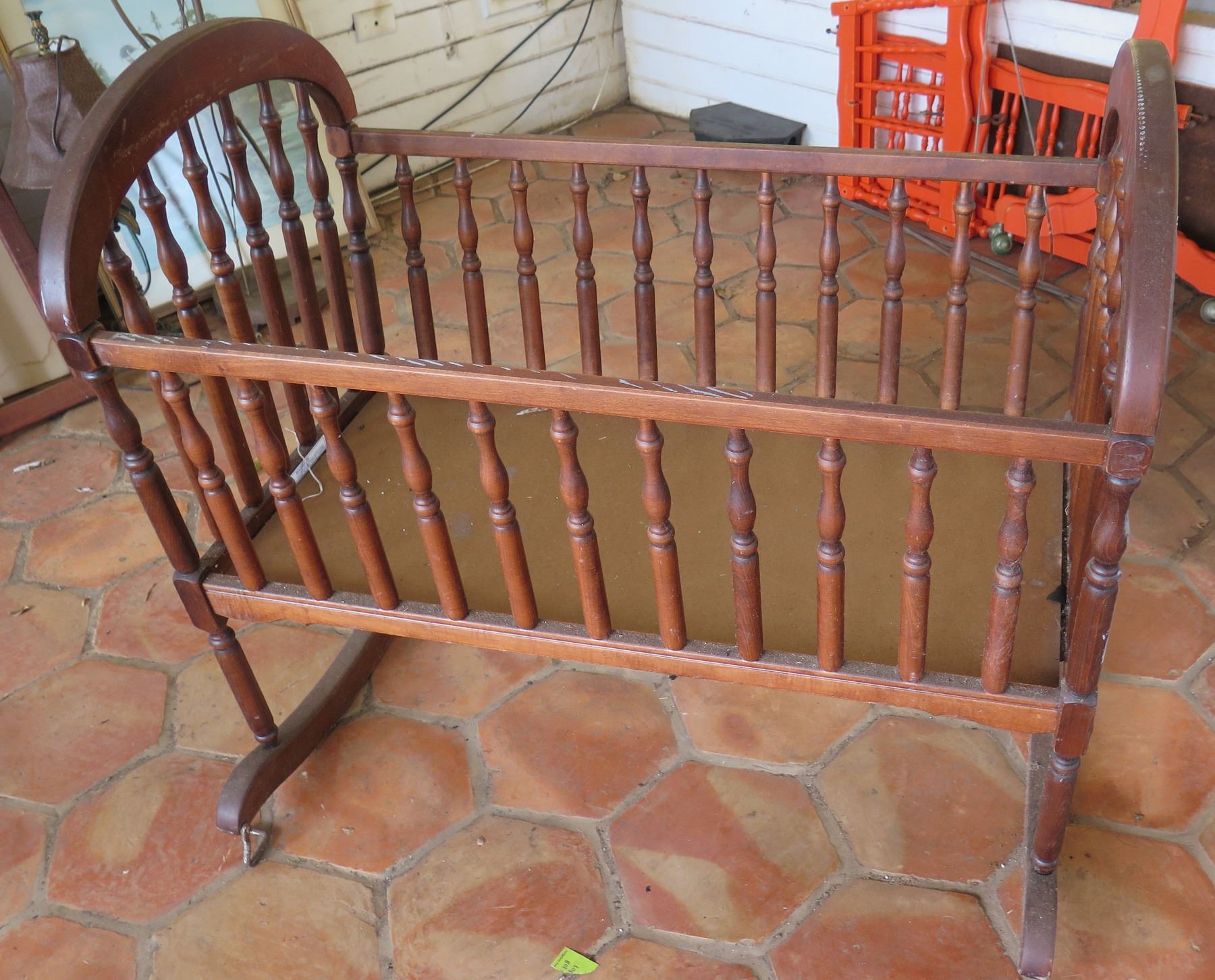 Carved Wooden Rocking Crib Cradle 38"x22"x27"H