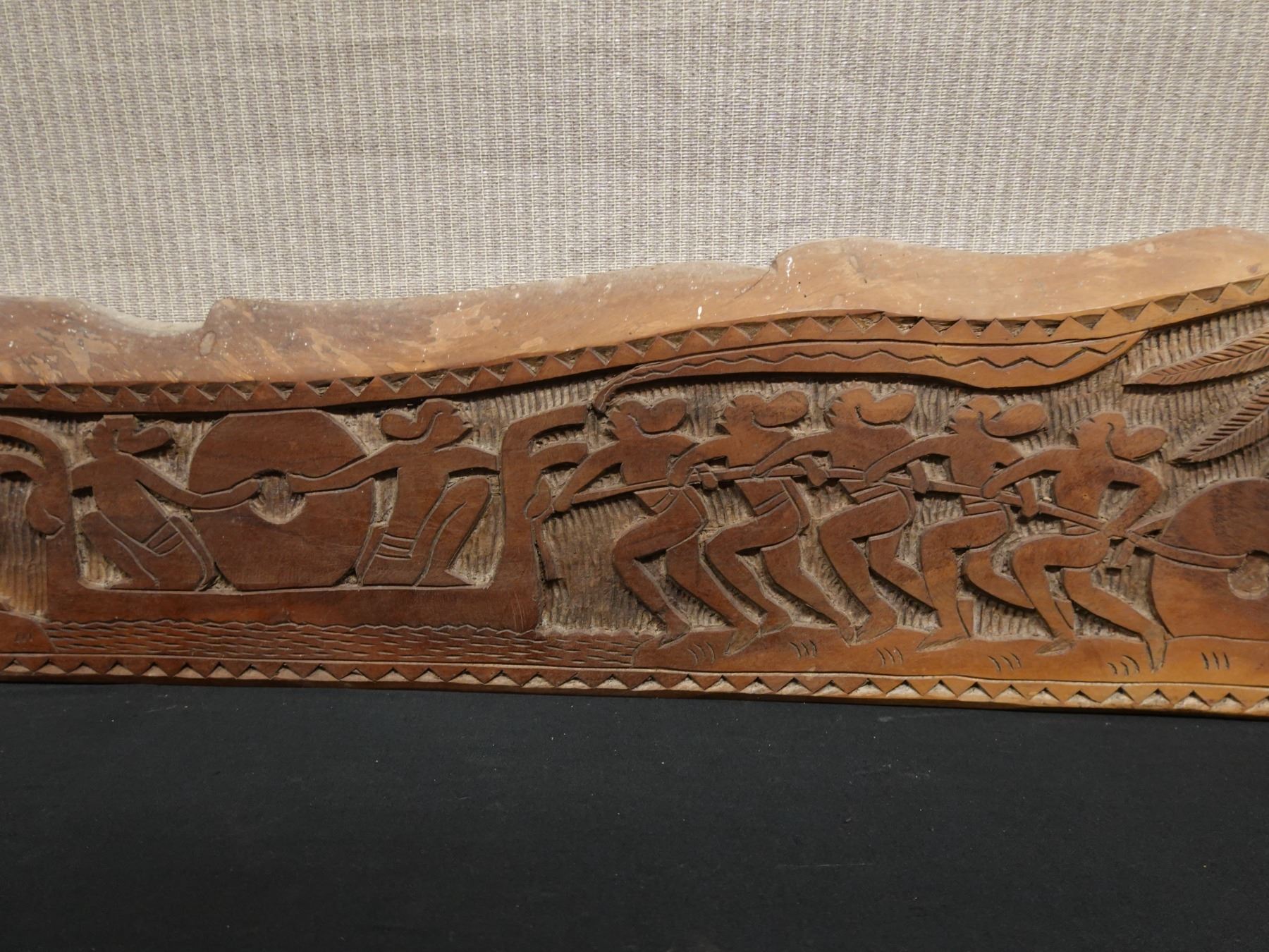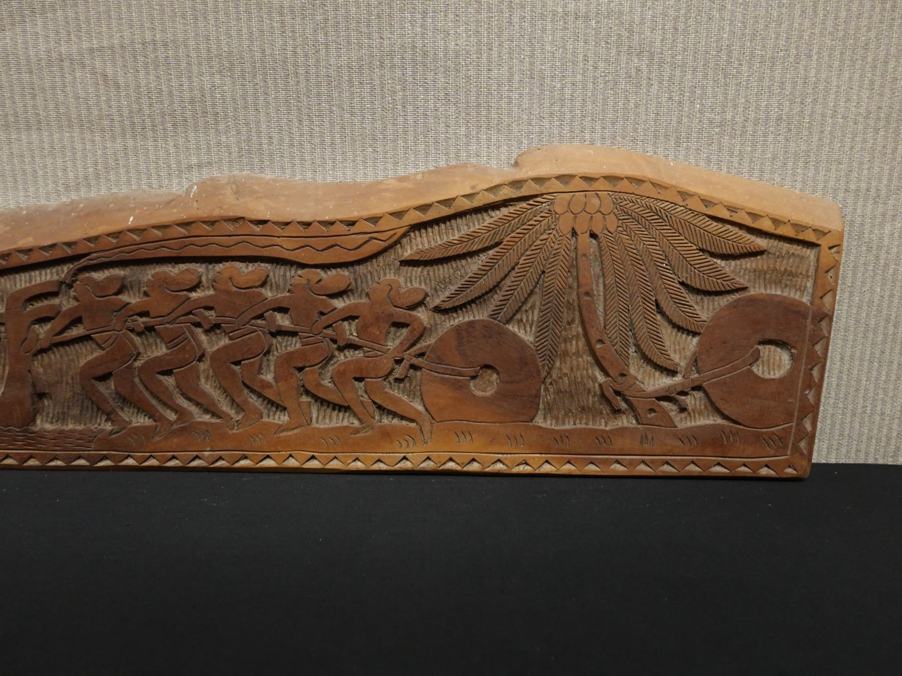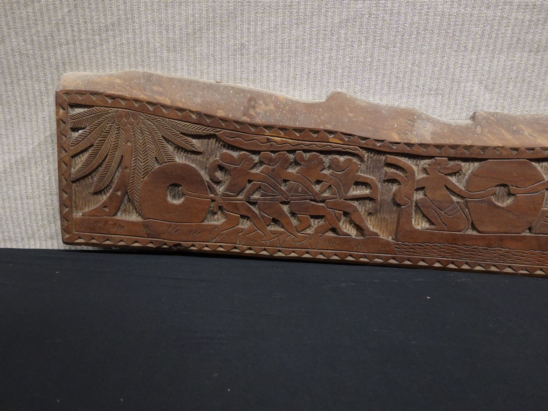 Carved Wooden Story Board Wall Hanging from Palau Micronesia - Money Stones 50.5" x 10" x 1"