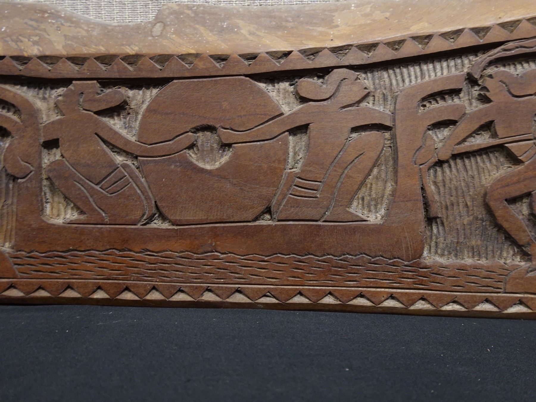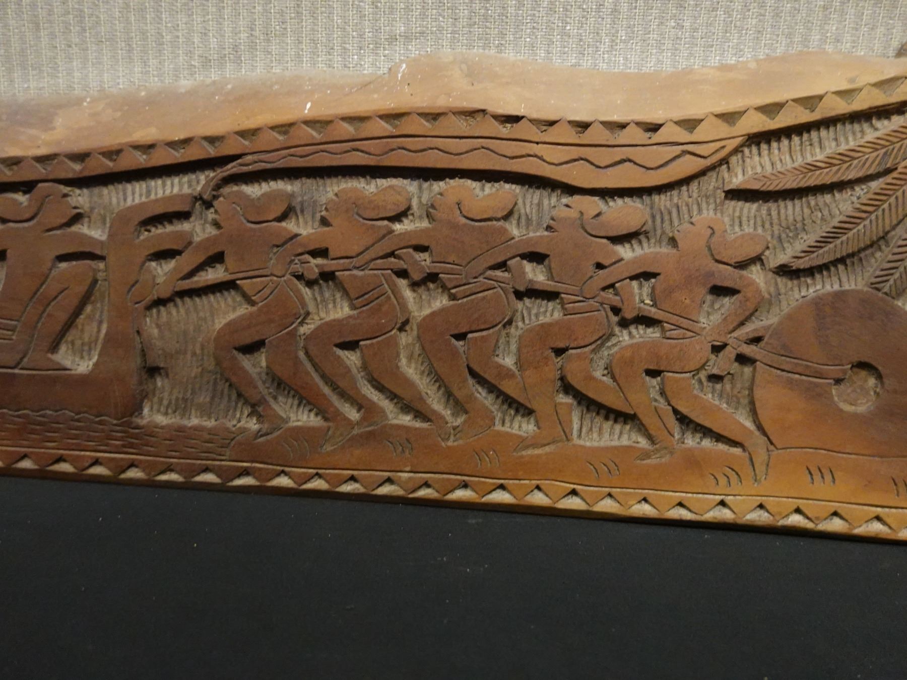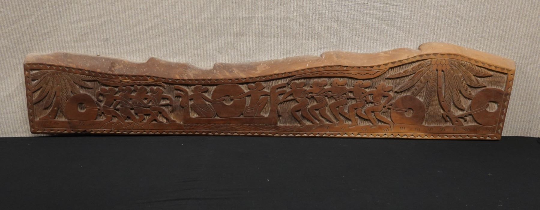 Carved Wooden Story Board Wall Hanging from Palau Micronesia - Money Stones 50.5" x 10" x 1"
