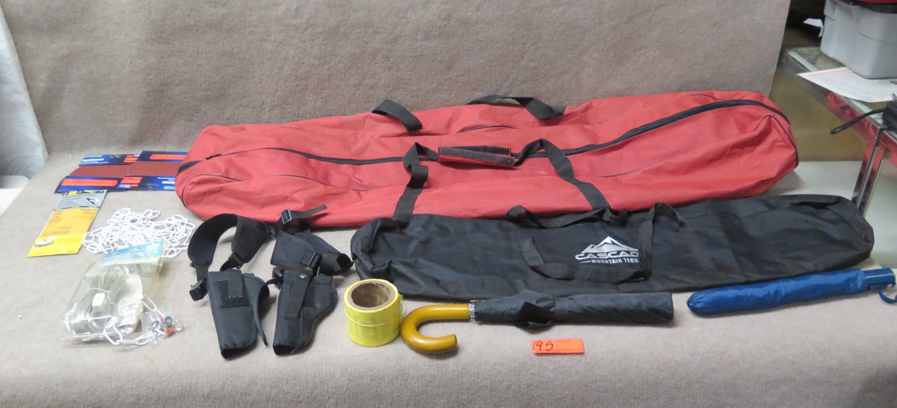 Cascade Mountain Tech & Red Duffle Bag, Umbrellas, Holsters, Swag Light Kit, etc