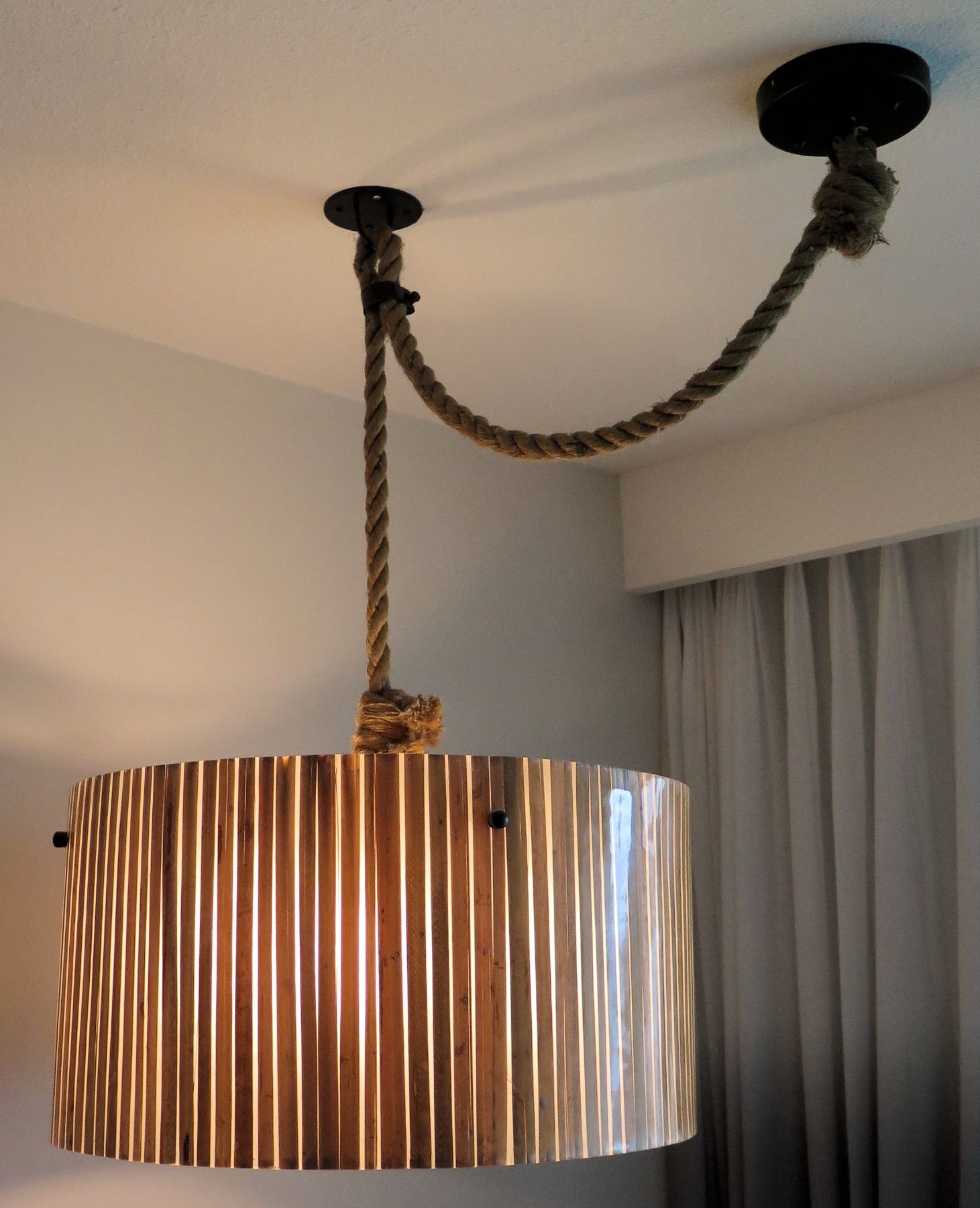 Ceiling Lamp, Acrylic Cylinder w/ Bamboo-Like Design & Cord 23"Dia,12"H