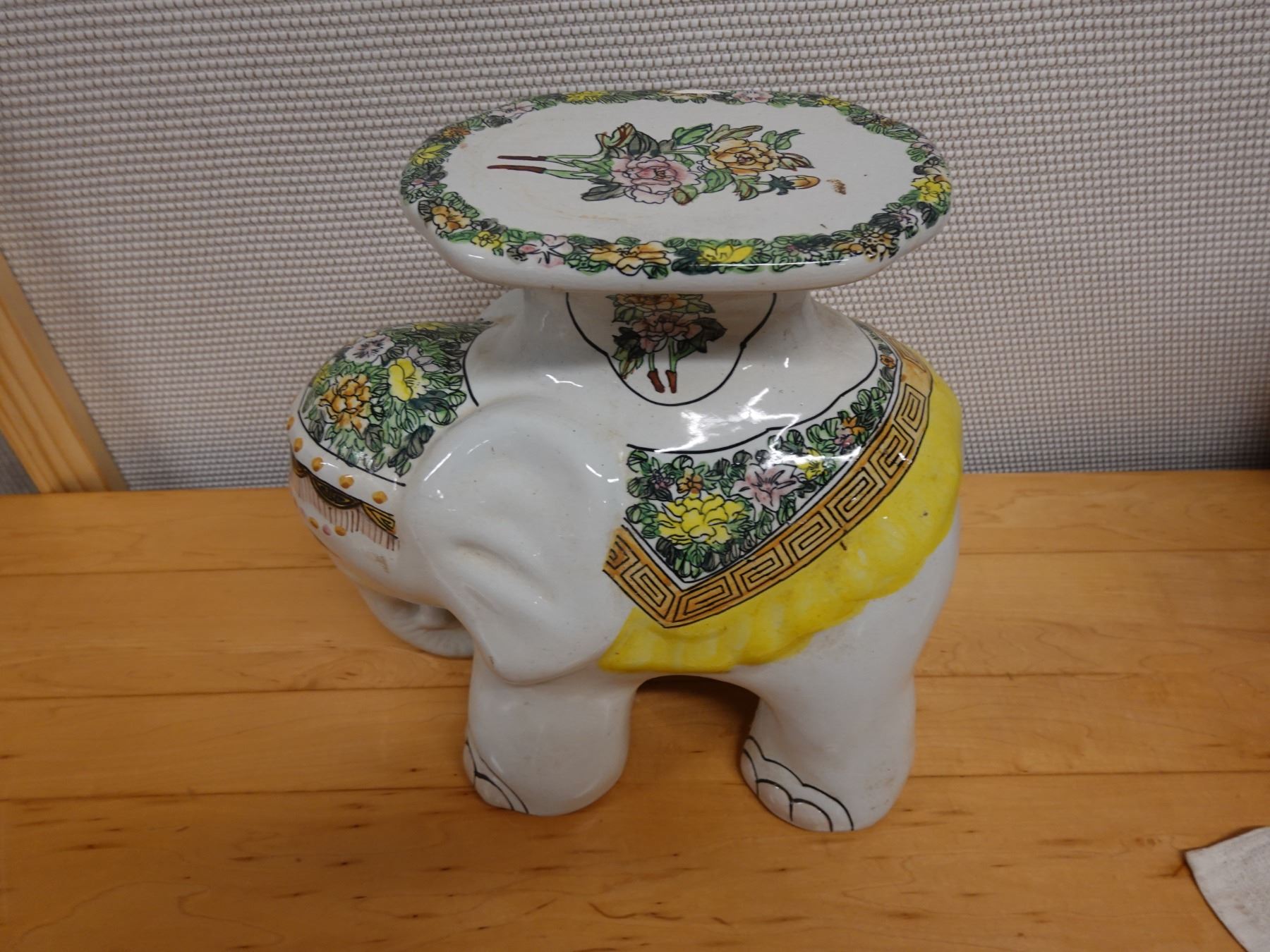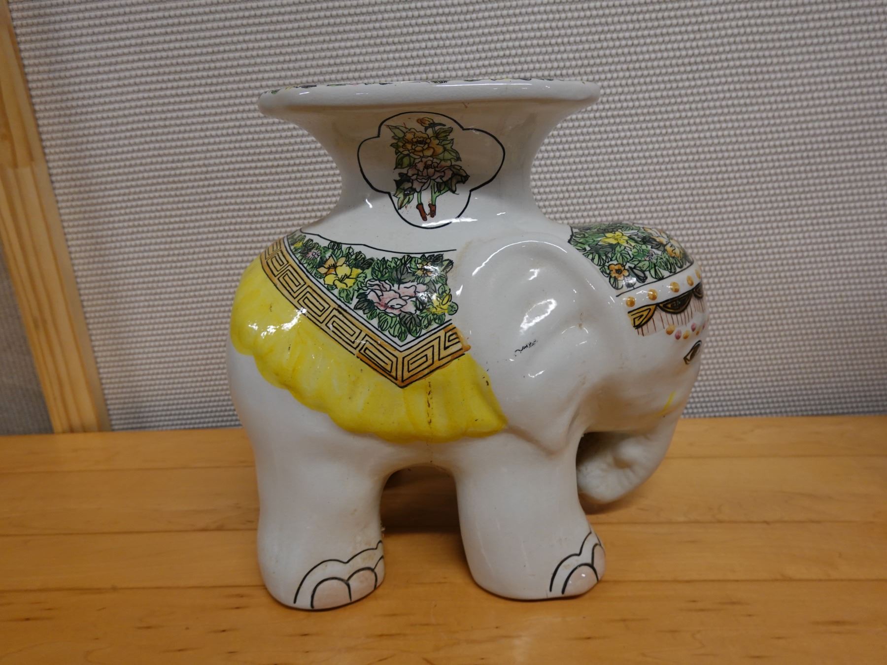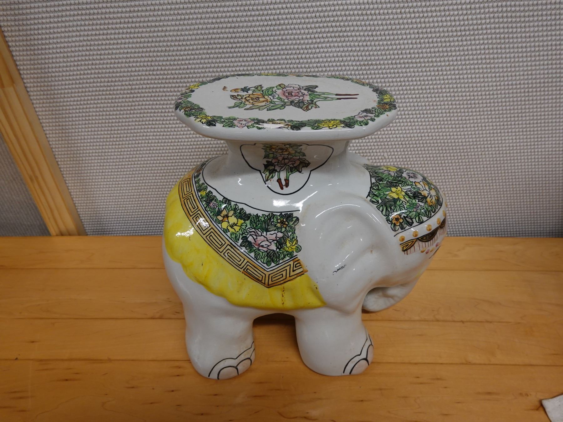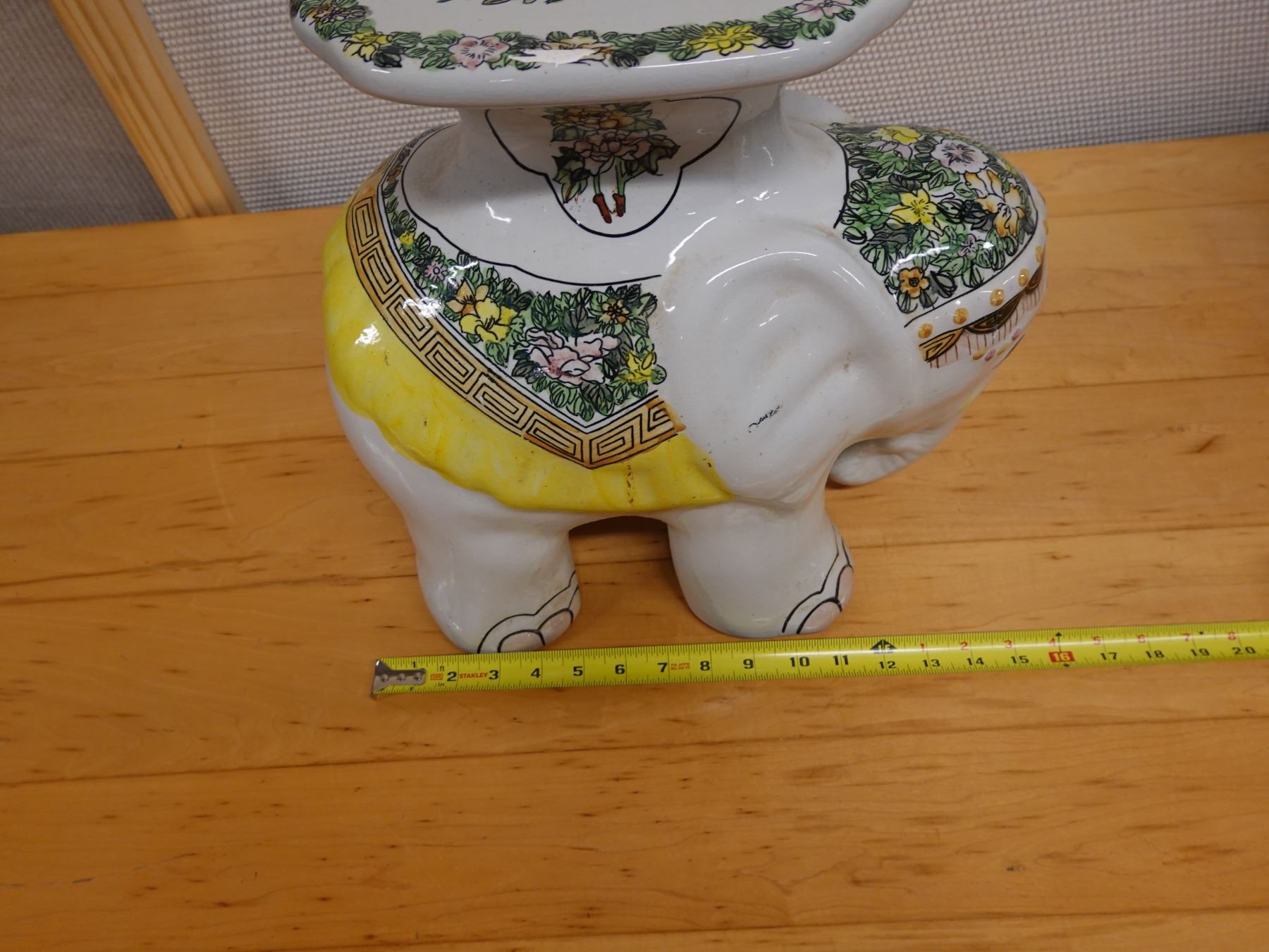 Ceramic Elephant Plant Stand w/ Maker's Tag 16" x 14"H