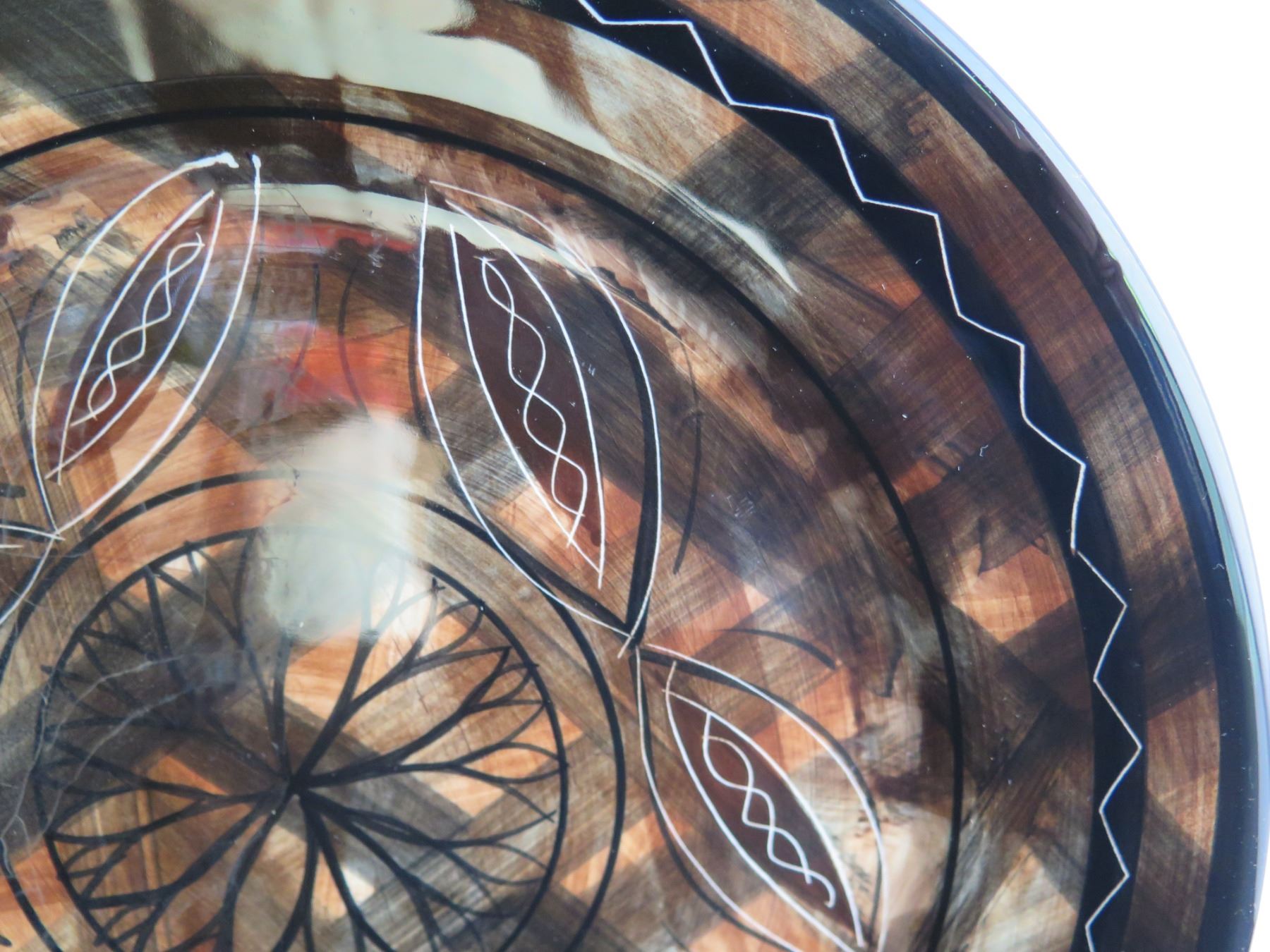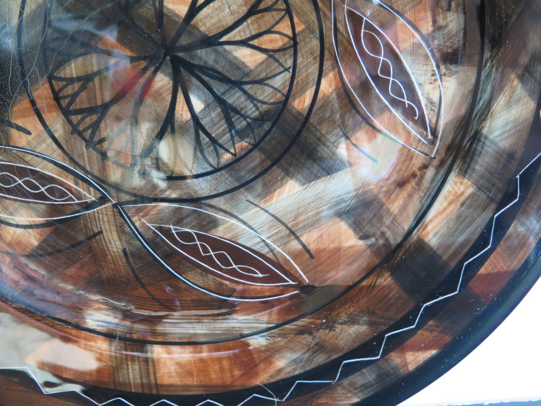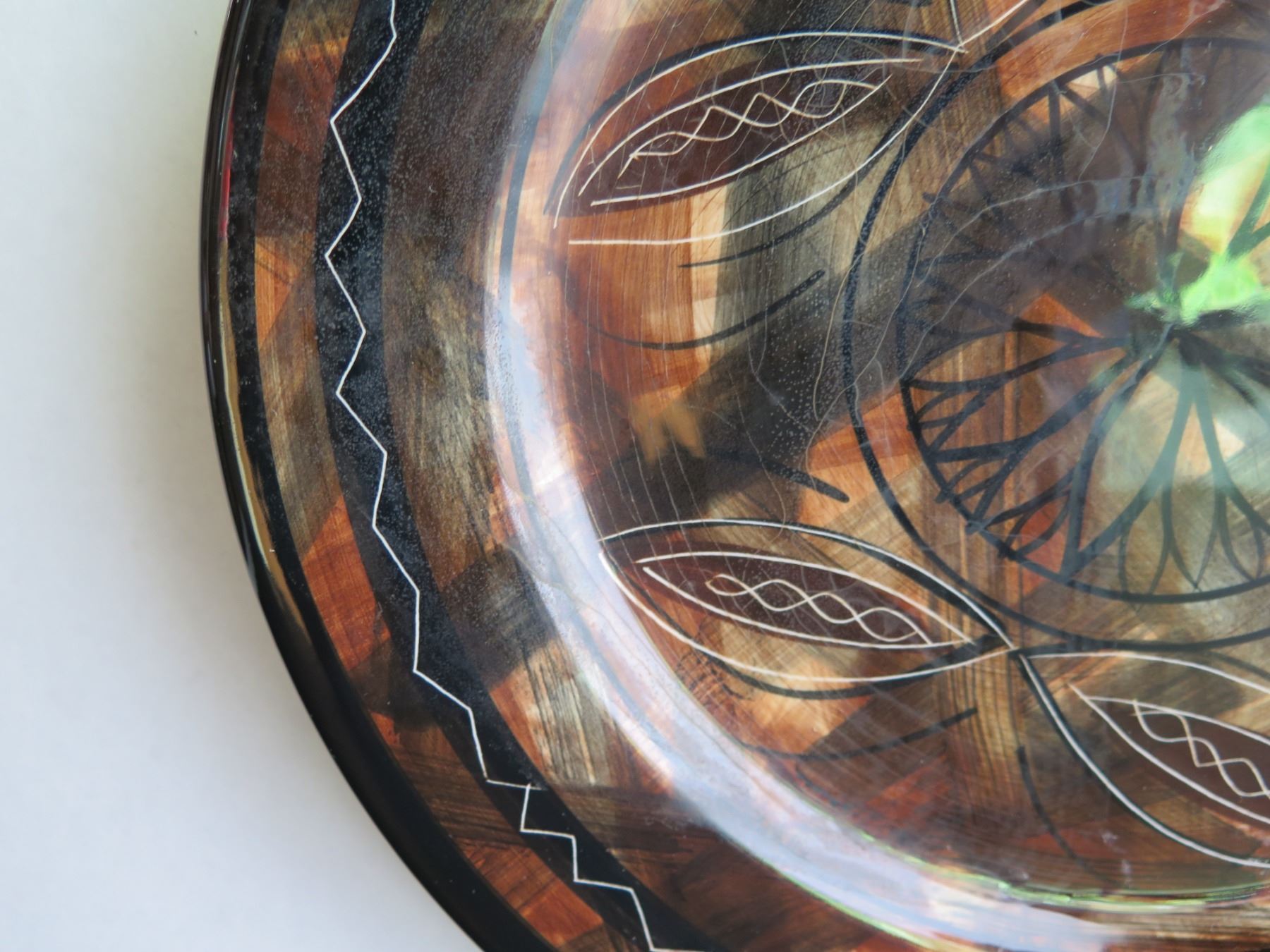 Ceramic Platter, New Zealand, Brown Black White, 11" Dia