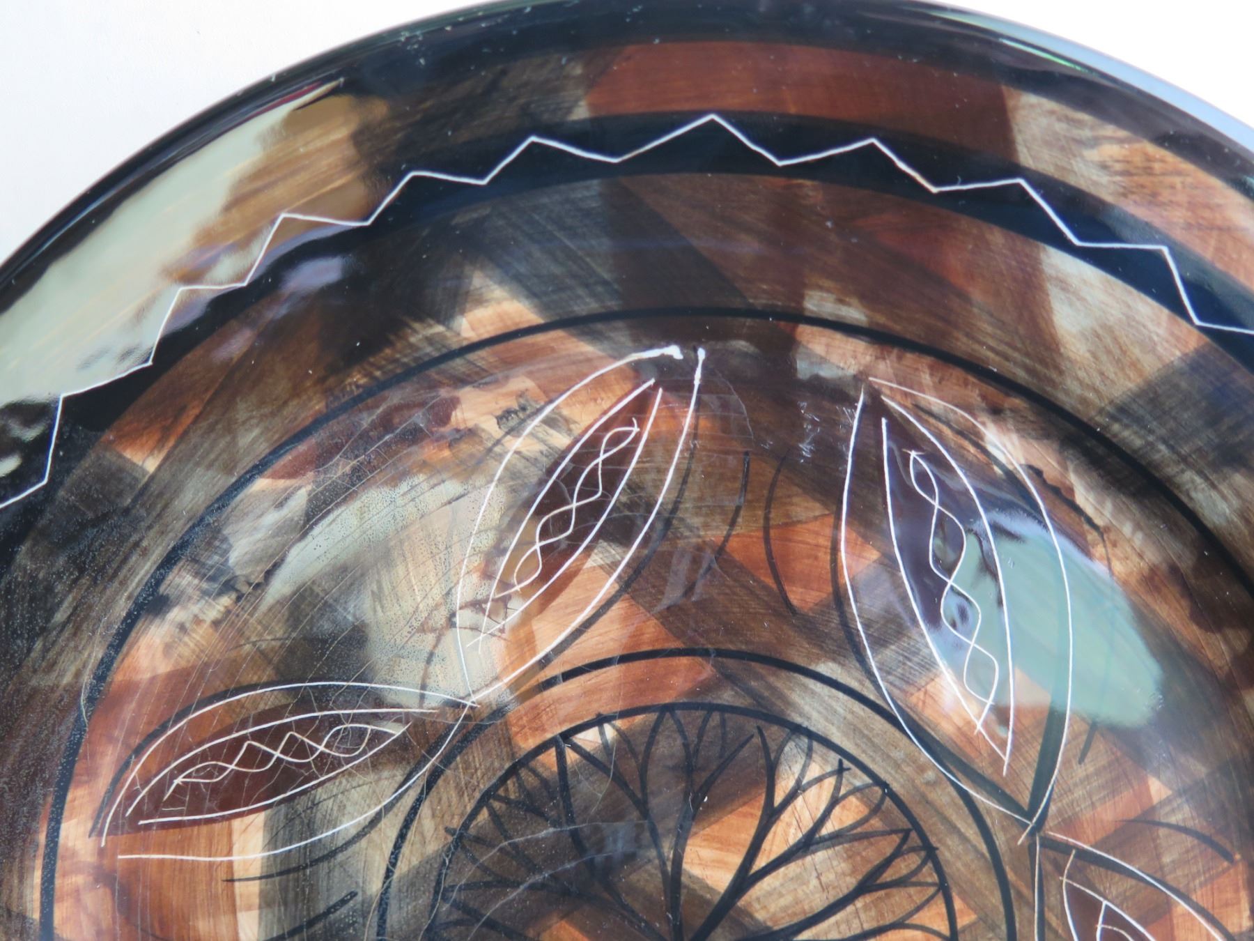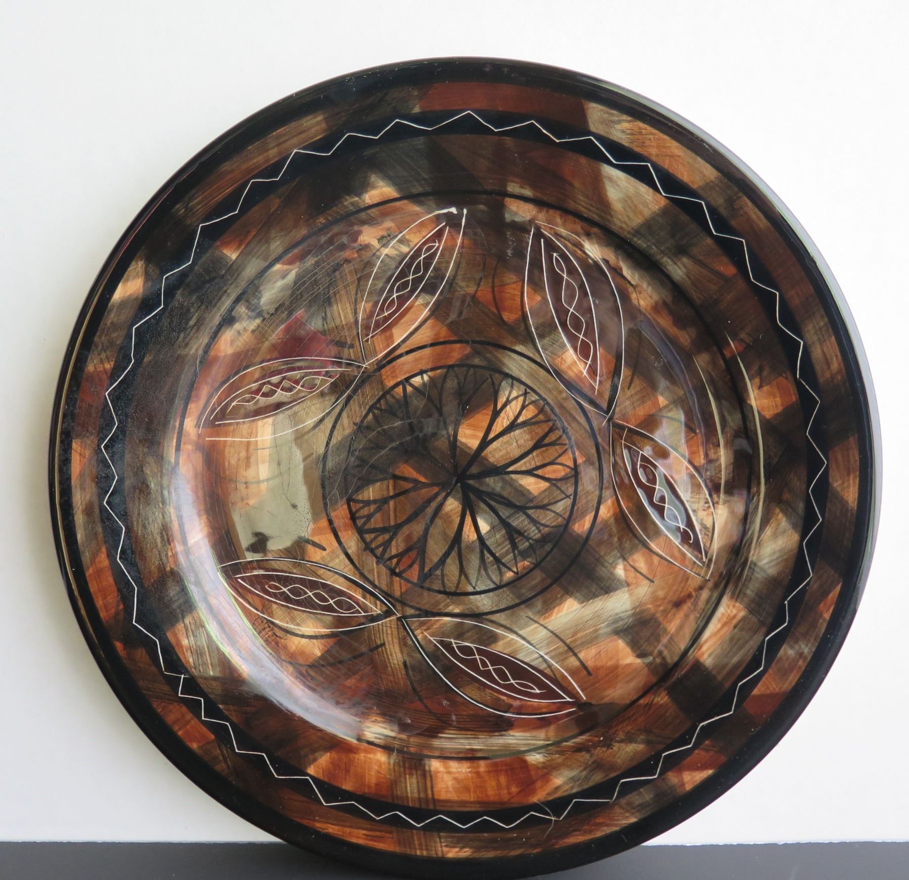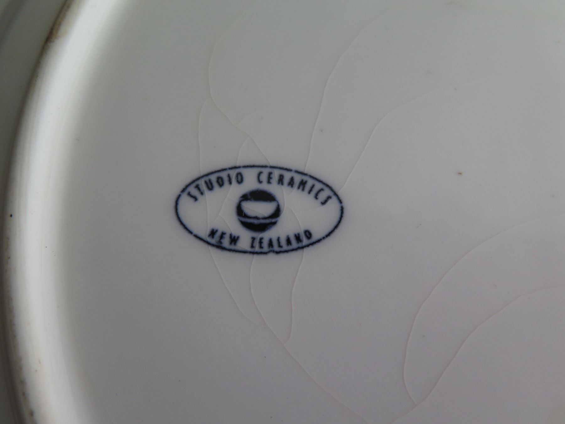 Ceramic Platter, New Zealand, Brown Black White, 11" Dia