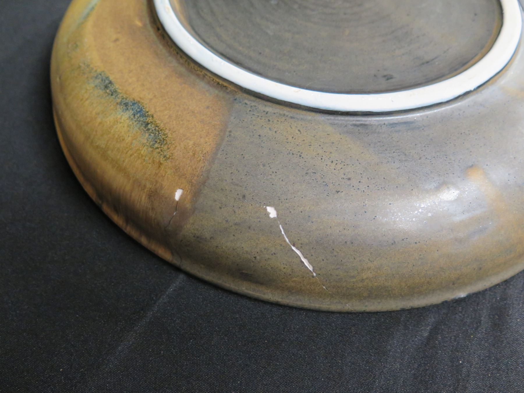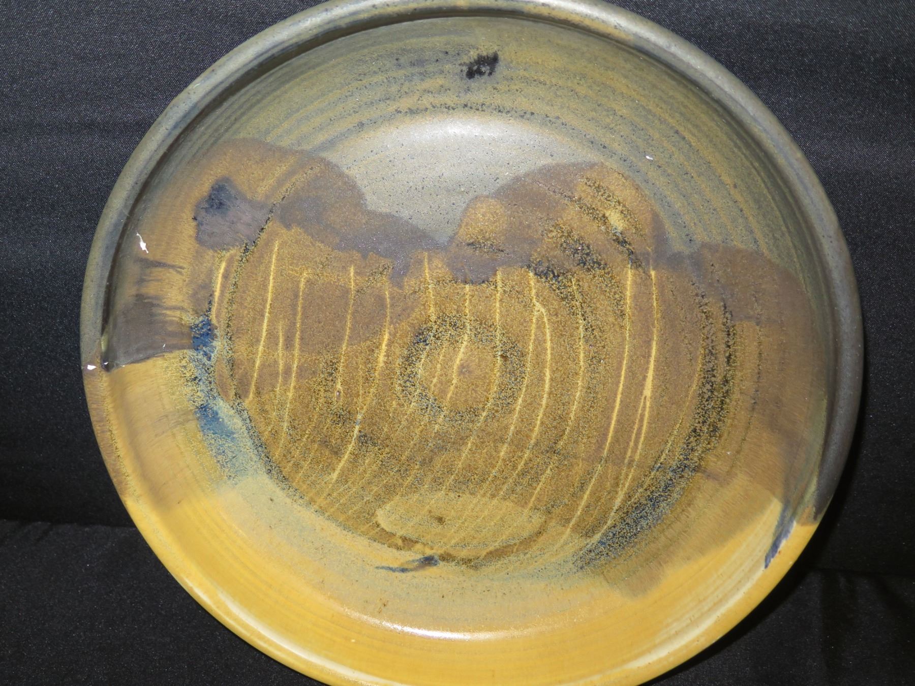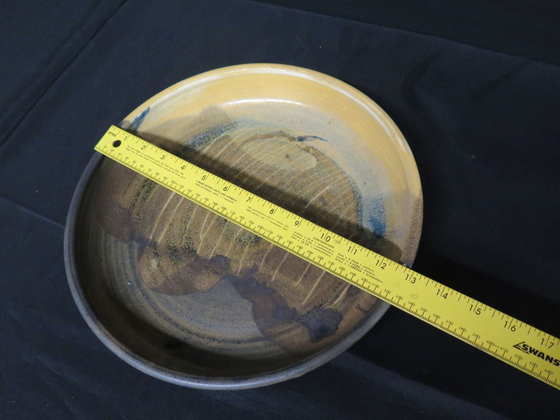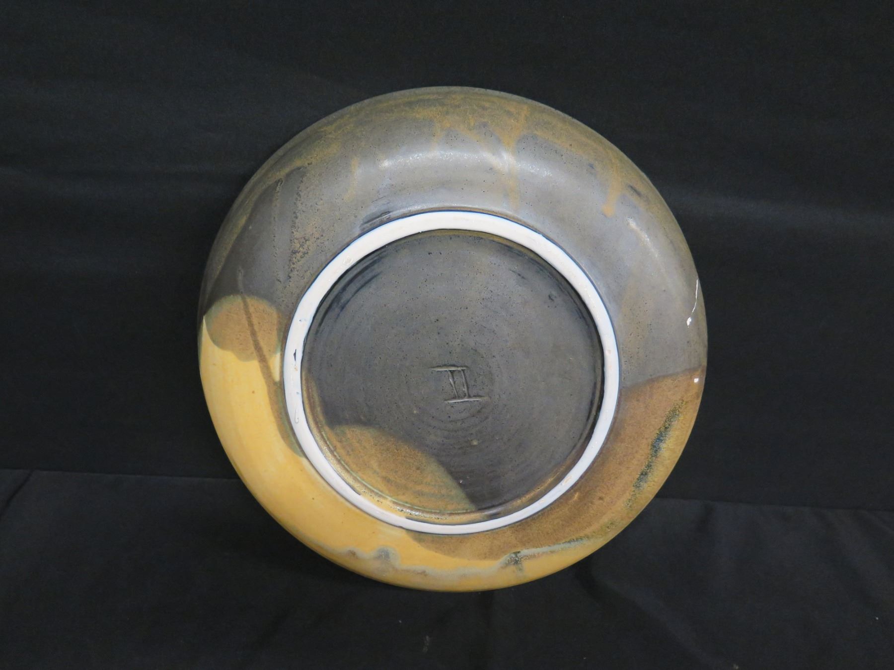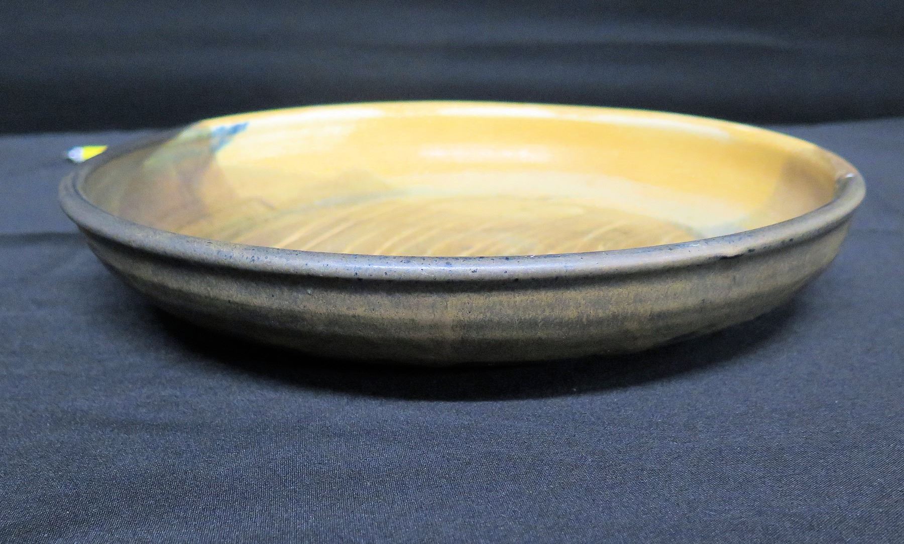 Ceramic Yellow Gray Pottery w/ Raised Edge, Signed II, 13"D