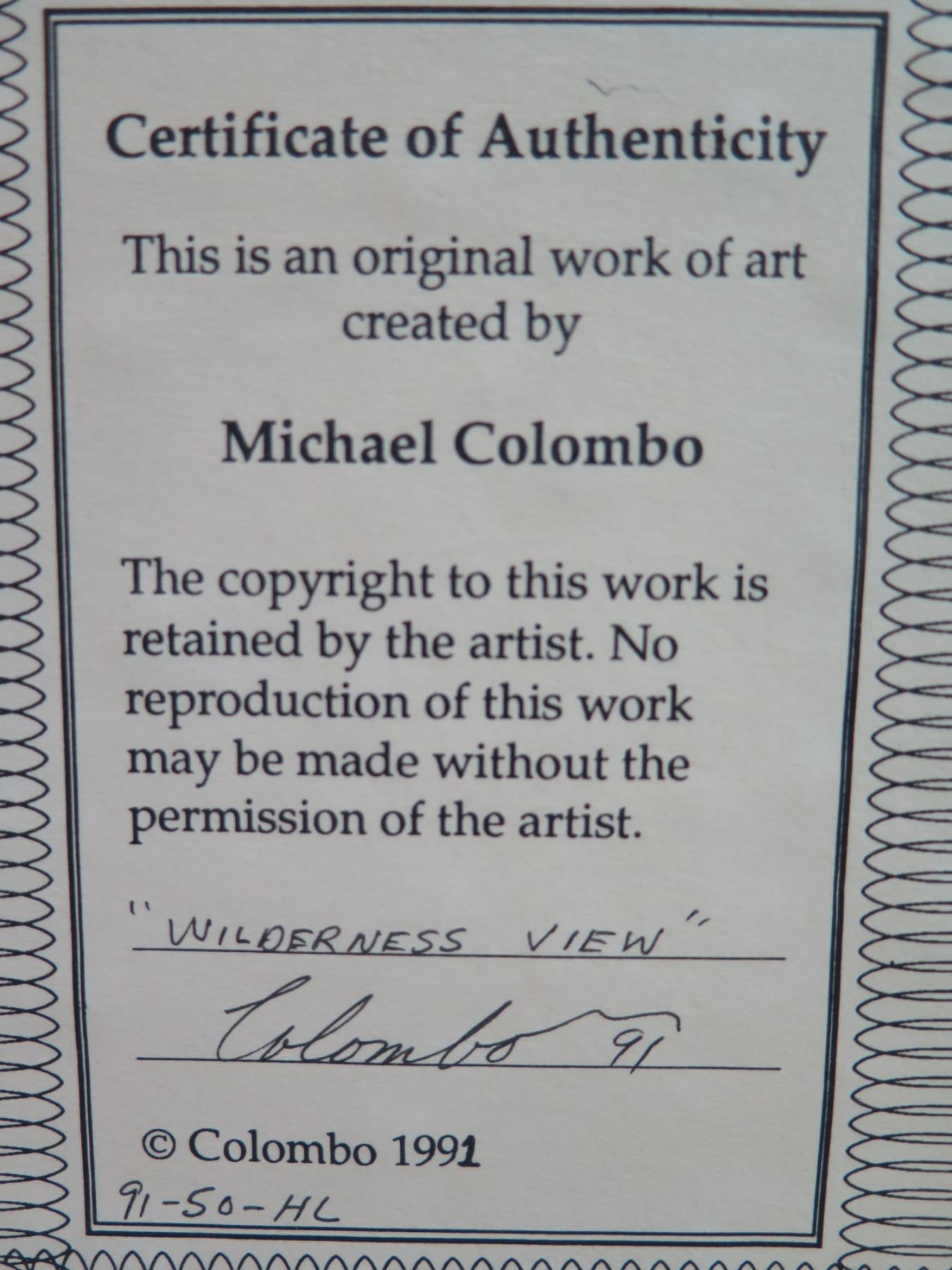 Certified Art Work Signed by Michael Colombo Matted & Wooden Framed 50"x26"