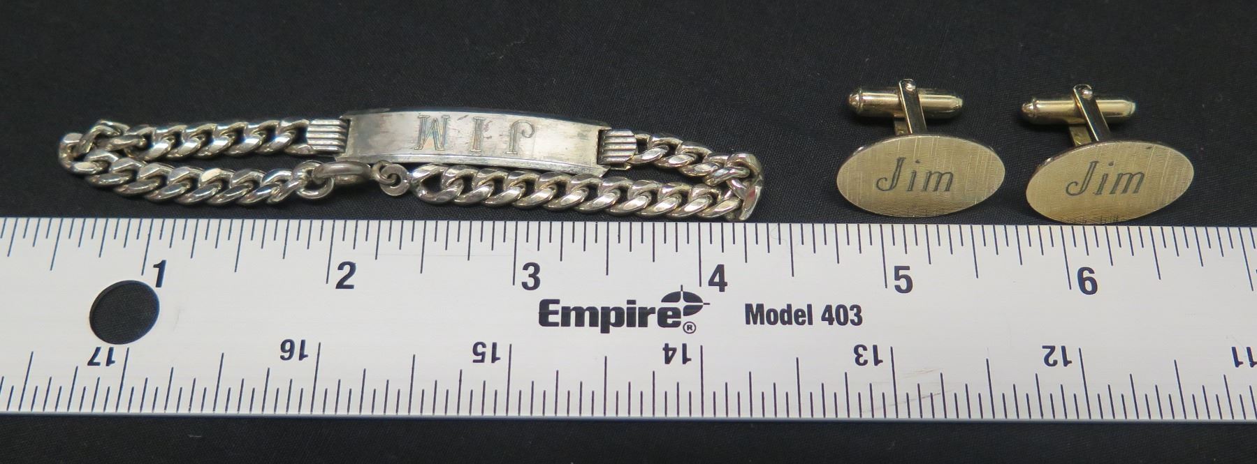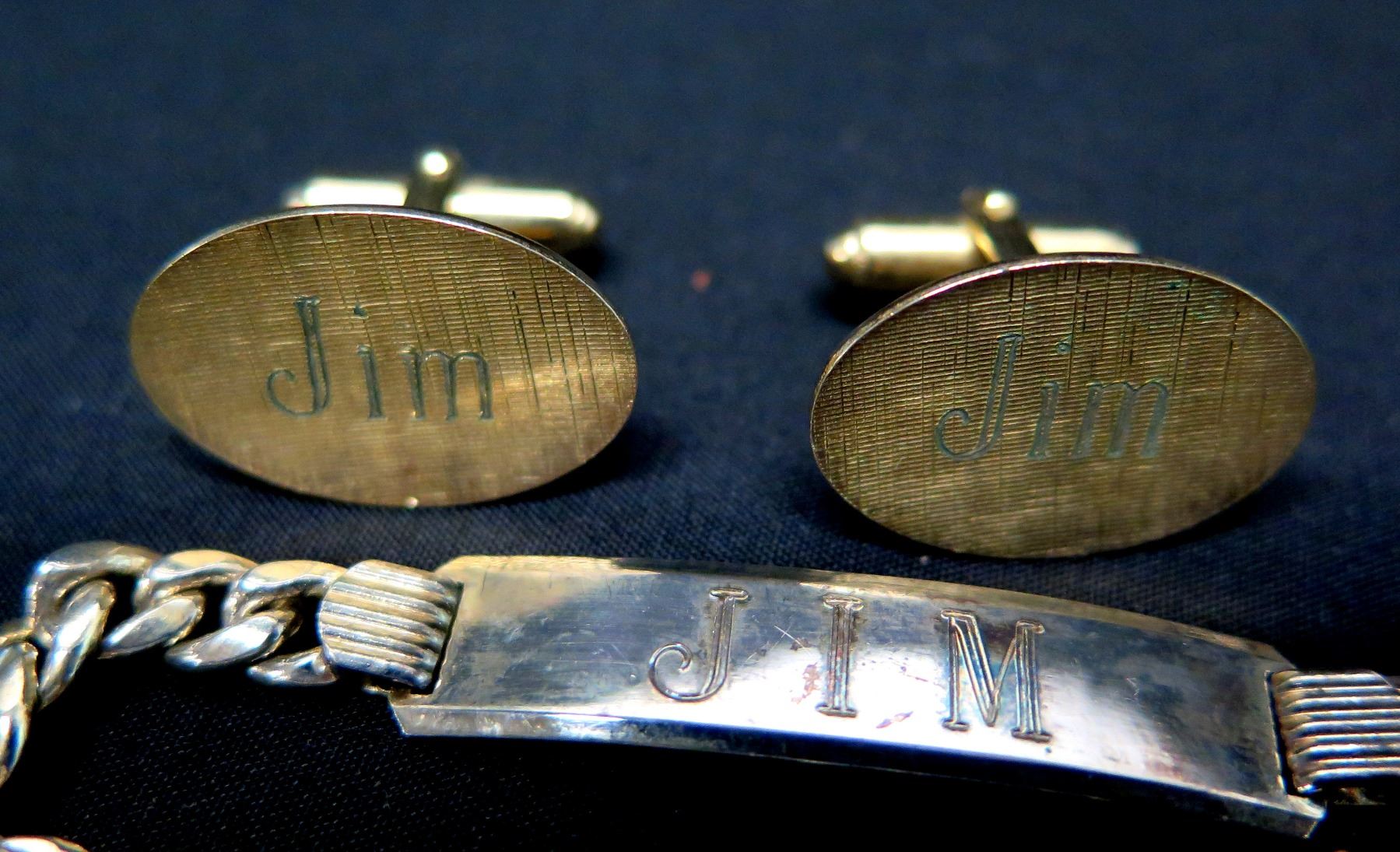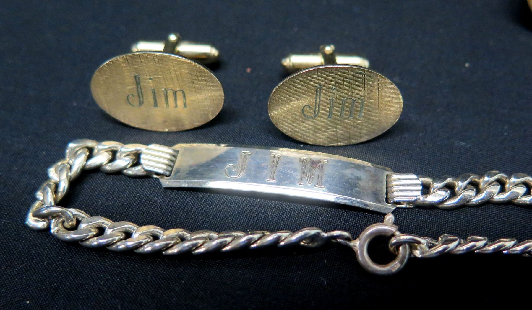 Chain Bracelet and Cuff Links, Engraved 'Jim'