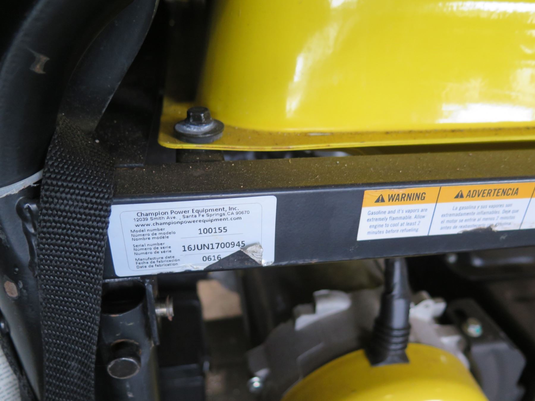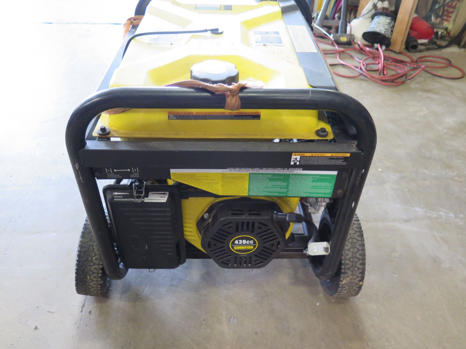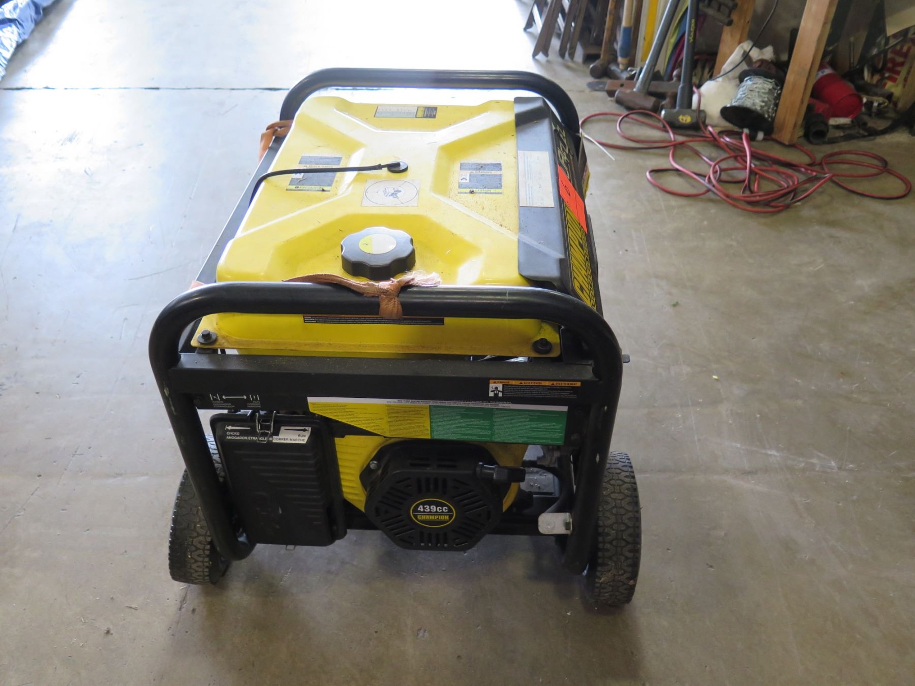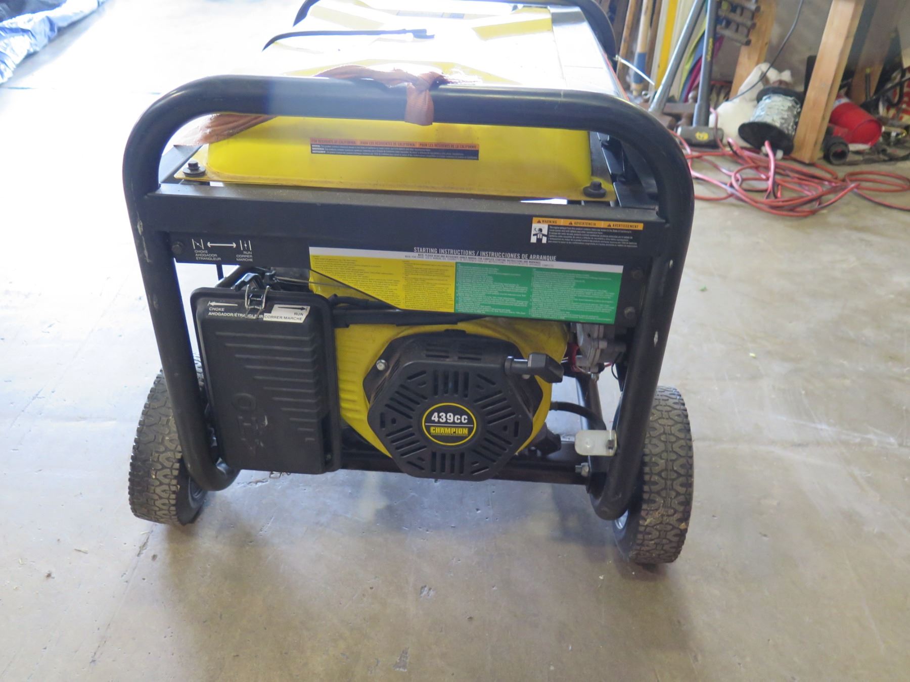 Champion 7000W Generator, Dual Fuel. Generator starts with a jump from a power pack. Sold as is with no warranties or guarantees.