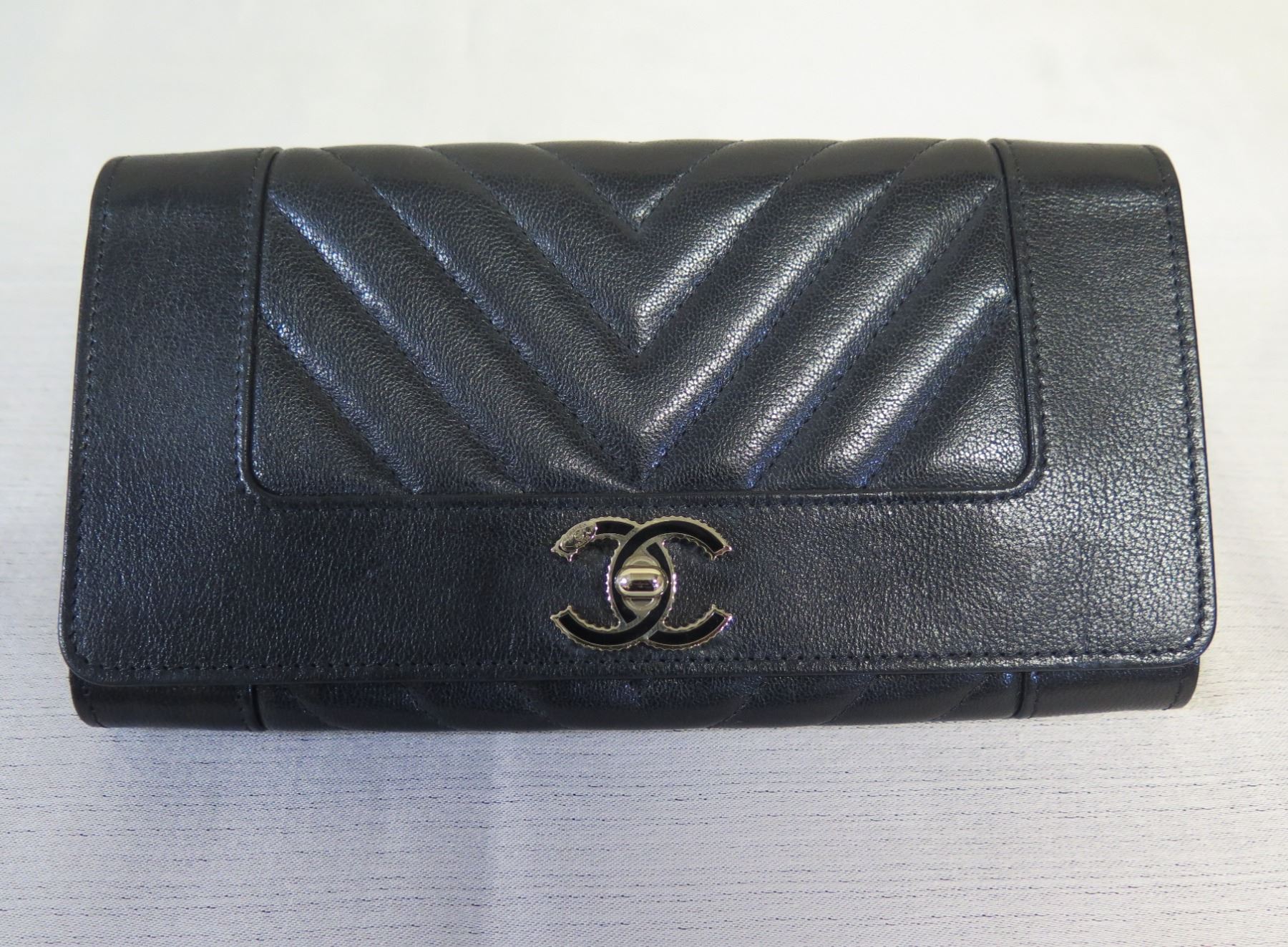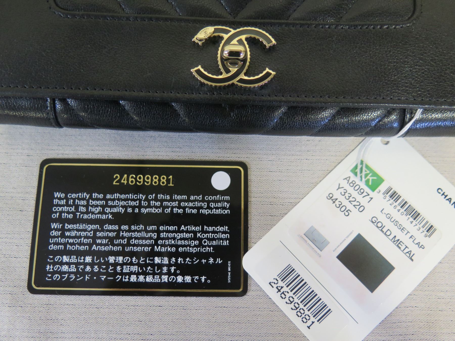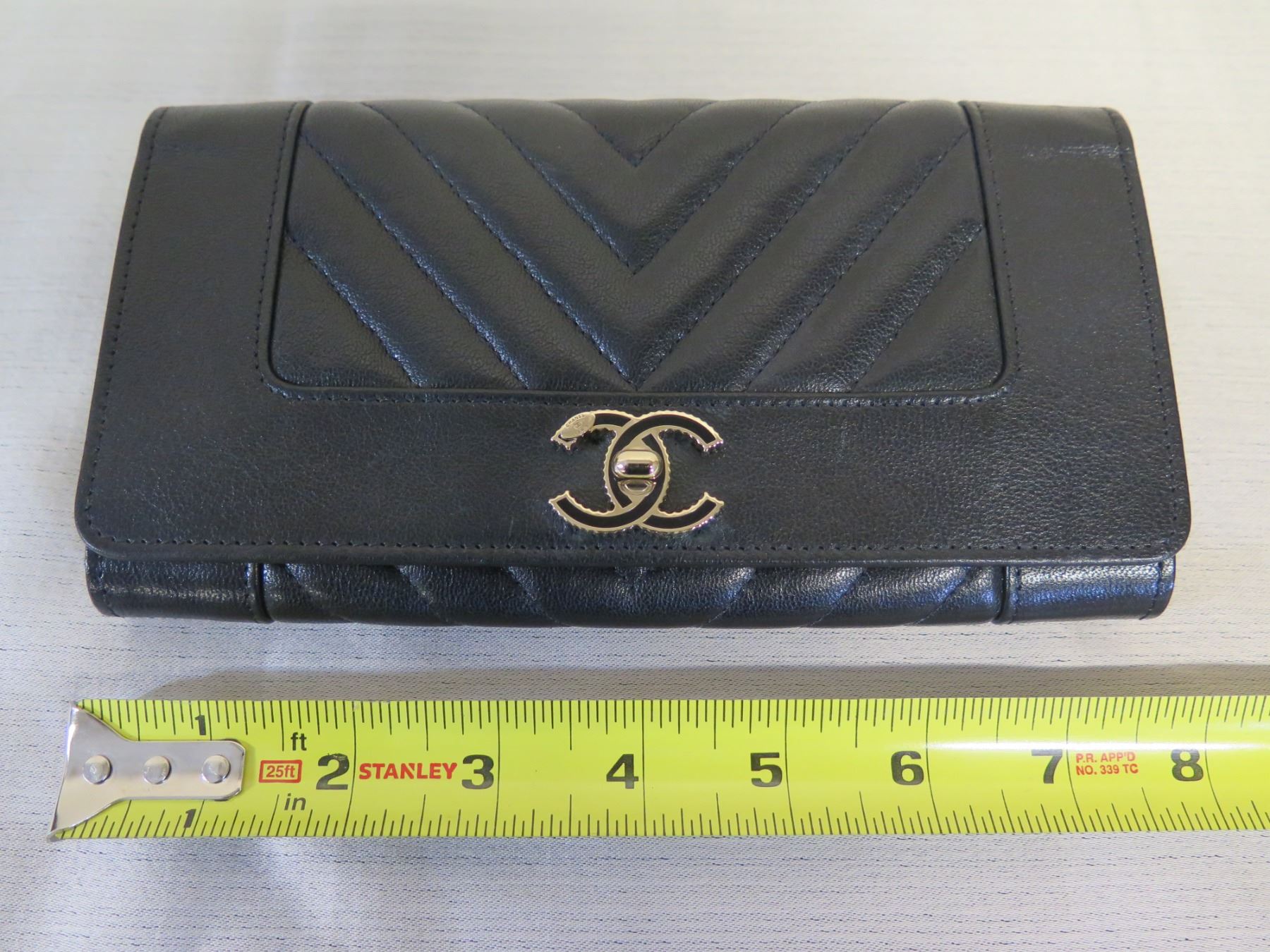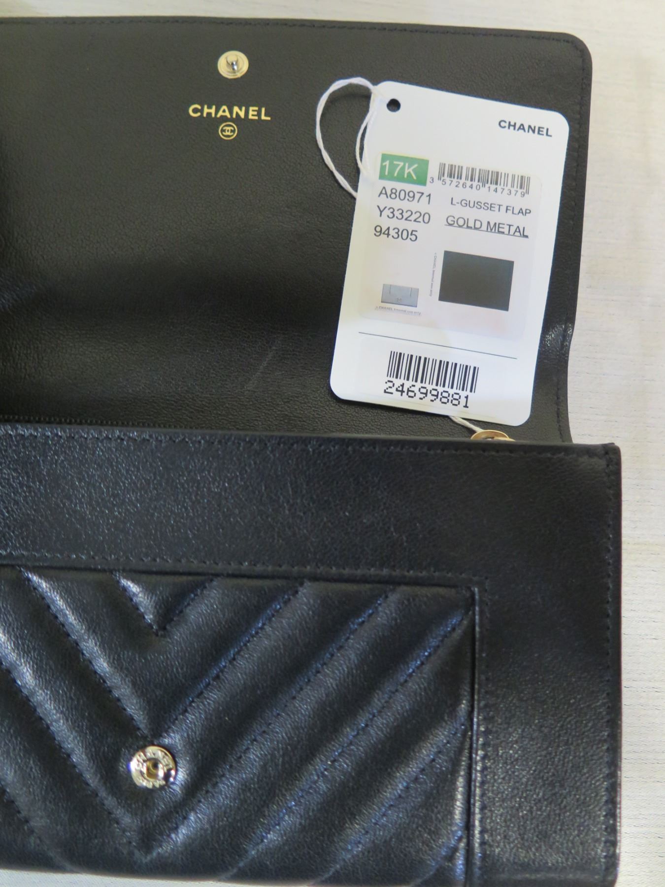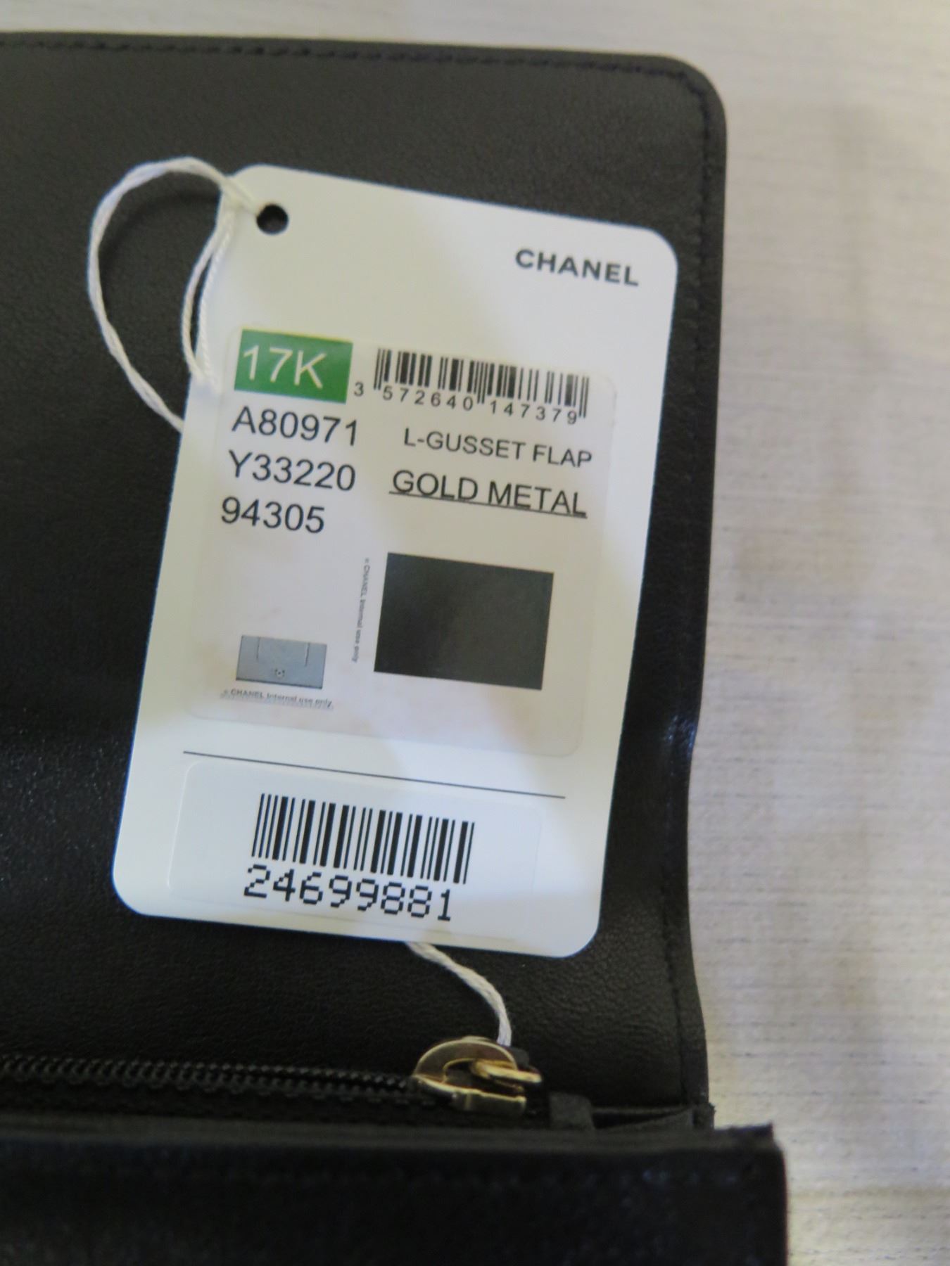 Chanel Black Gusset Flap Wallet w/ Tag & COA 8" x 4"
