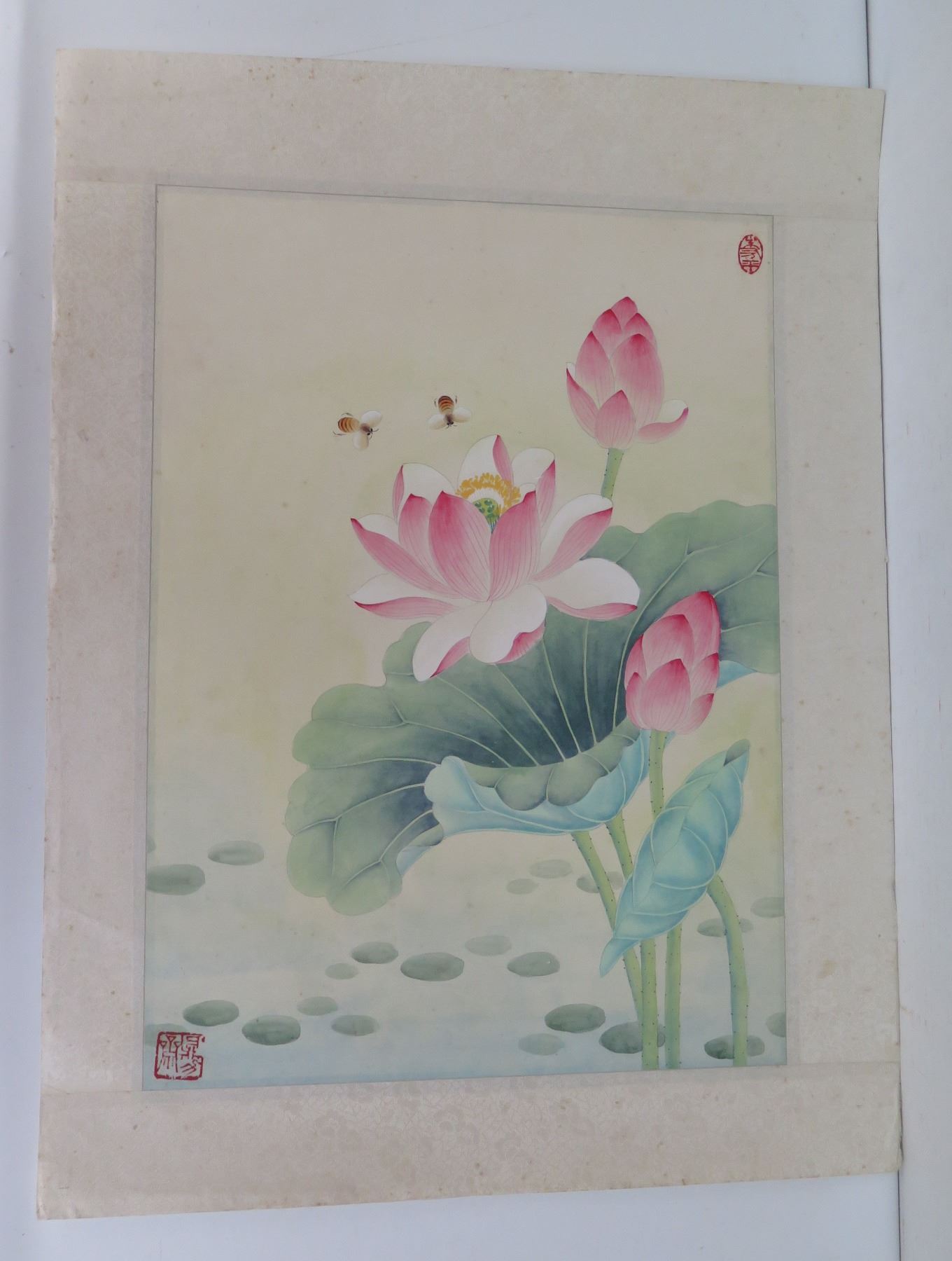 Chinese Art, Painting Lotus Blossom w/Bees Maker's Mark 22" x 17"