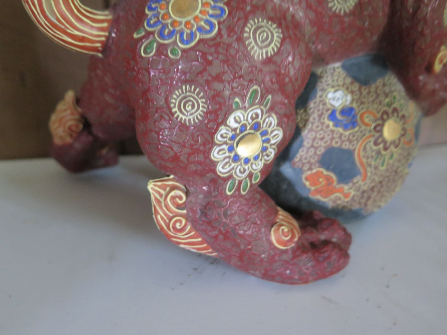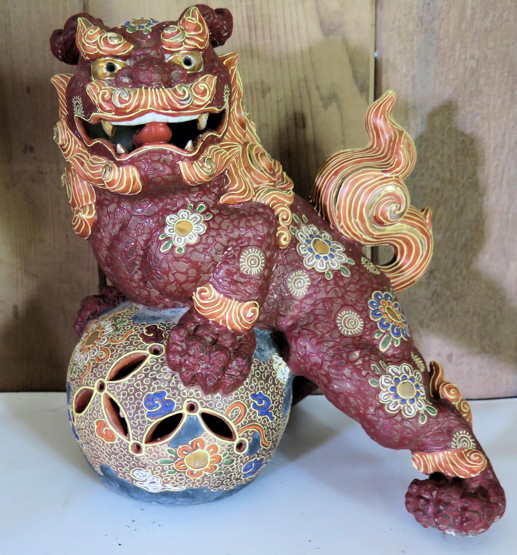 Chinese Ceramic Painted Fu Dog on Ball 10" Tall