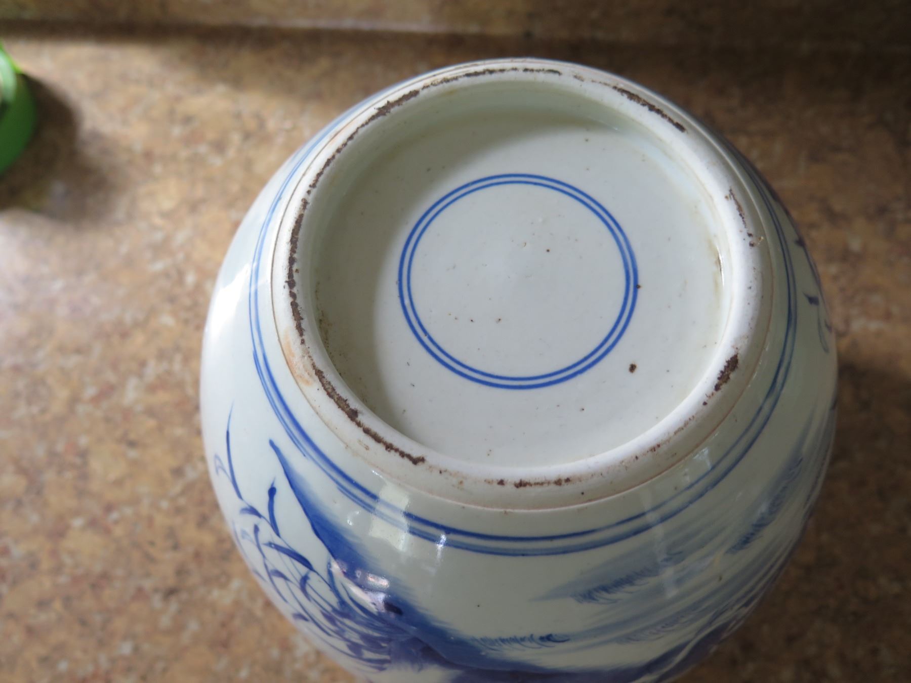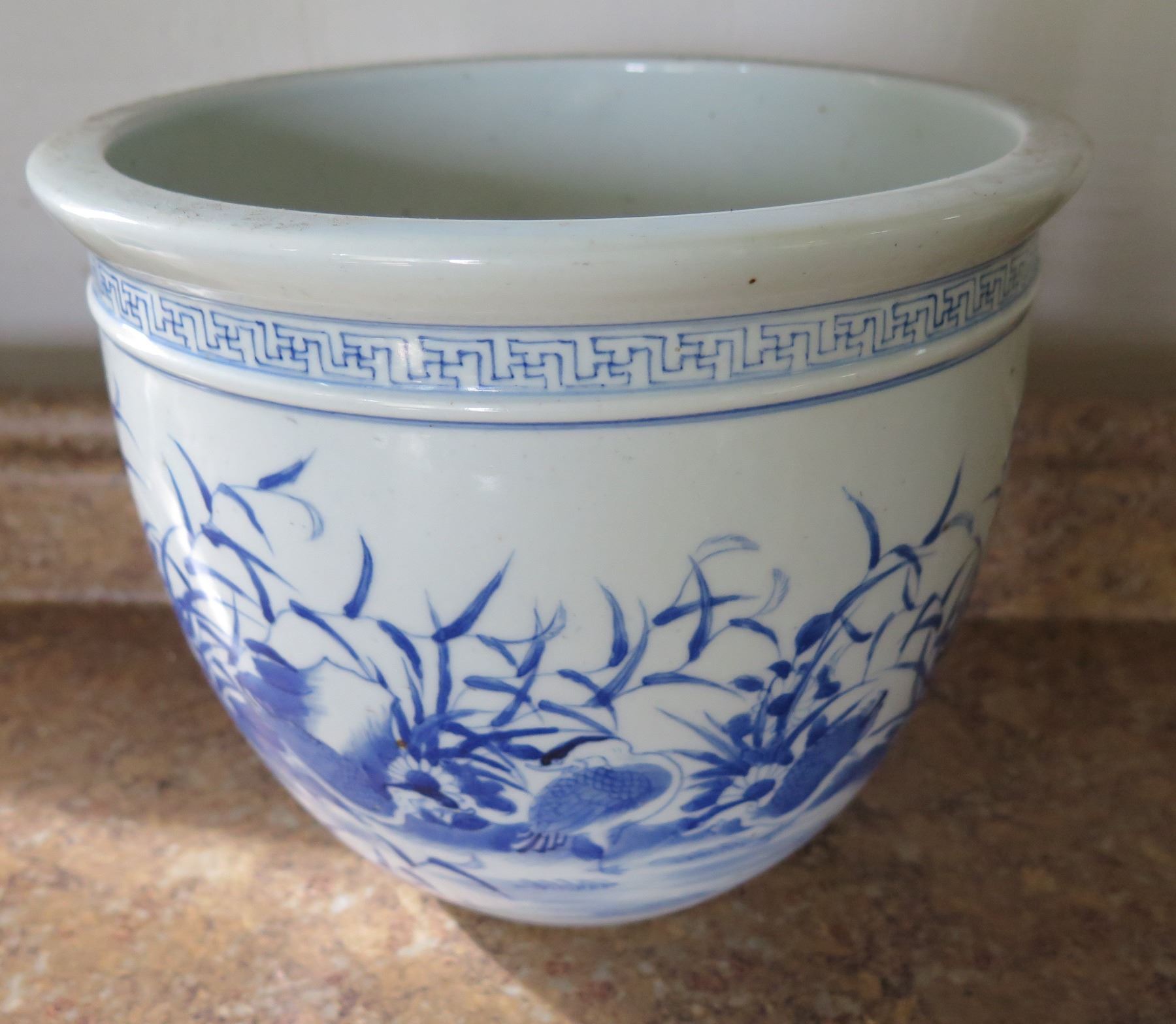 Chinese Ceramic Pot, White & Blue 10" Dia, 8" Tall
