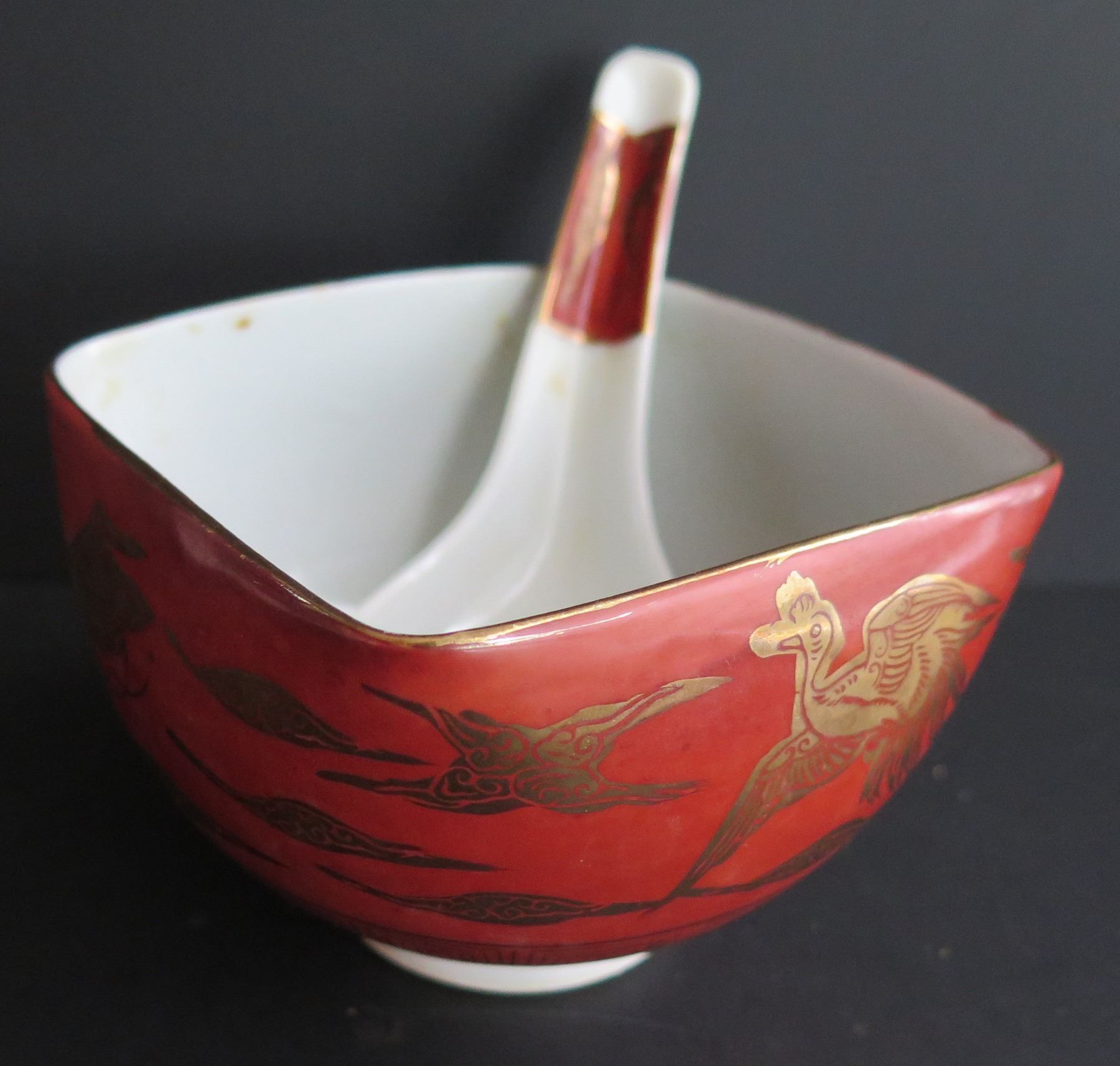 Qty 2Chinese Ceramic Soup Bowl w/Spoon, Orange