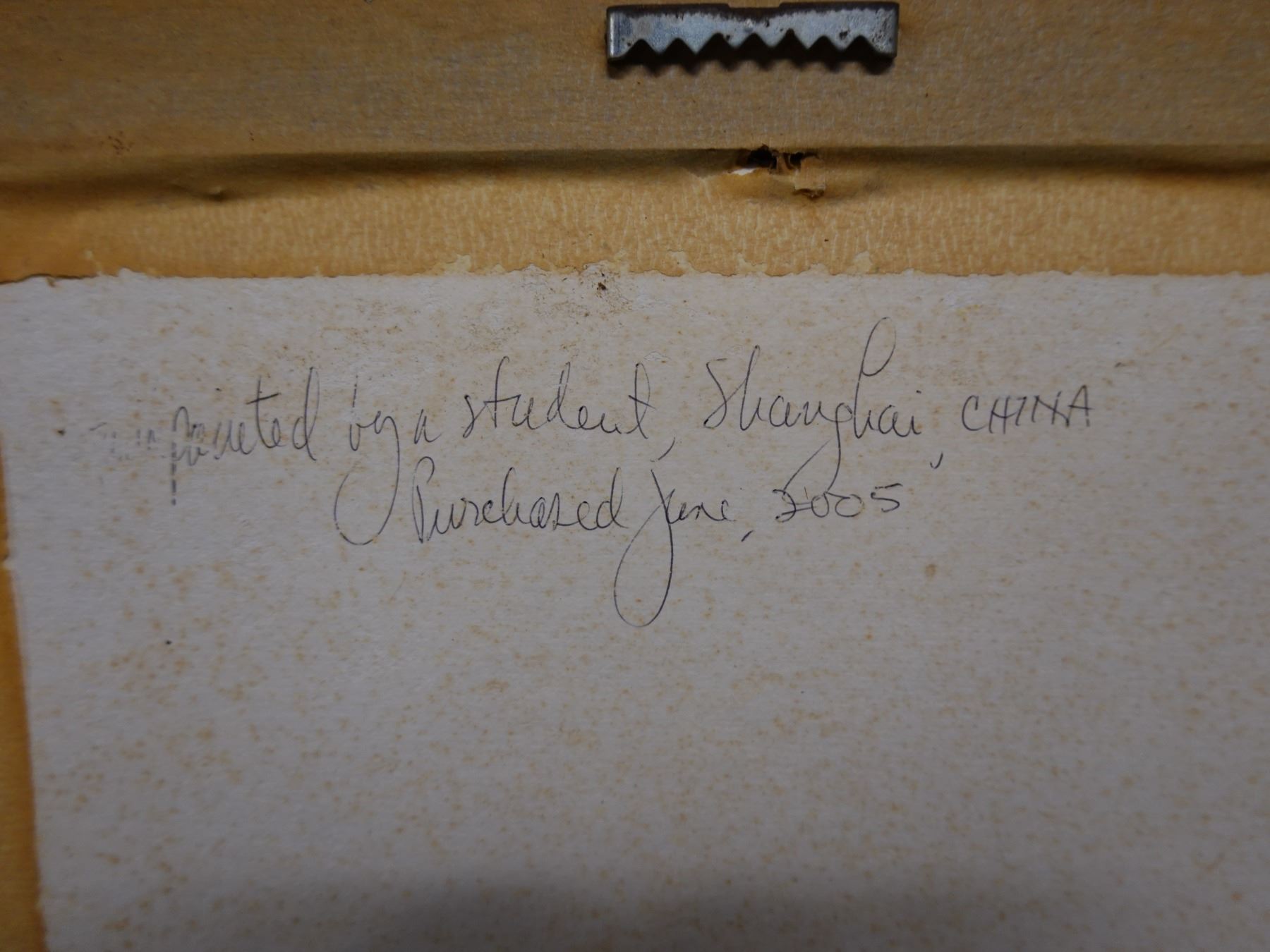 Chinese Man w/ Monkey Artwork Handpainted by a Student in Shanghai, Framed 14" x 14"