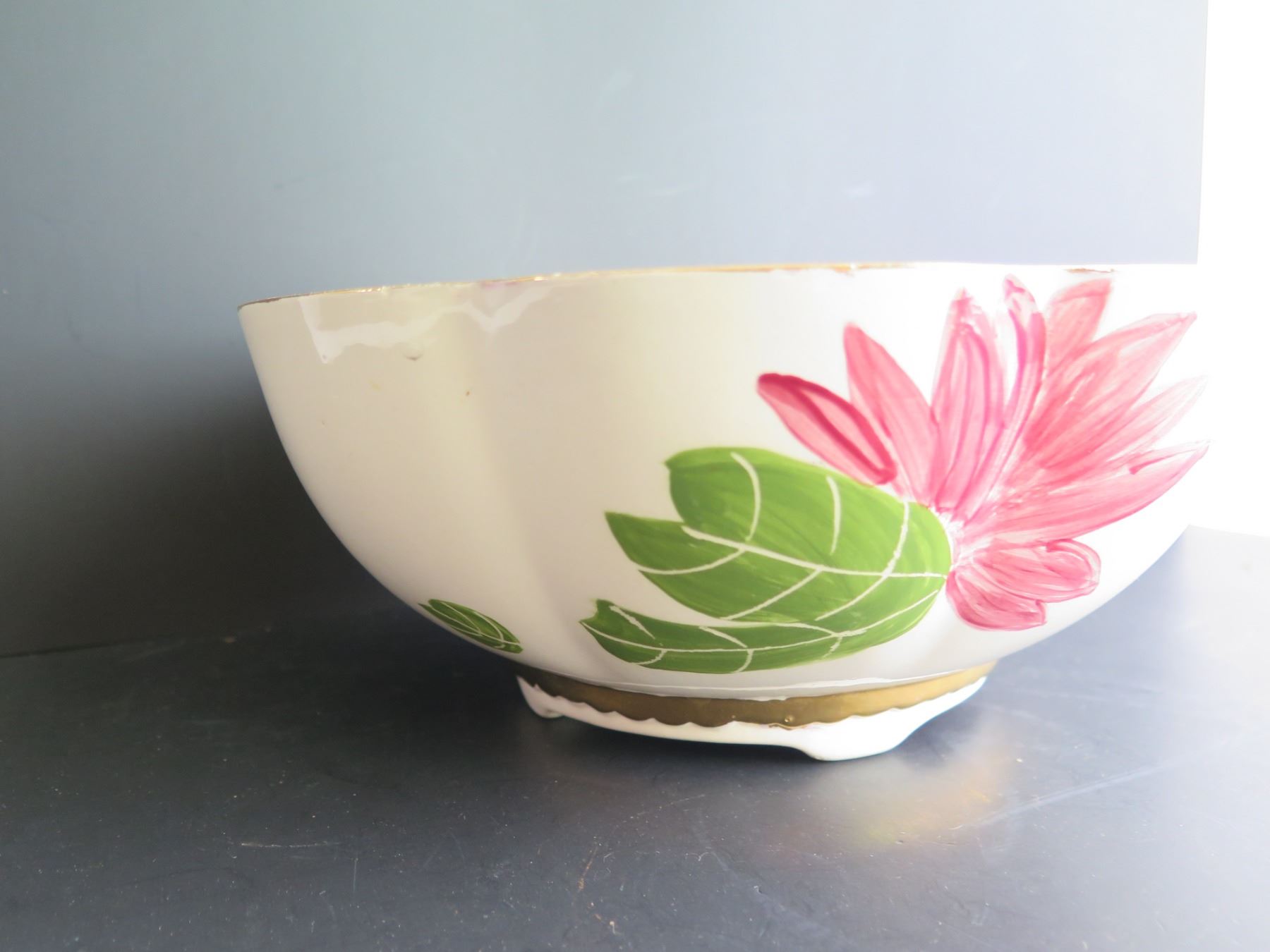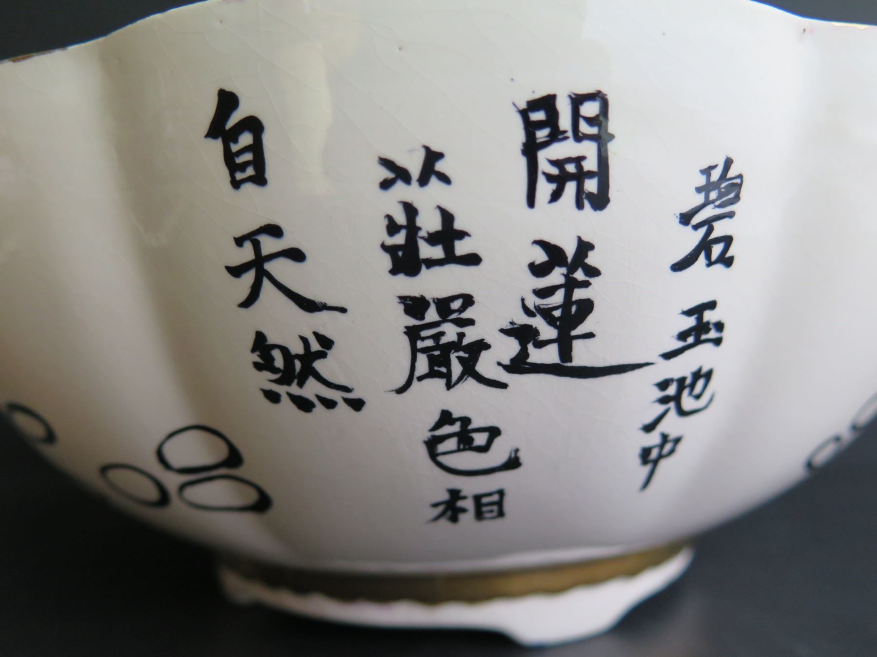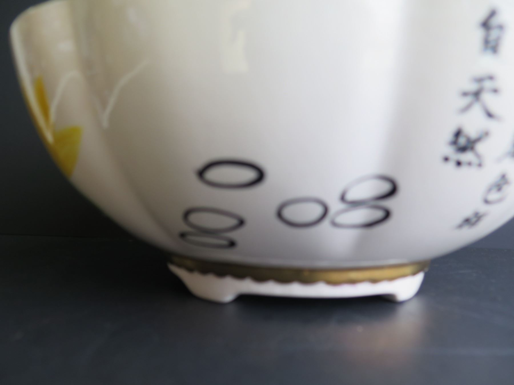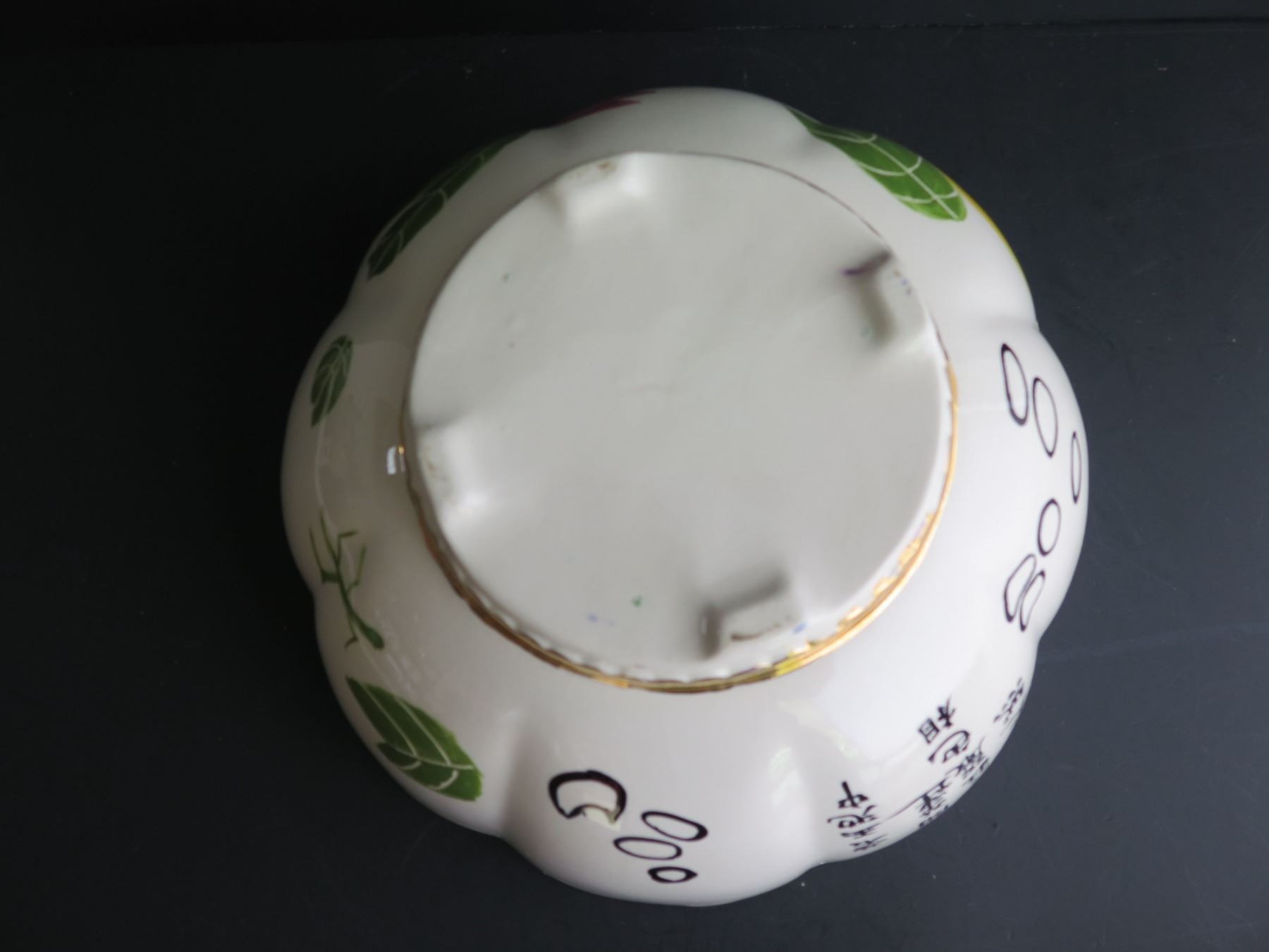 Chinese Porcelain Bowl, Floral w/ Chinese Symbols 10" Dia