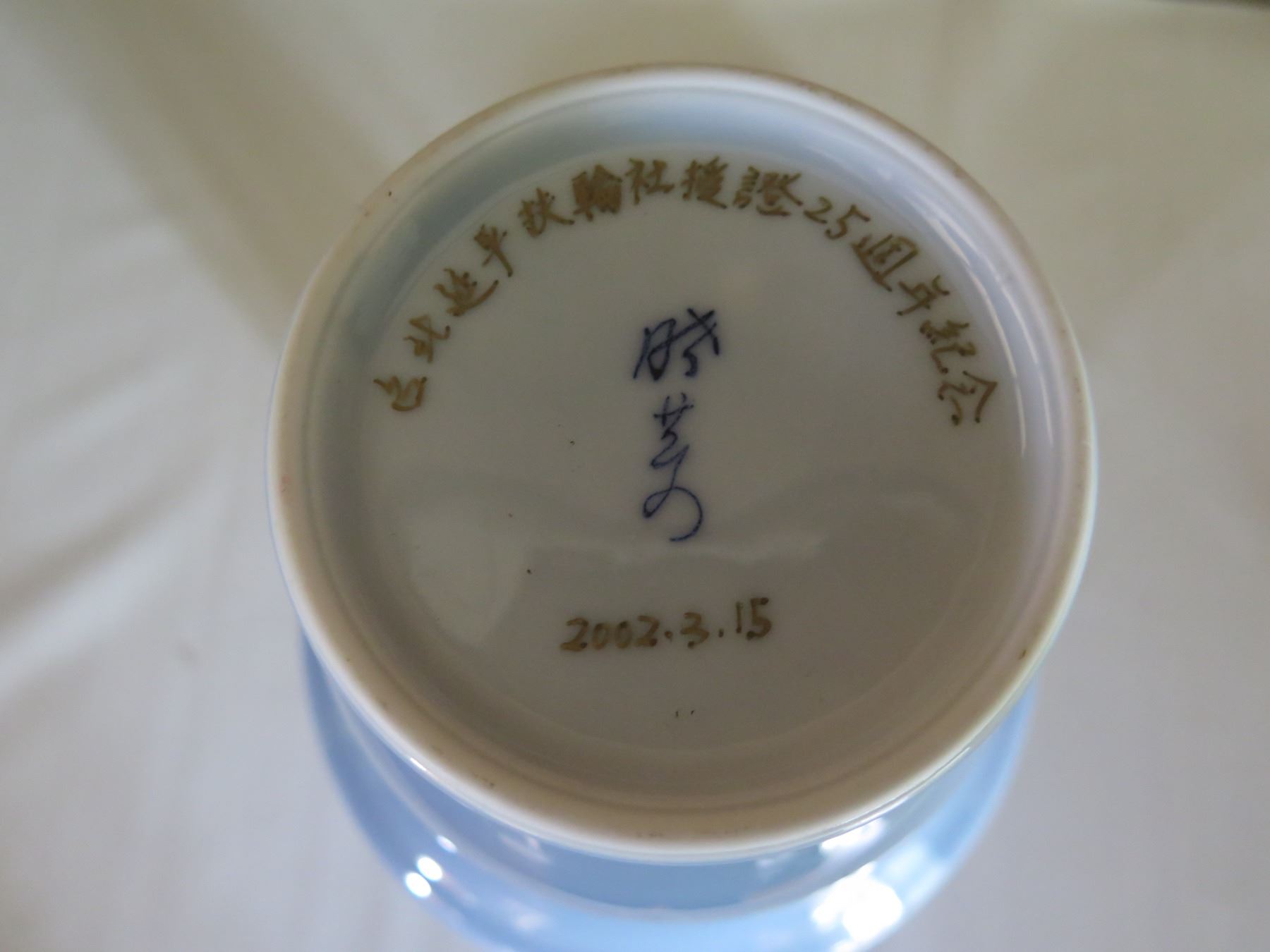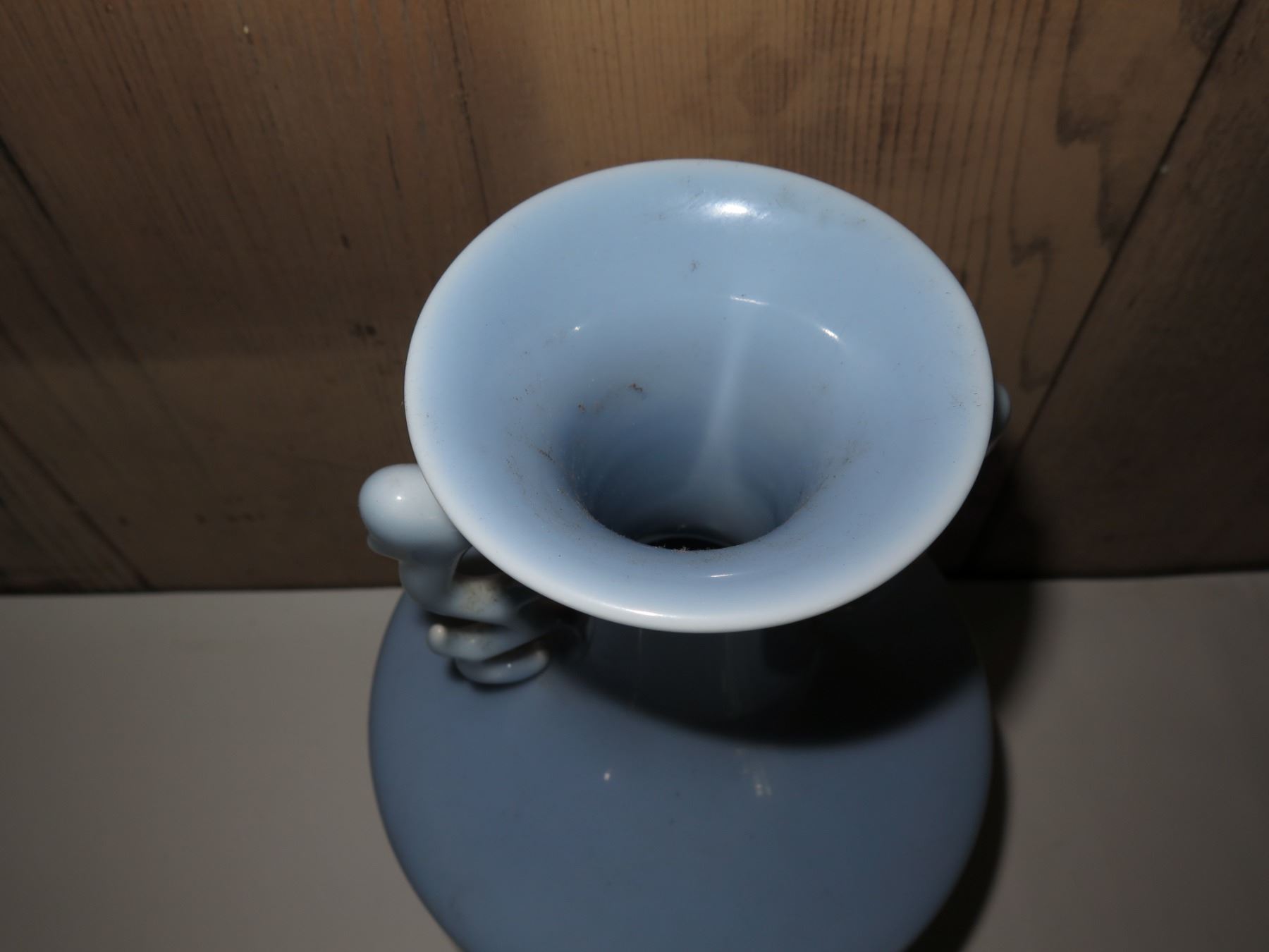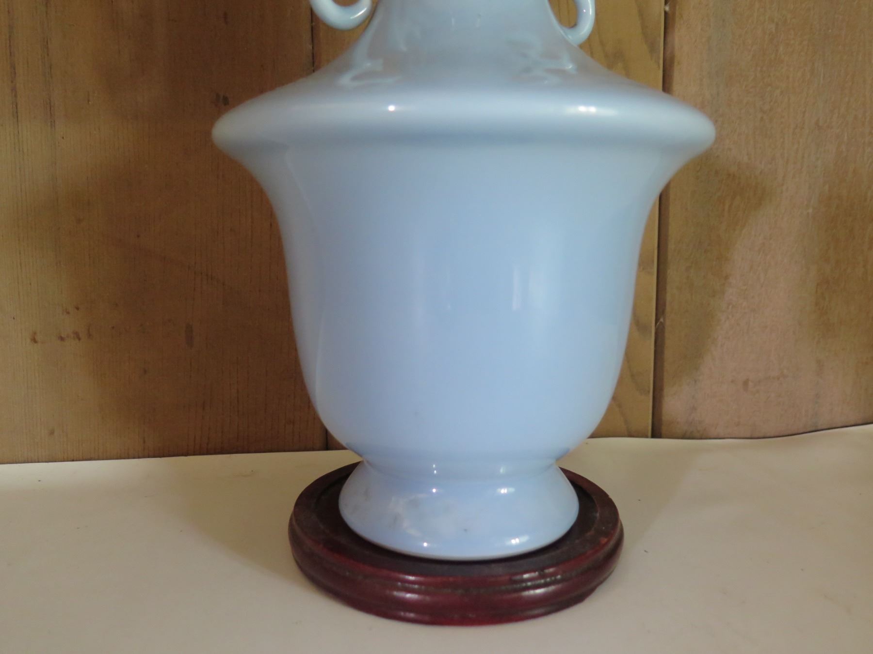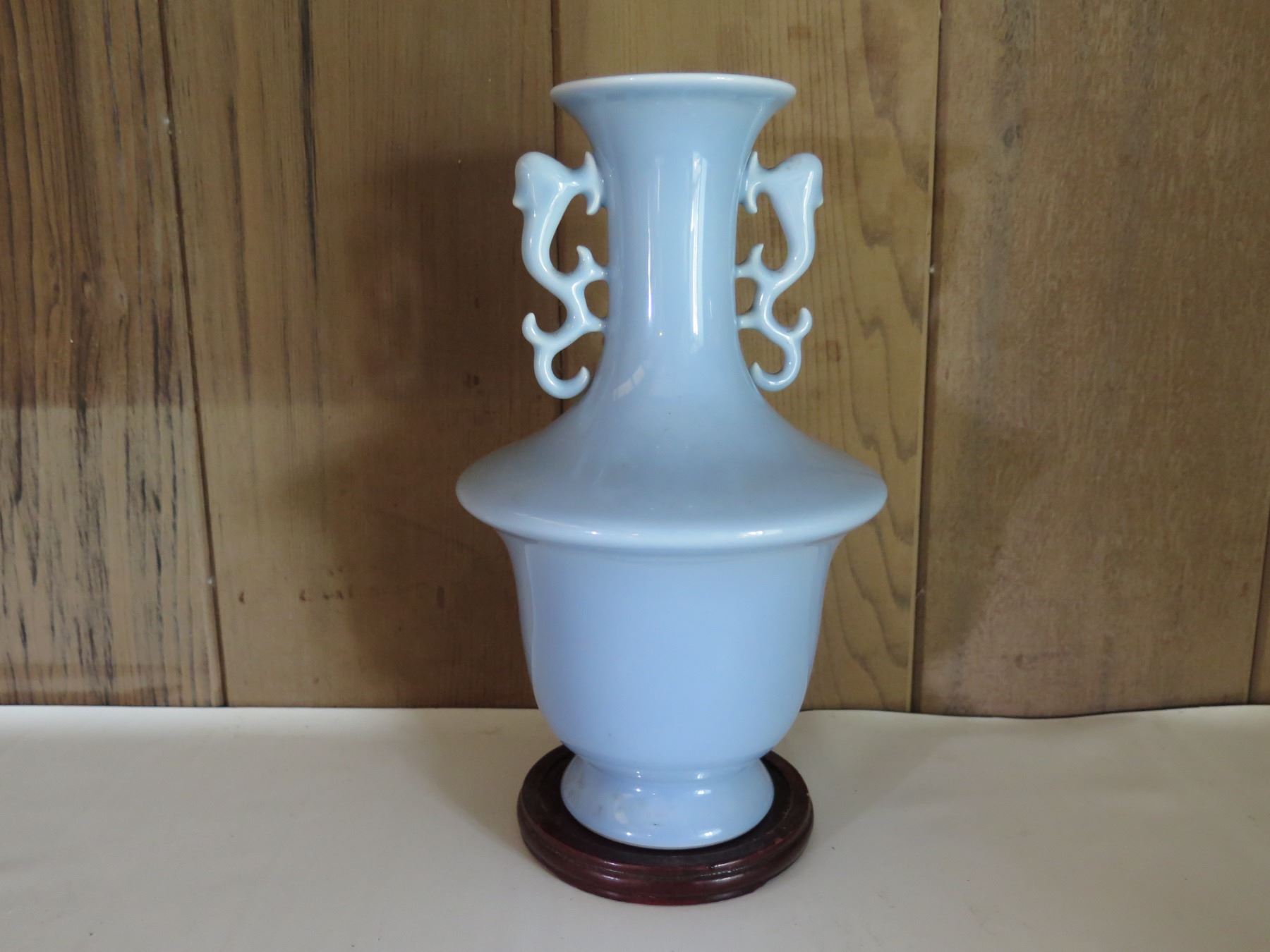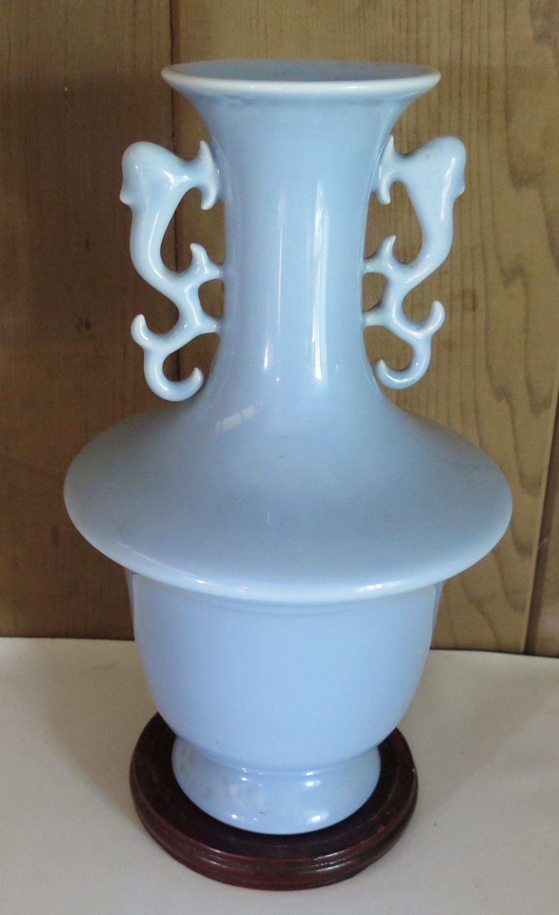 Chinese Porcelain Bud Vase w/ Handles, Lt. Blue, Maker's Mark 12" Tall