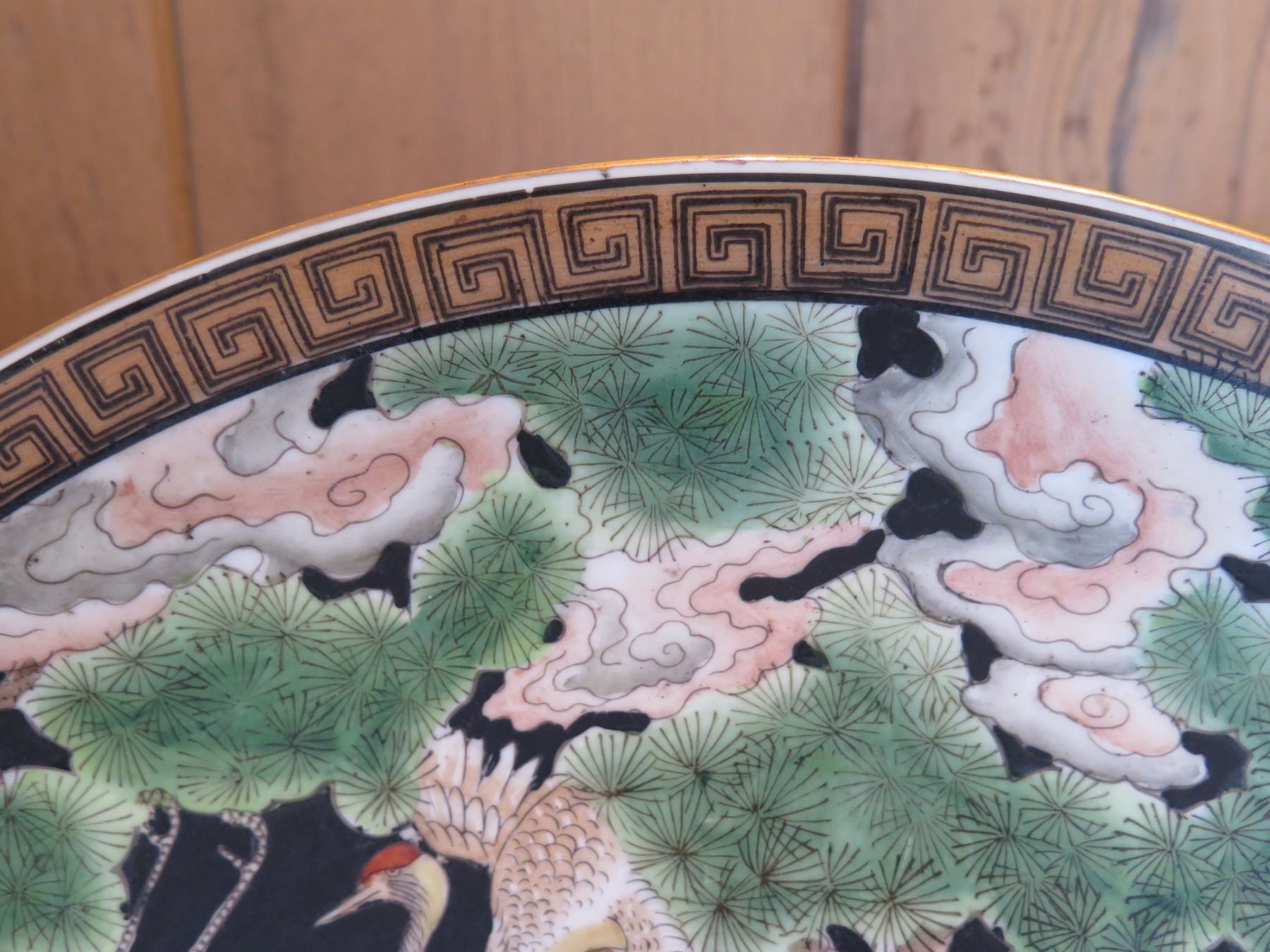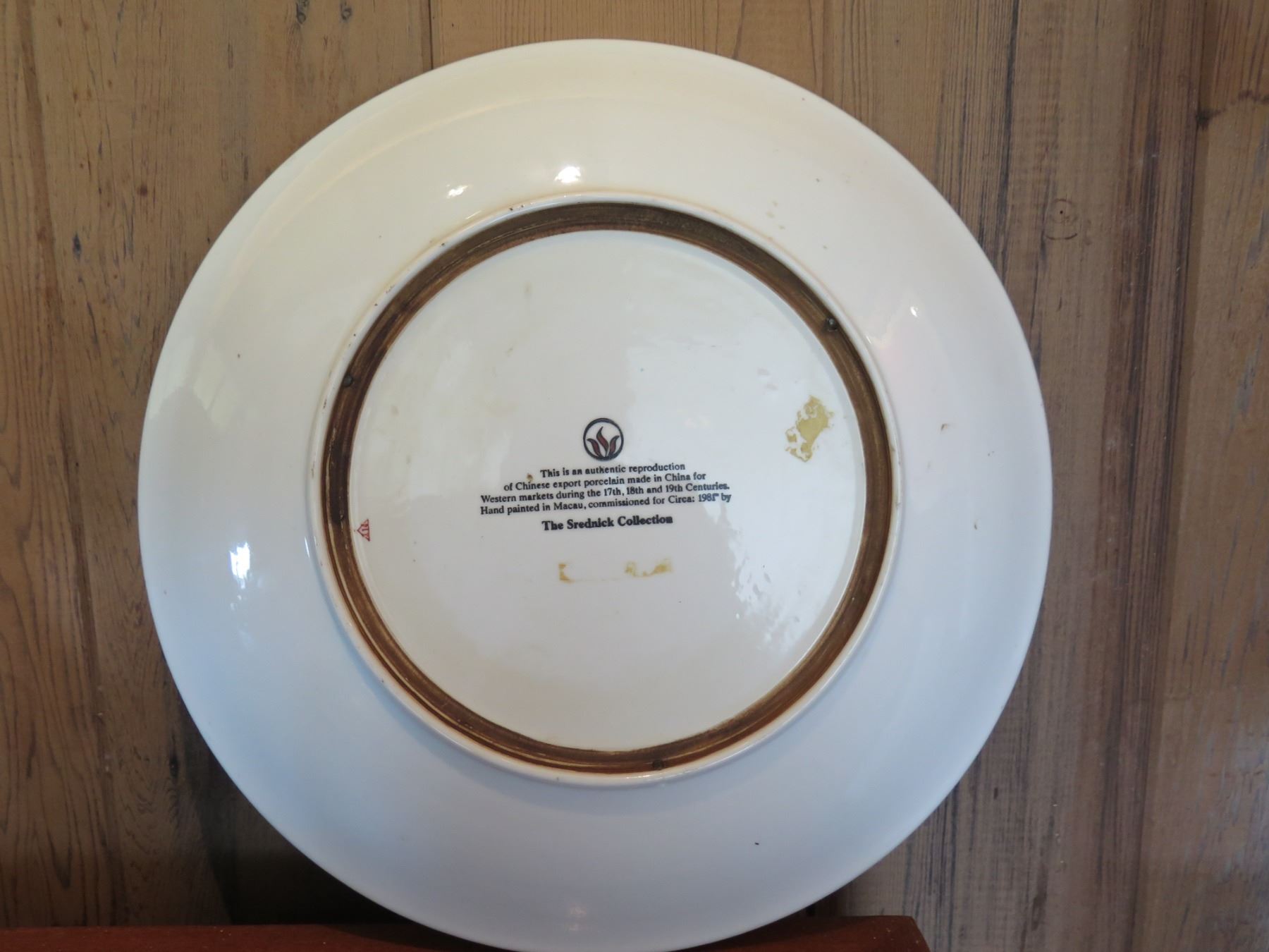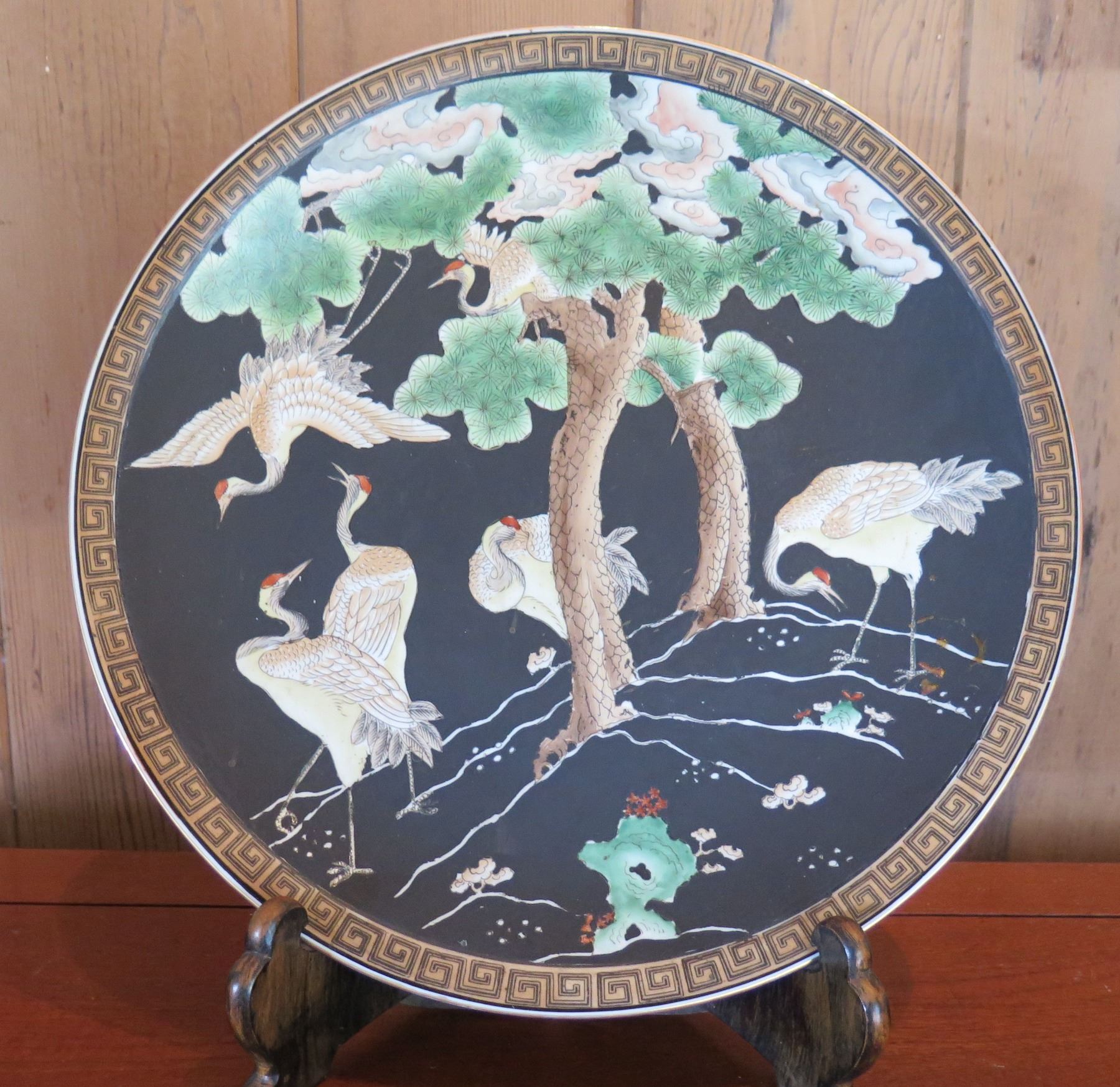 Chinese Porcelain Plate w/Stand, Handpainted 16" Dia
