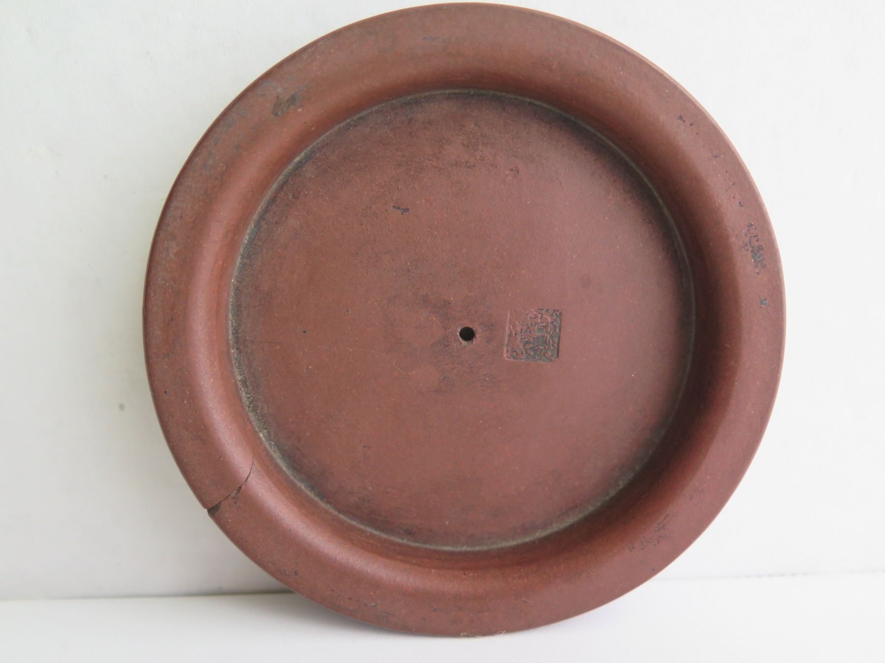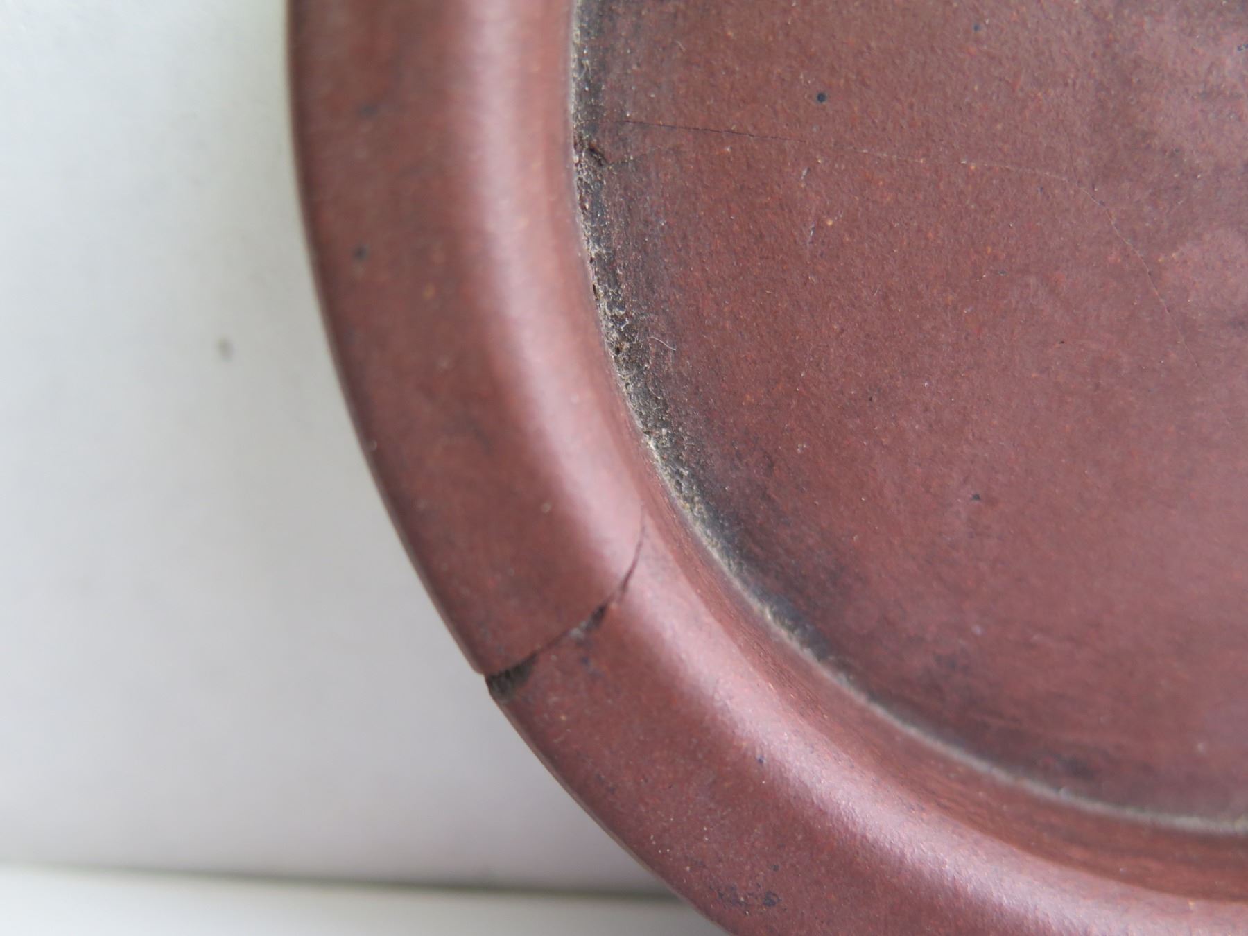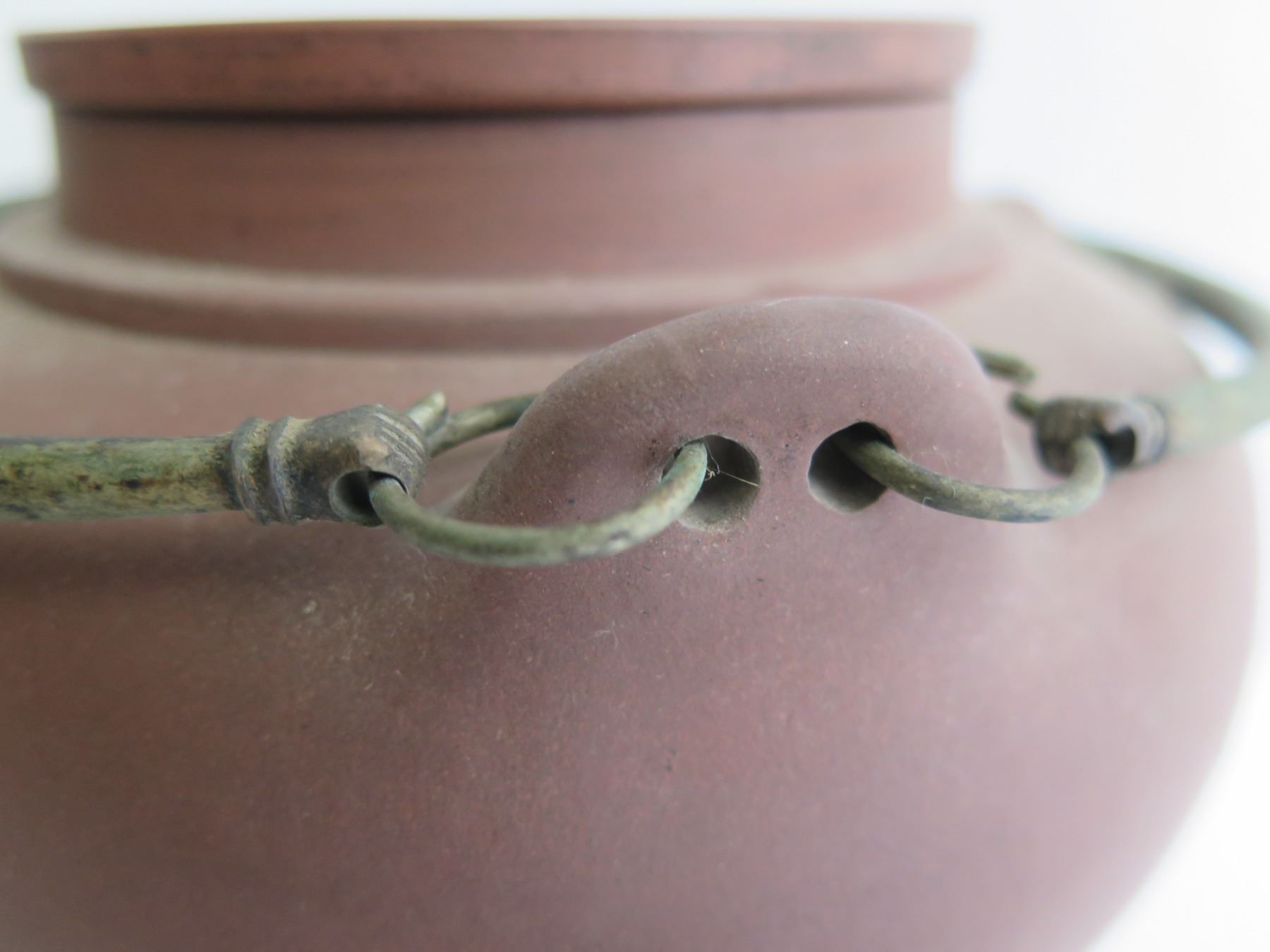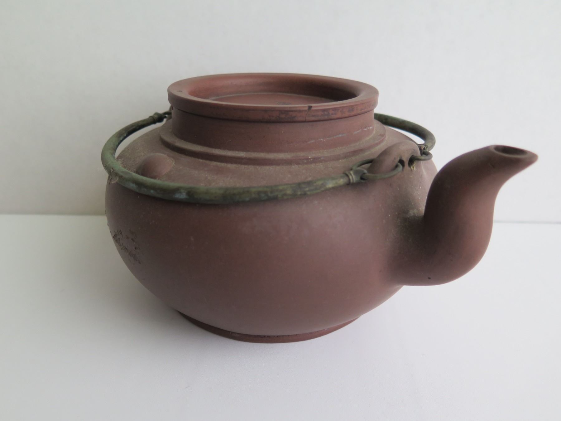 Chinese Yixing Clay Teapot w/ Metal Handle, Brown Maker's Mark 4" Tall