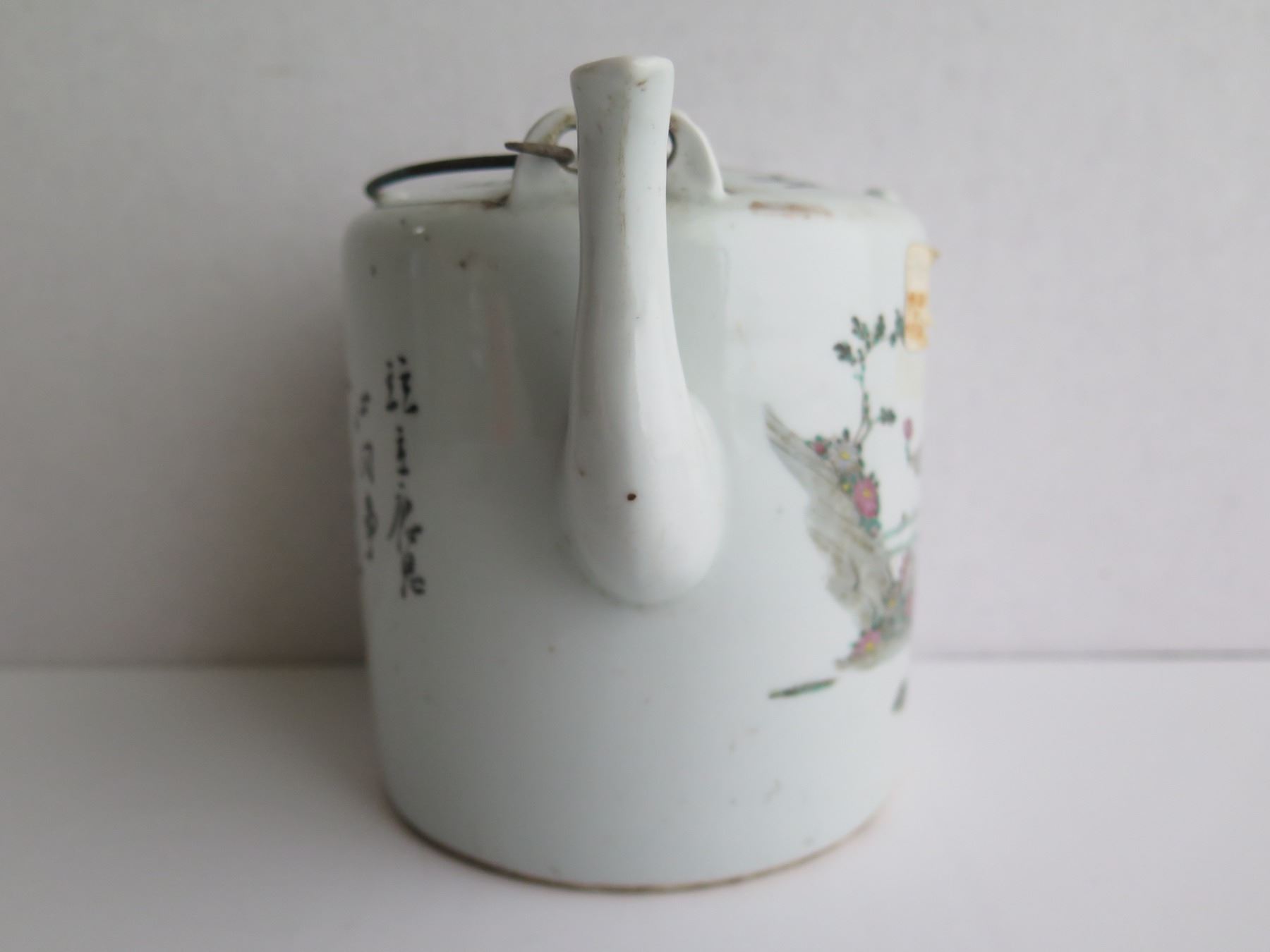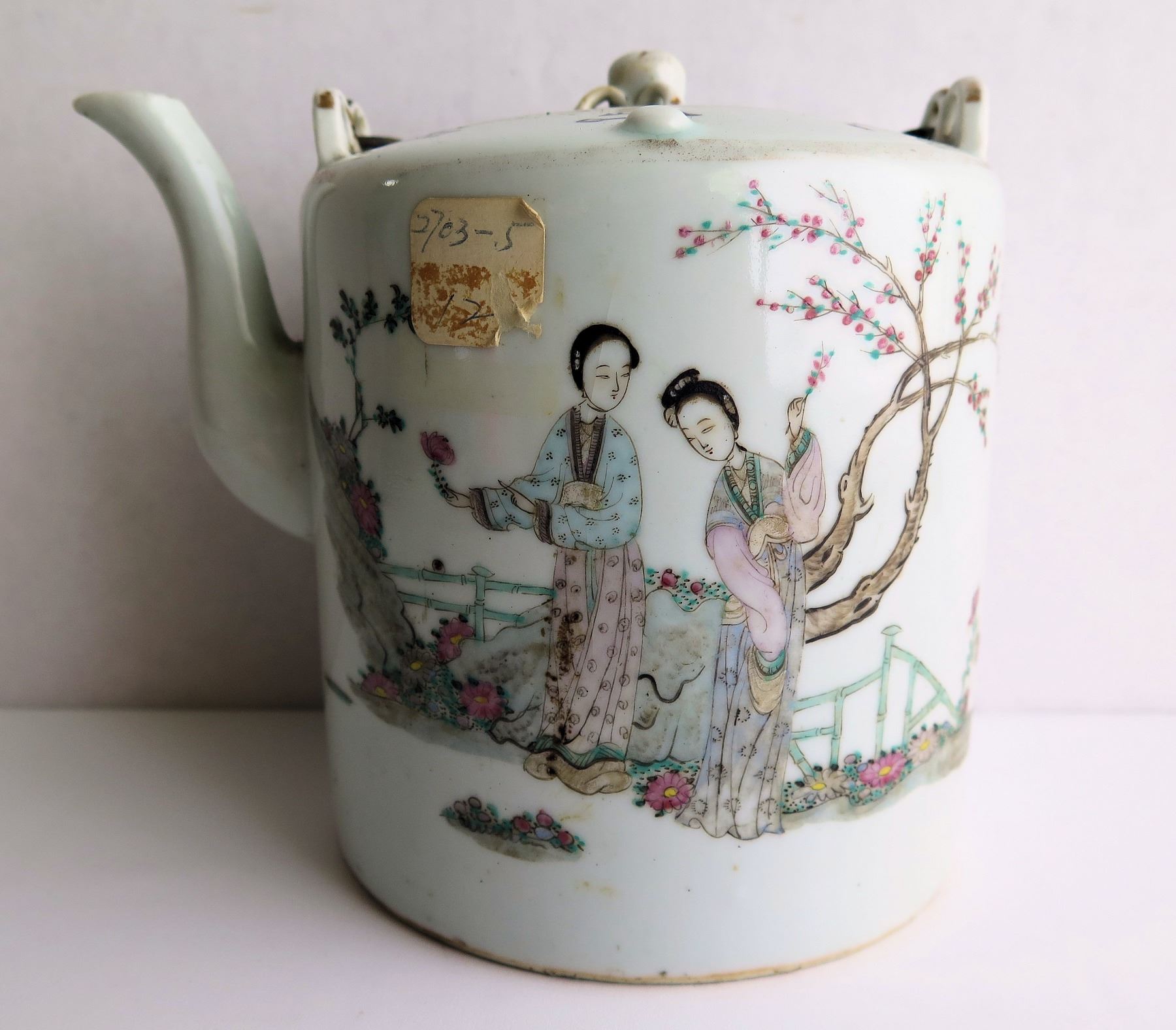 Ching Dynasty Porcelain Teapot w/ Wax Seal Authentication, Women & Chinese Symbols 5" Tall