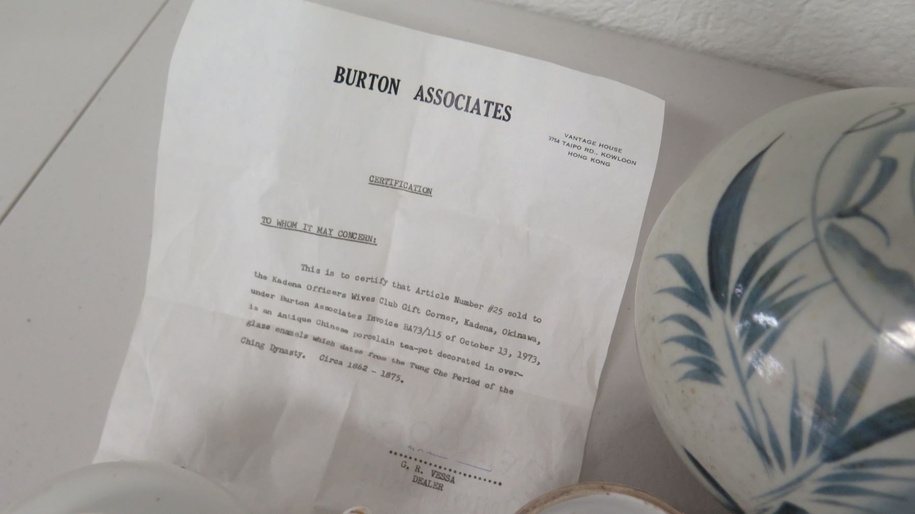 Ching Dynasty Teapot & Cups w/ Certification Documents, Misc. Asian Vase, etc.