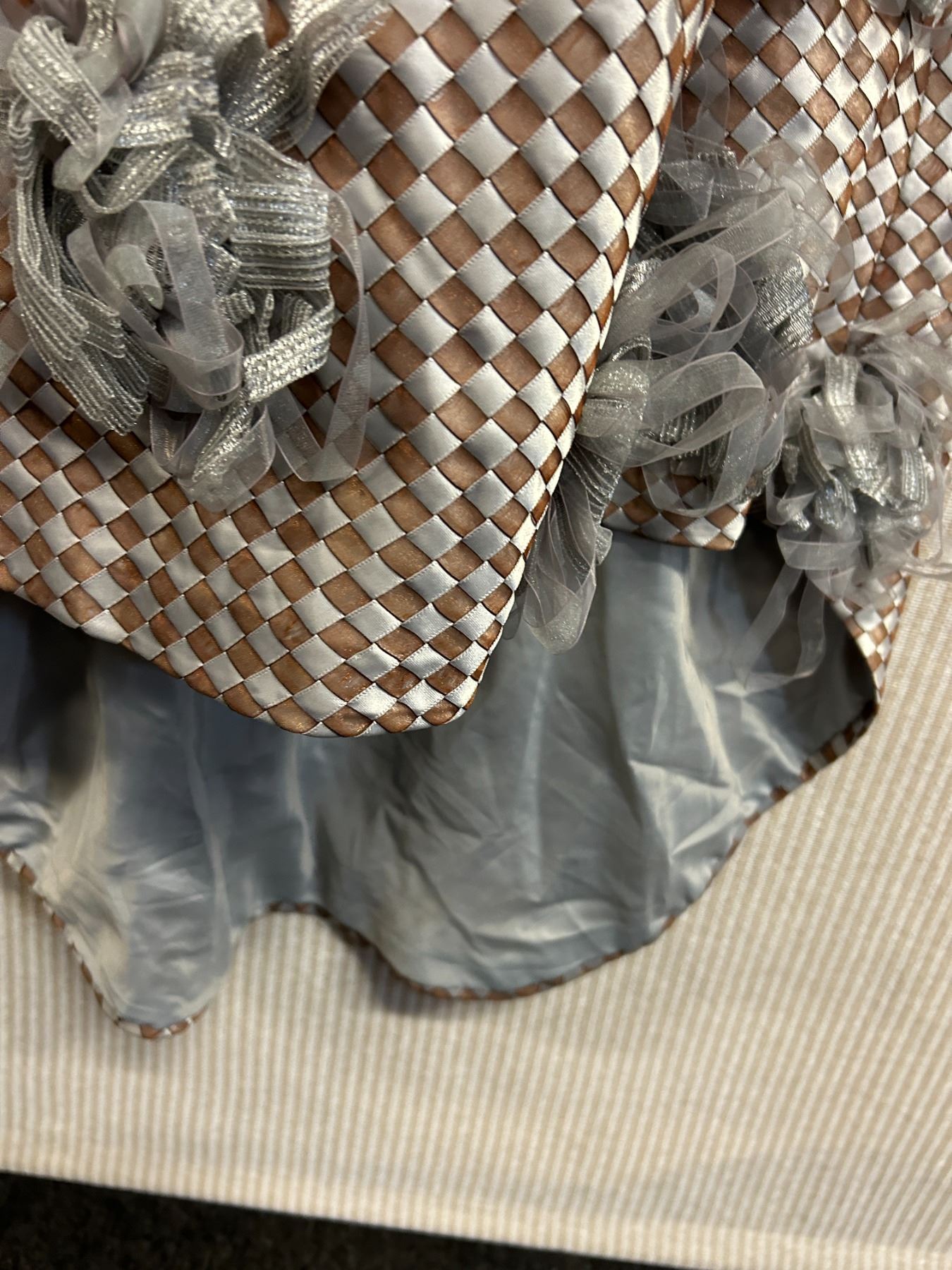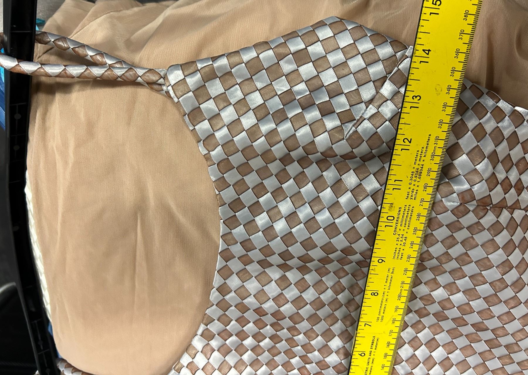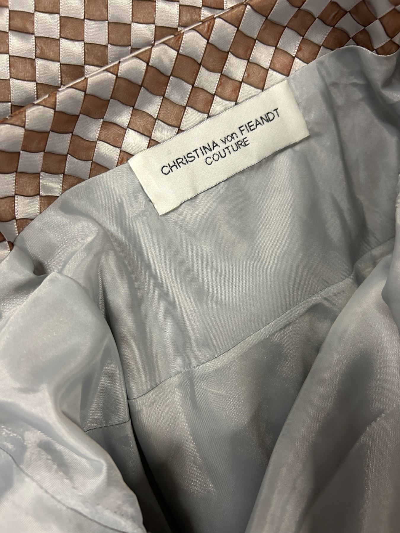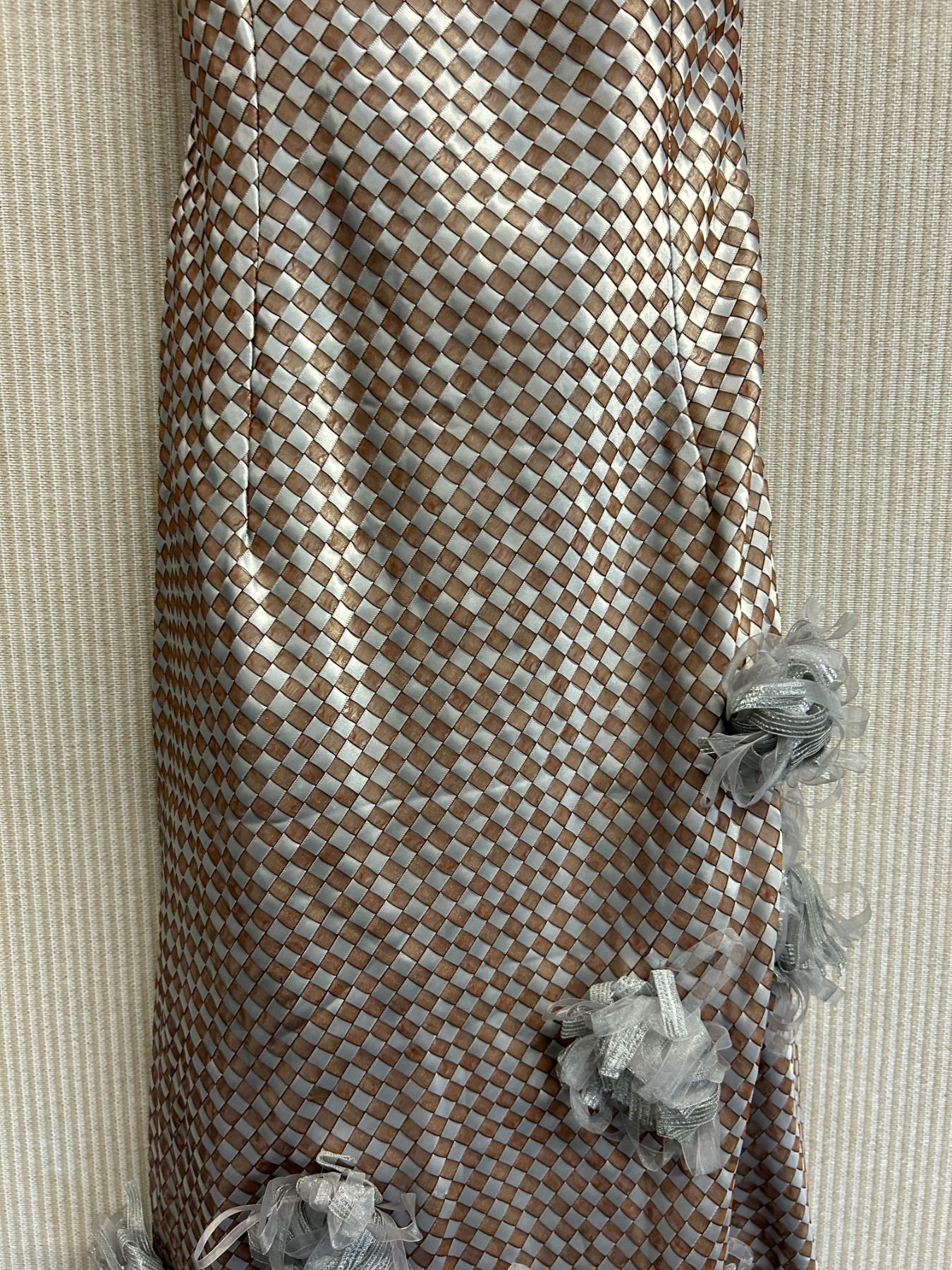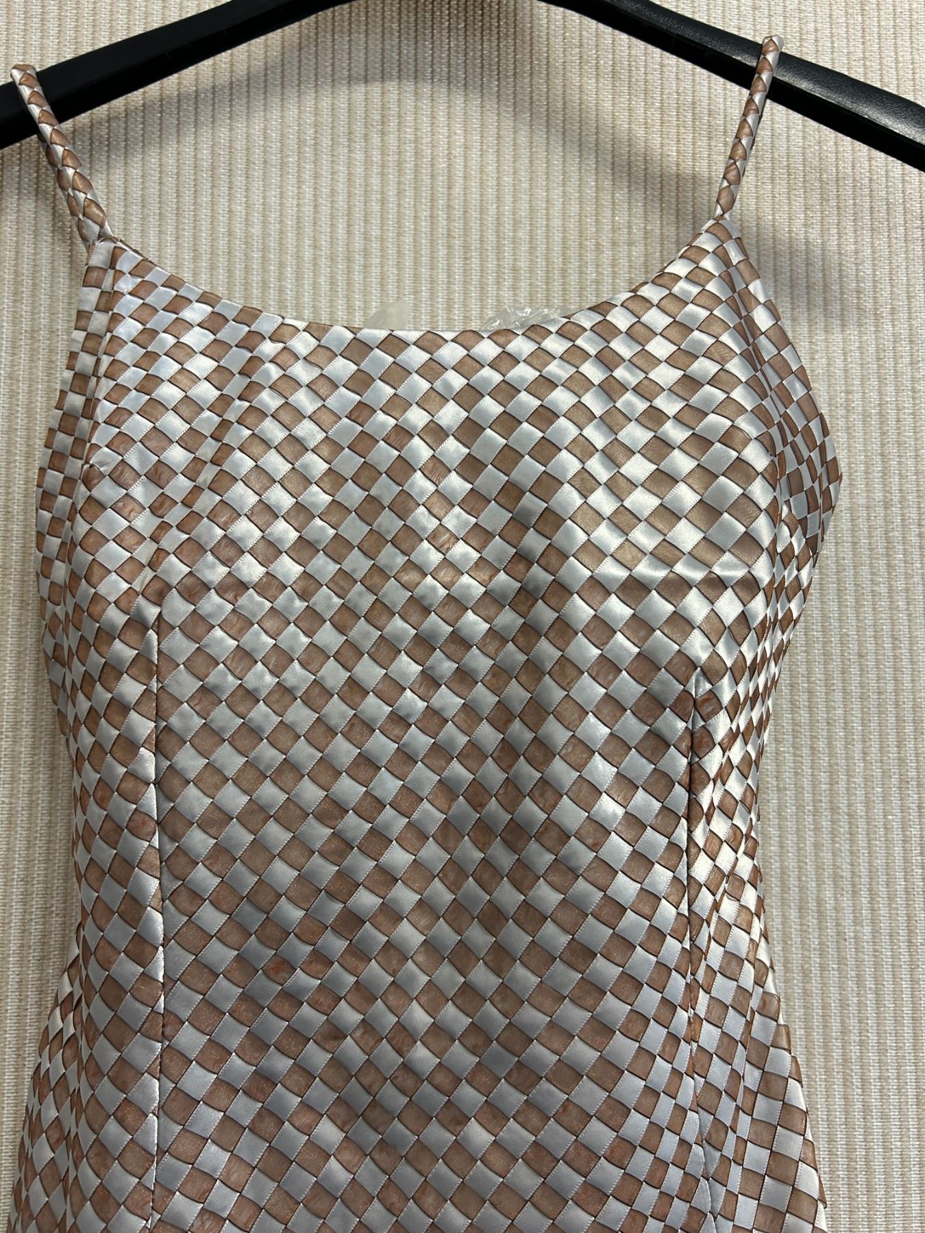 Christina von Fieandt Woven Cocktail Long Dress, White & Brown, New - No Tag (Bust approx. 32", waist approx. 28"). Very long.