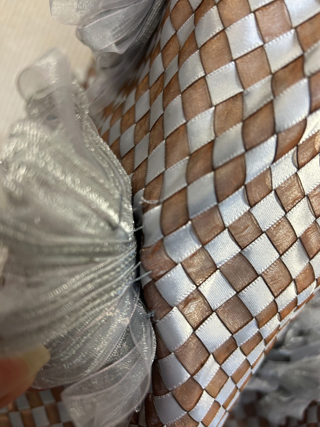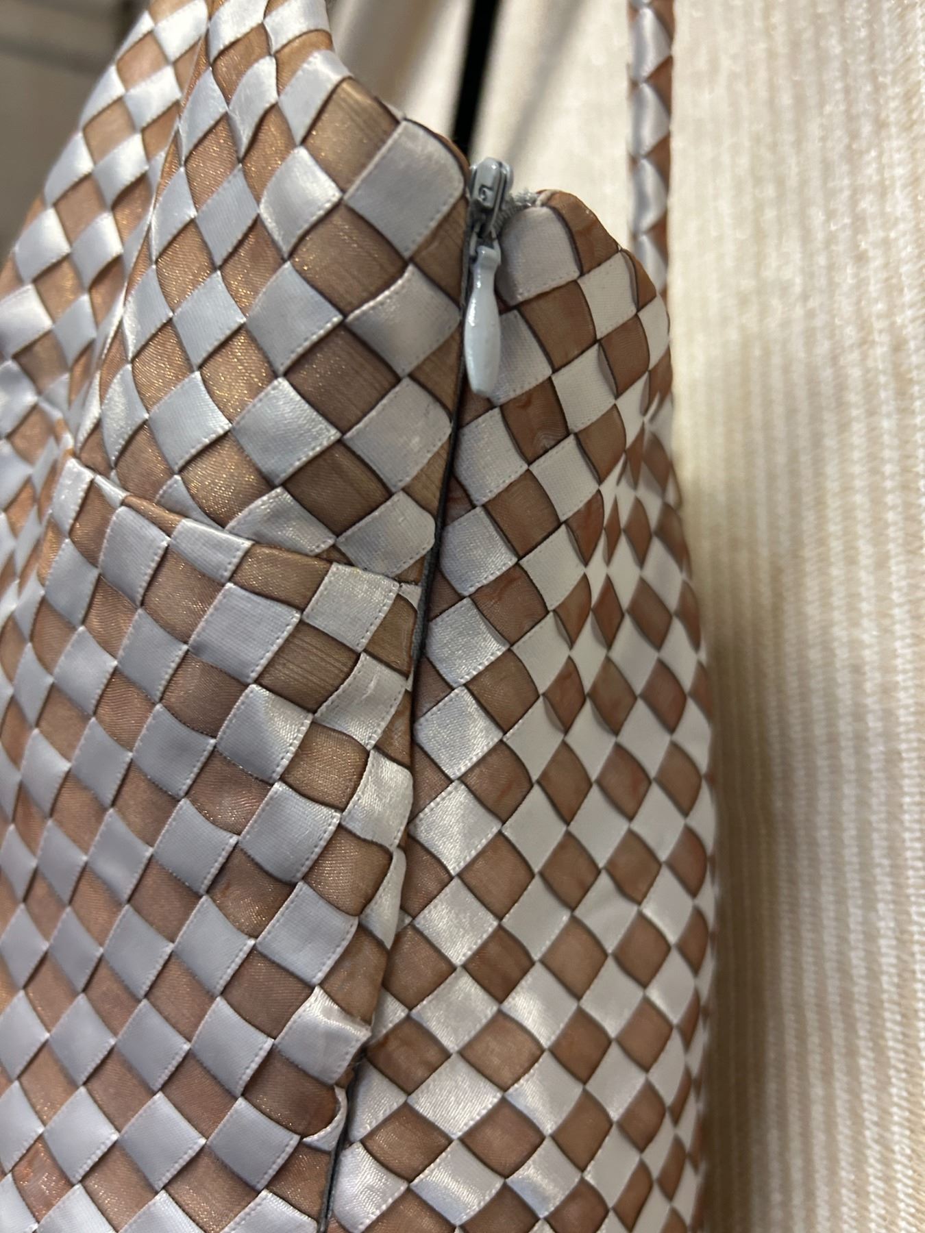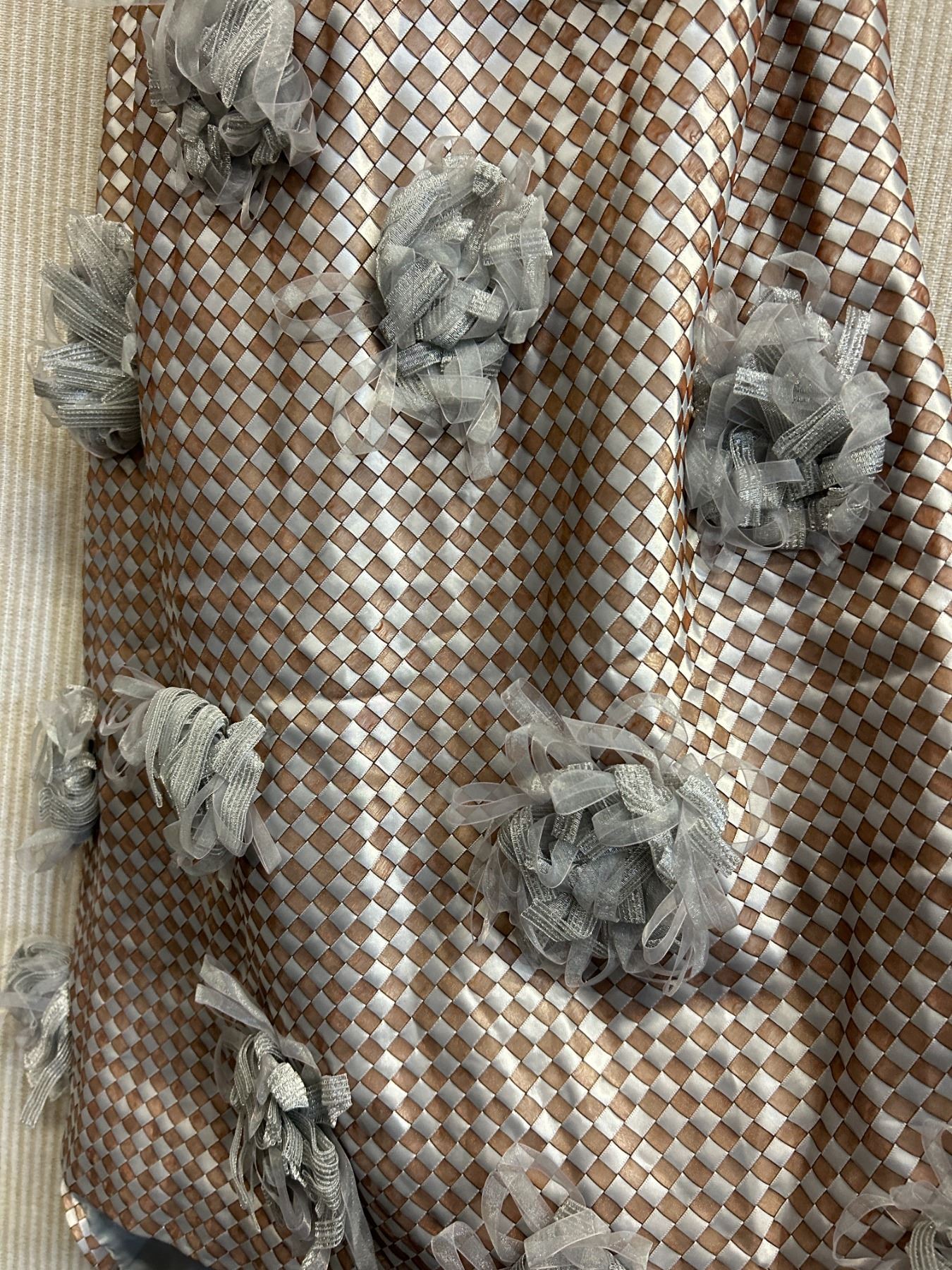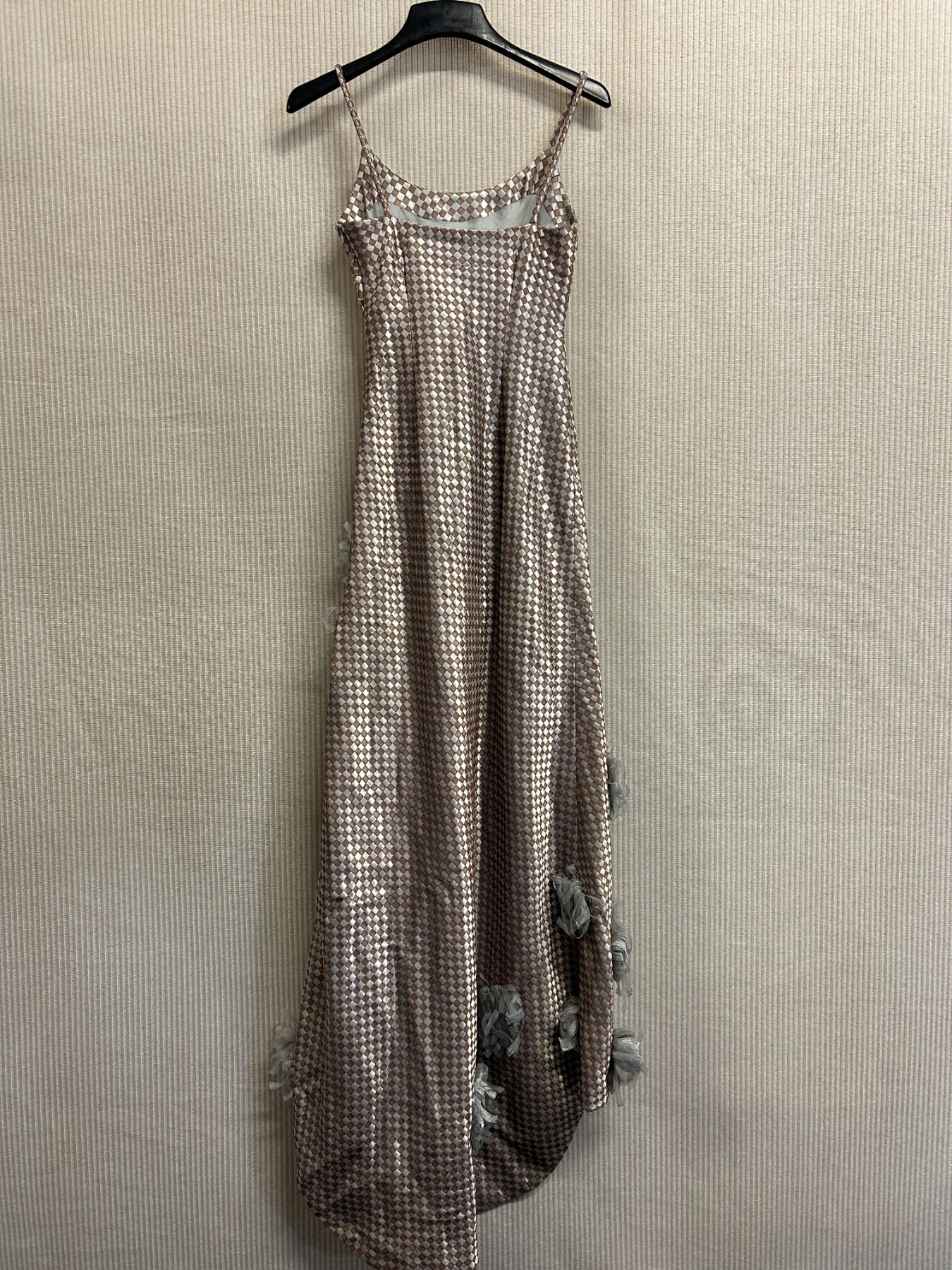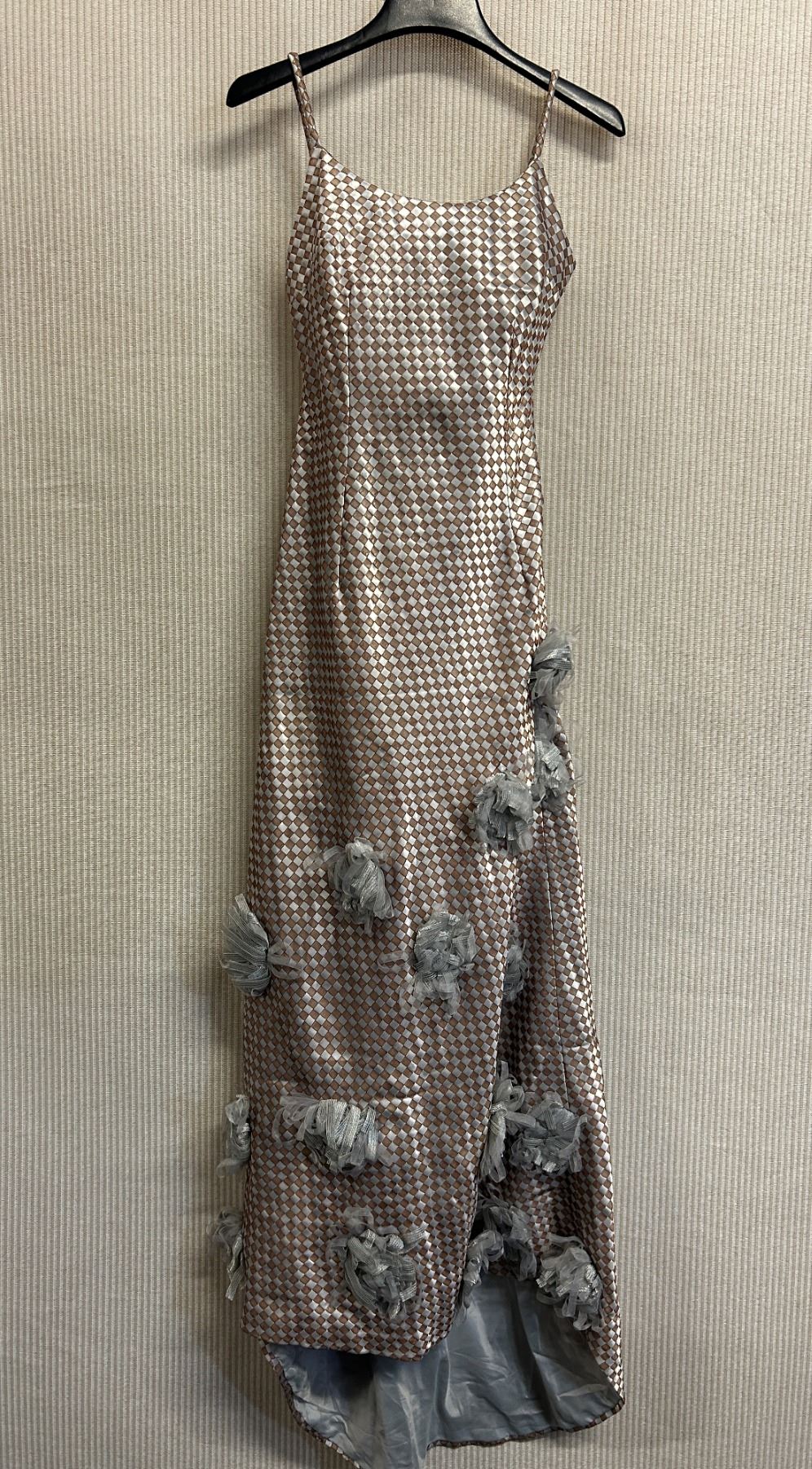Christina von Fieandt Woven Cocktail Long Dress, White & Brown, New - No Tag (Bust approx. 32", waist approx. 28"). Very long.