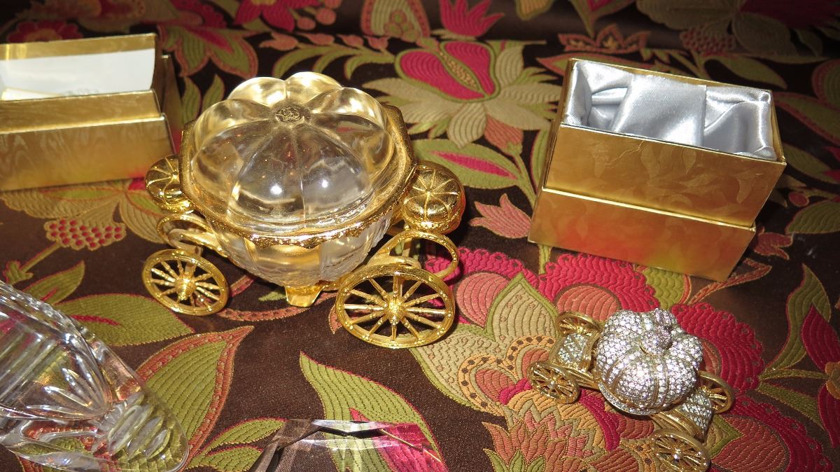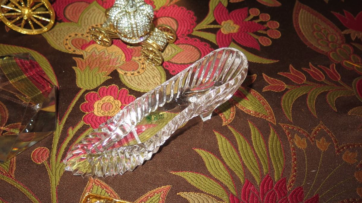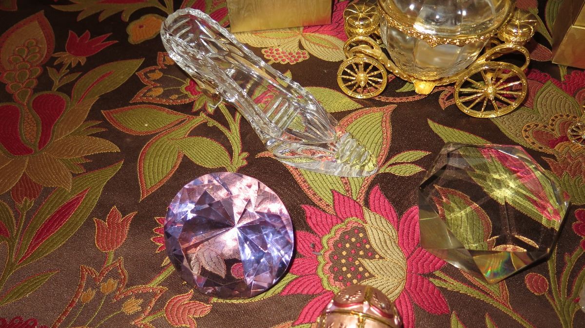 Cinderalla-Themed Lot: Glass Slippers, Glass Pumpkin Coach, Crown, Purple Gem, Embellished Egg