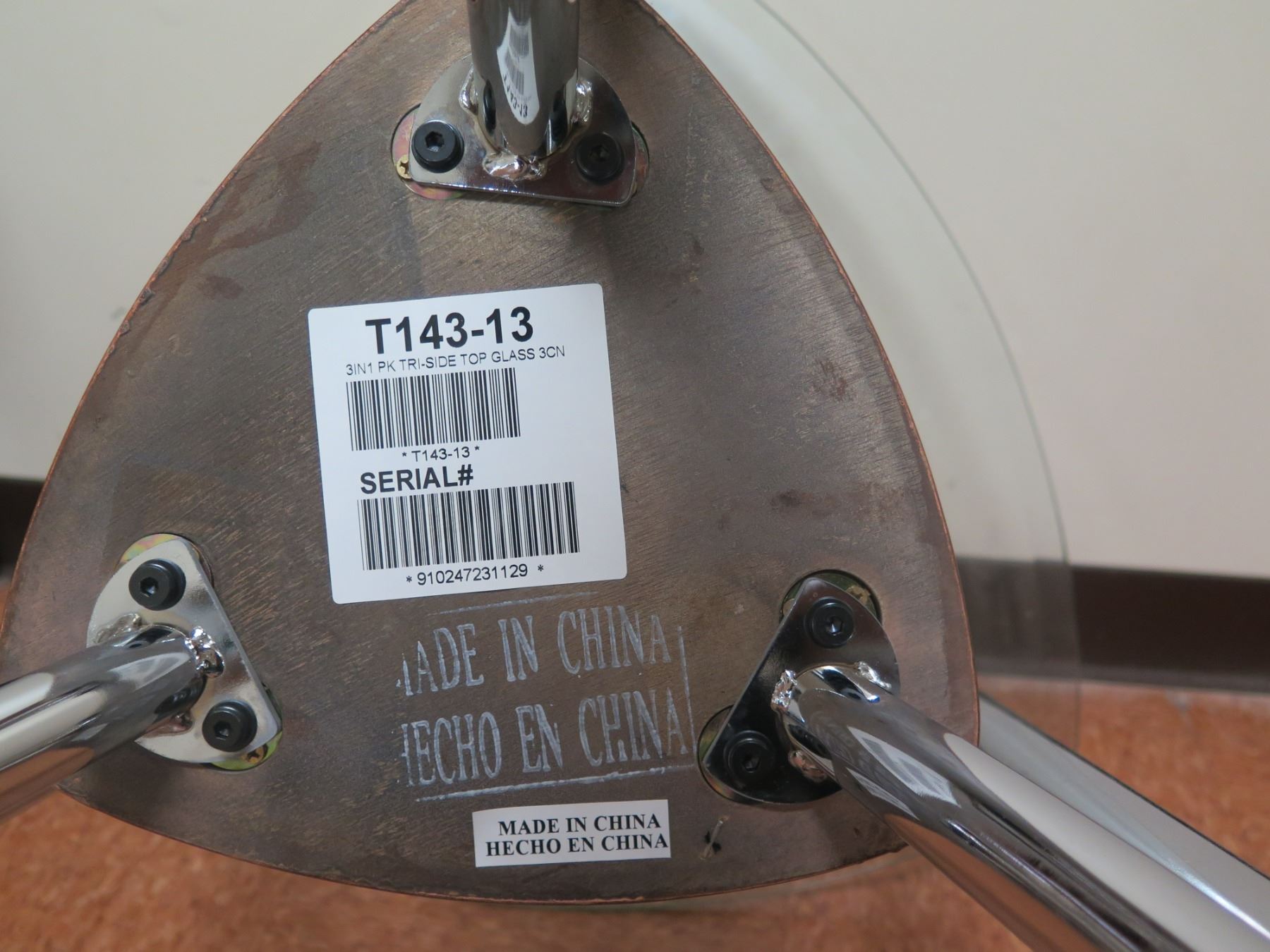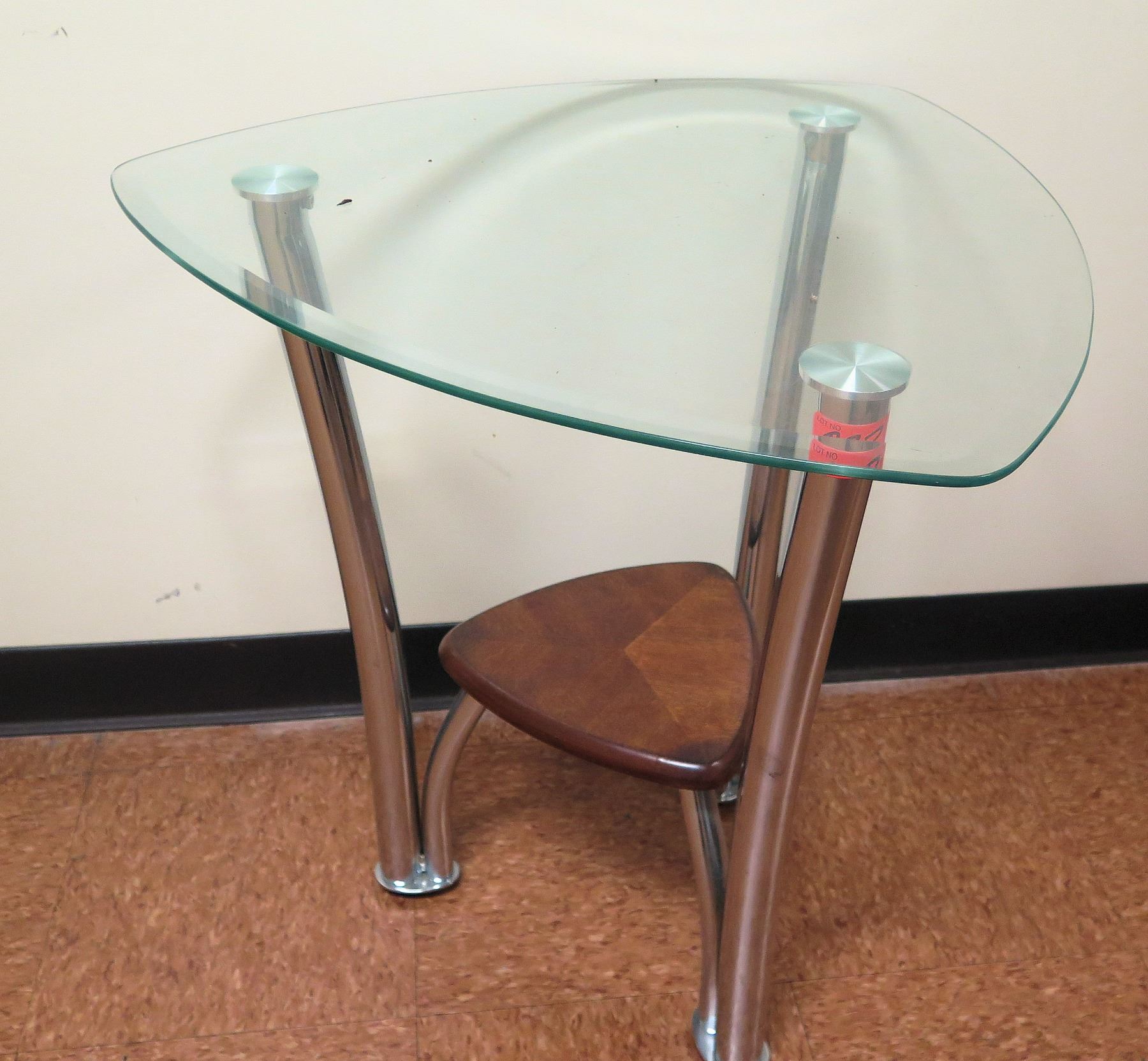 Clear Glass Tri-Side Top Table w/ Metal Legs & Undershelf 24 x24 x25 H