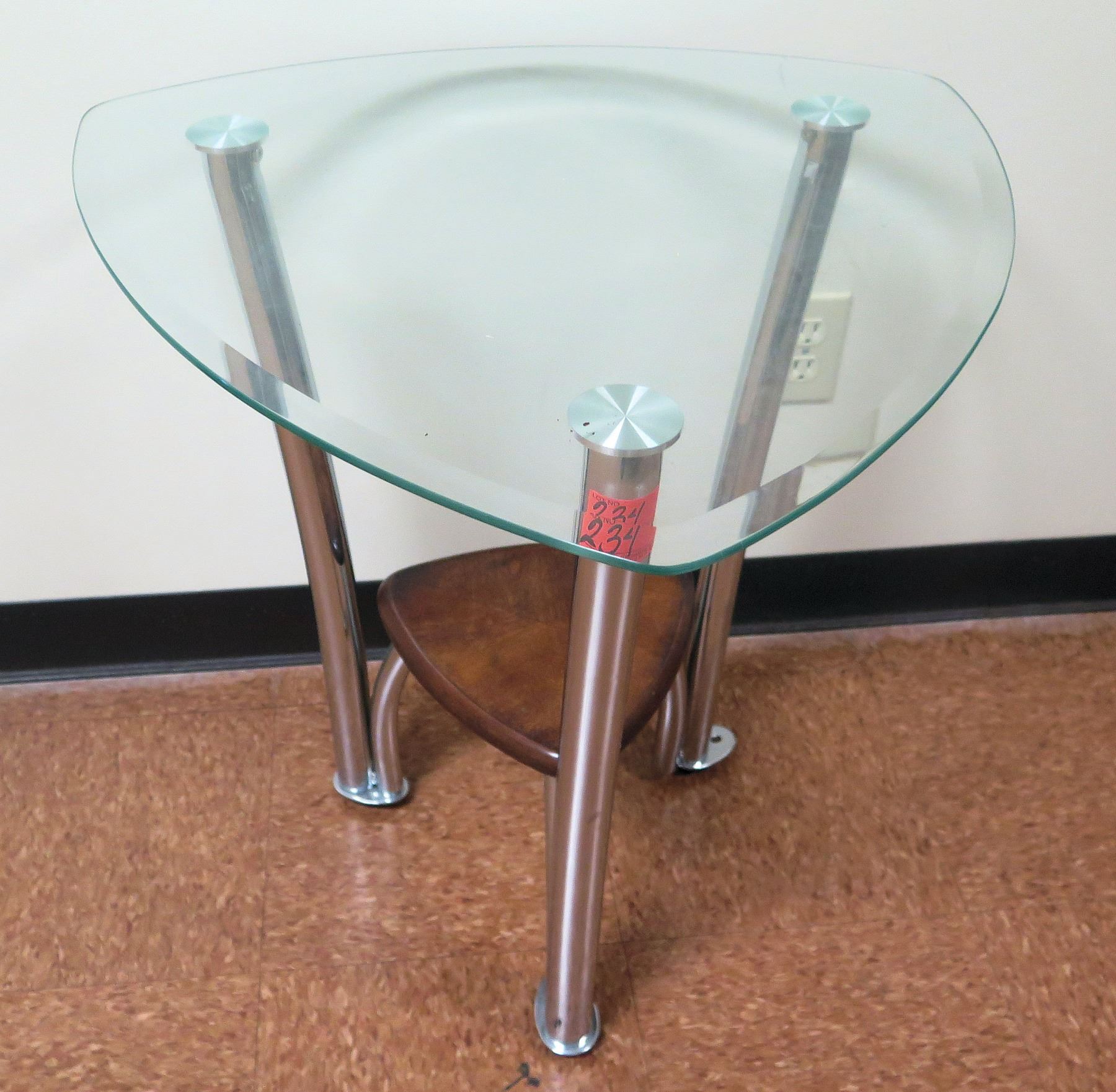 Clear Glass Tri-Side Top Table w/ Metal Legs & Undershelf 24"x24"x25"H
