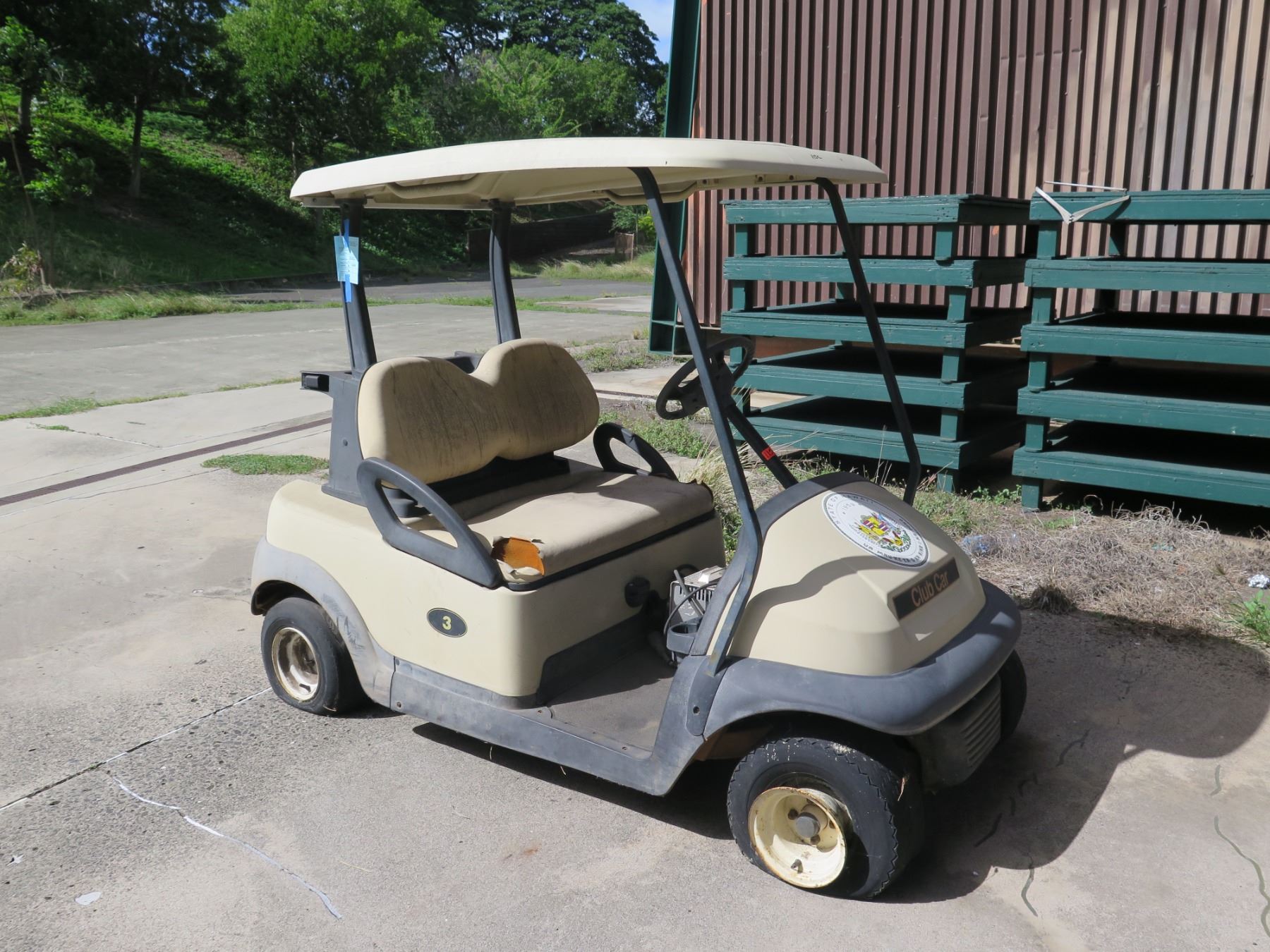Club Car 2-Passenger Golf Cart. Needs repair, does not run, parts missing. Problems unknown.