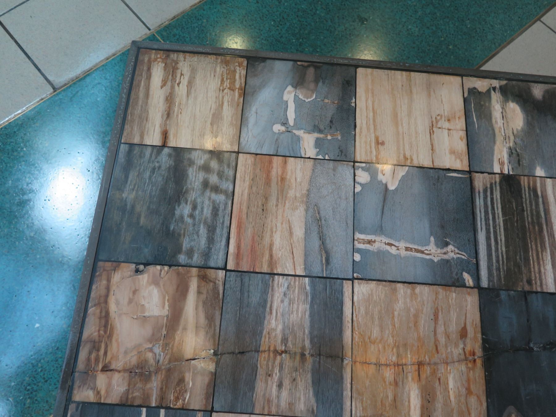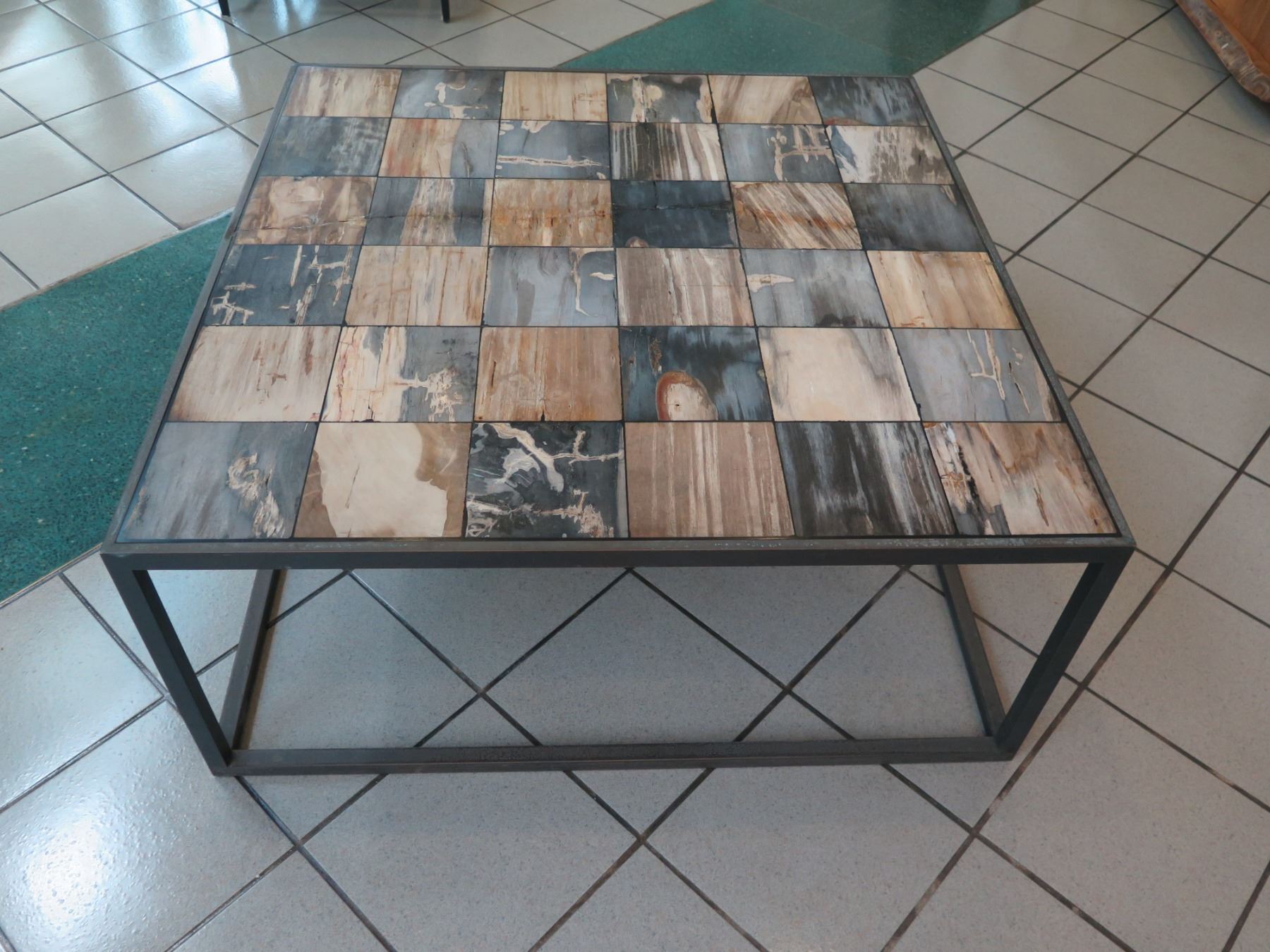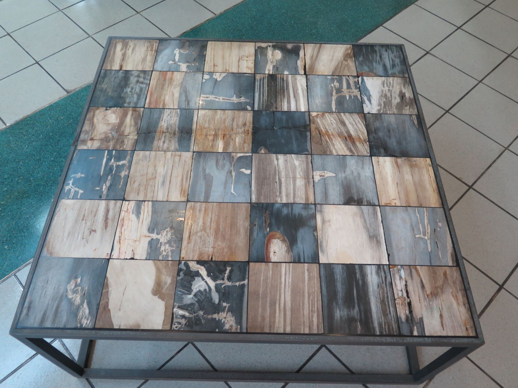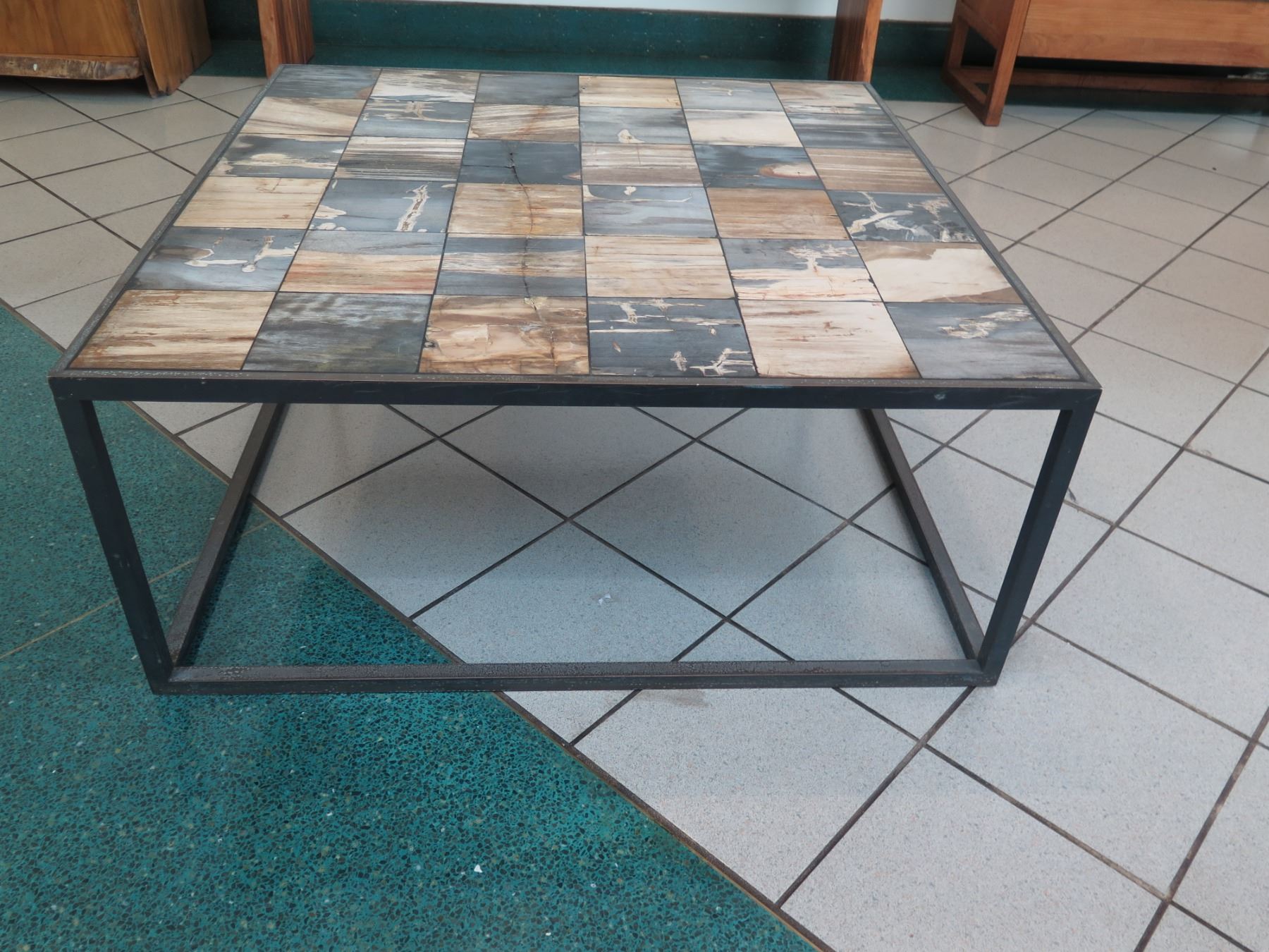 Coffee Table w/ Contrasting Squares, Metal Frame (crack line towards middle) 42"x42"x18"H