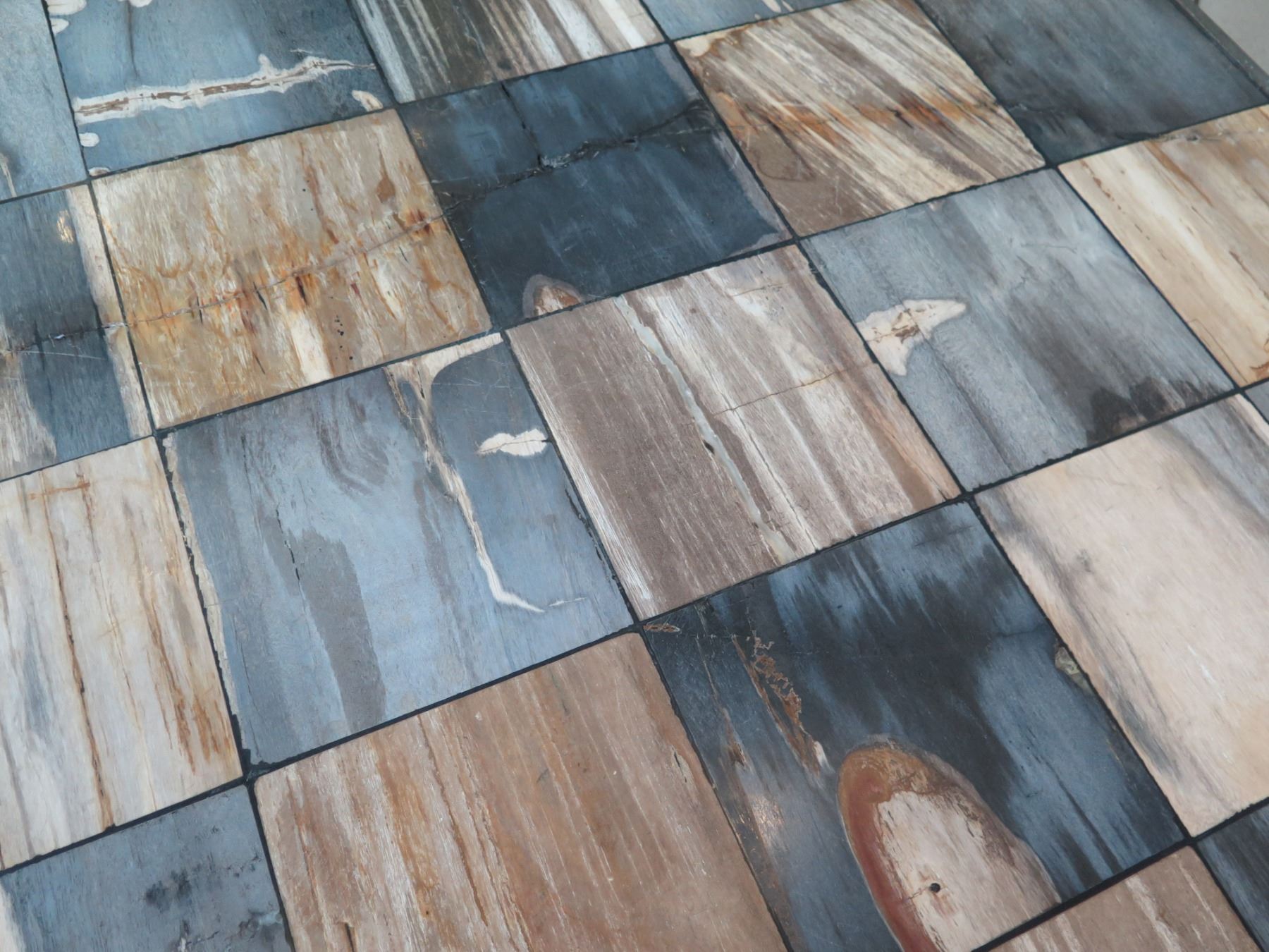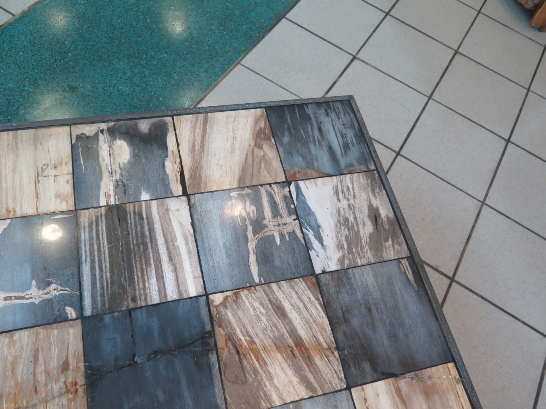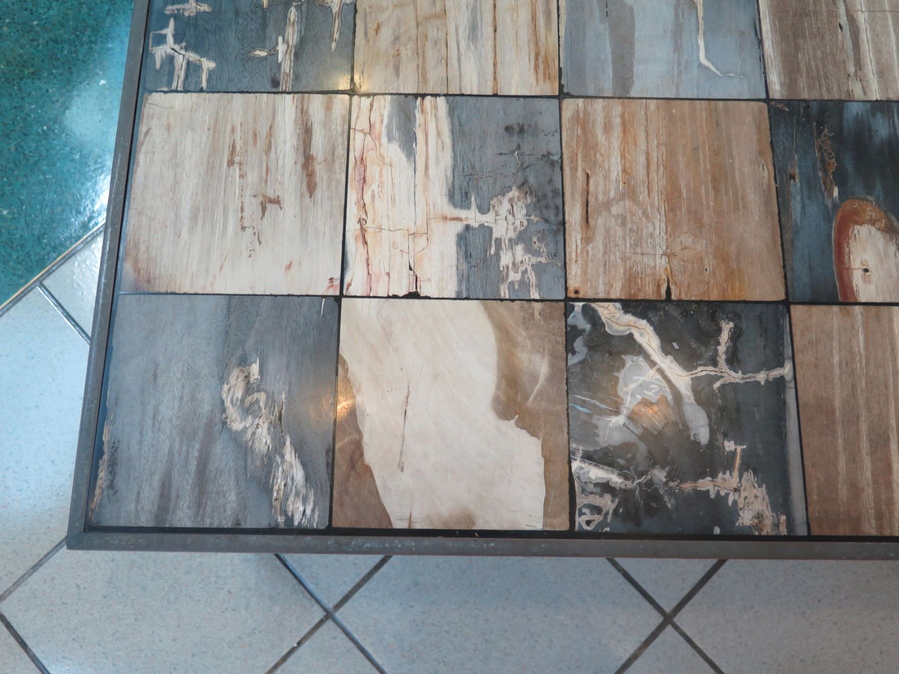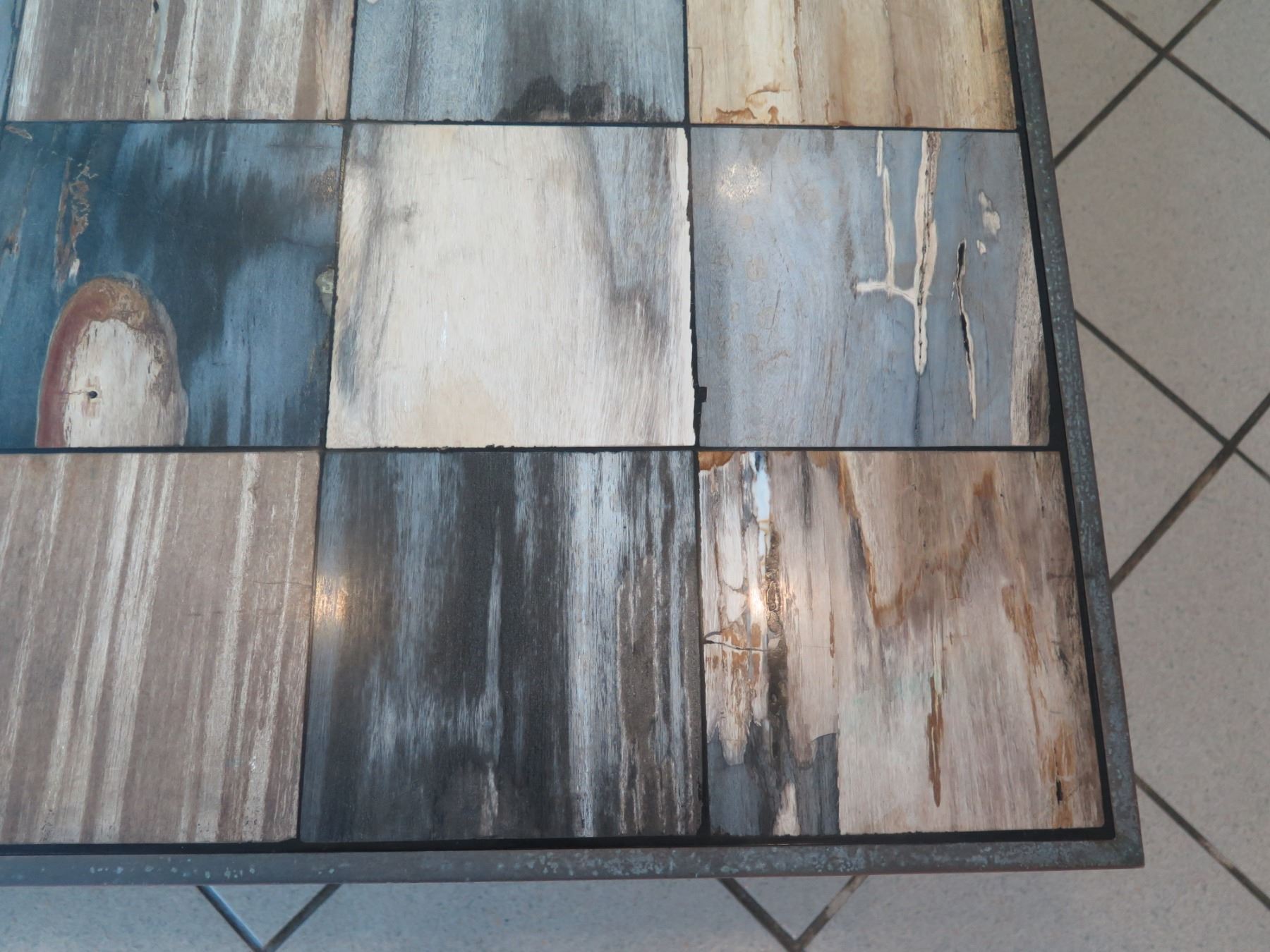 Coffee Table w/ Contrasting Squares, Metal Frame (crack line towards middle) 42"x42"x18"H
