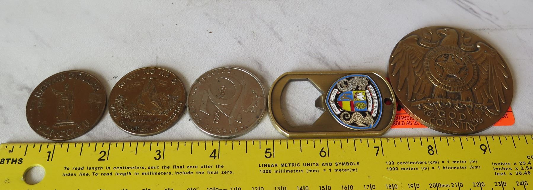 Collectible Coins - Hawaiian Dolar, Maui Dollar, Hawaiian Airlines, etc. Everything in the auction is being sold “as is” with no guarantees or warranties. All sales final. Returns/refunds/exchanges will not be allowed. You are bidding on what you see in the pictures in their present condition. If you do not see an AC adapter, power cord/cable, batteries, accessories, manuals, original box it’s because we don’t have it. We have not personally used any of these items and unsure of functionaltiy of electronics, tools, equipment, gear, musical instruments, sporting goods items, bikes, mopeds, etc.