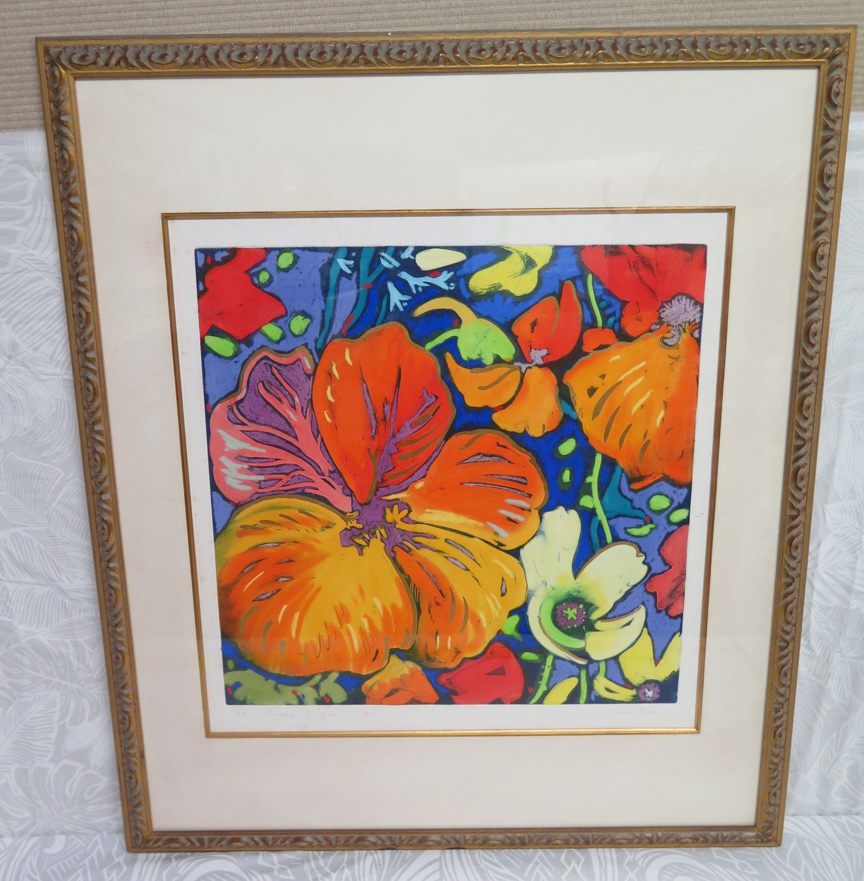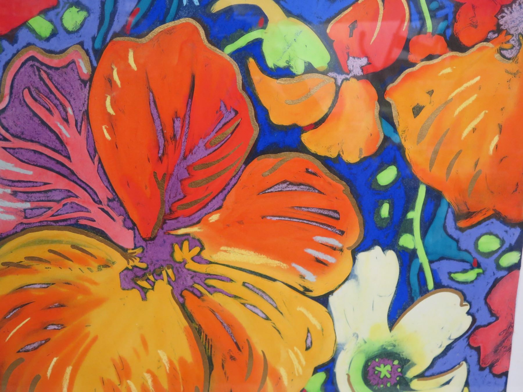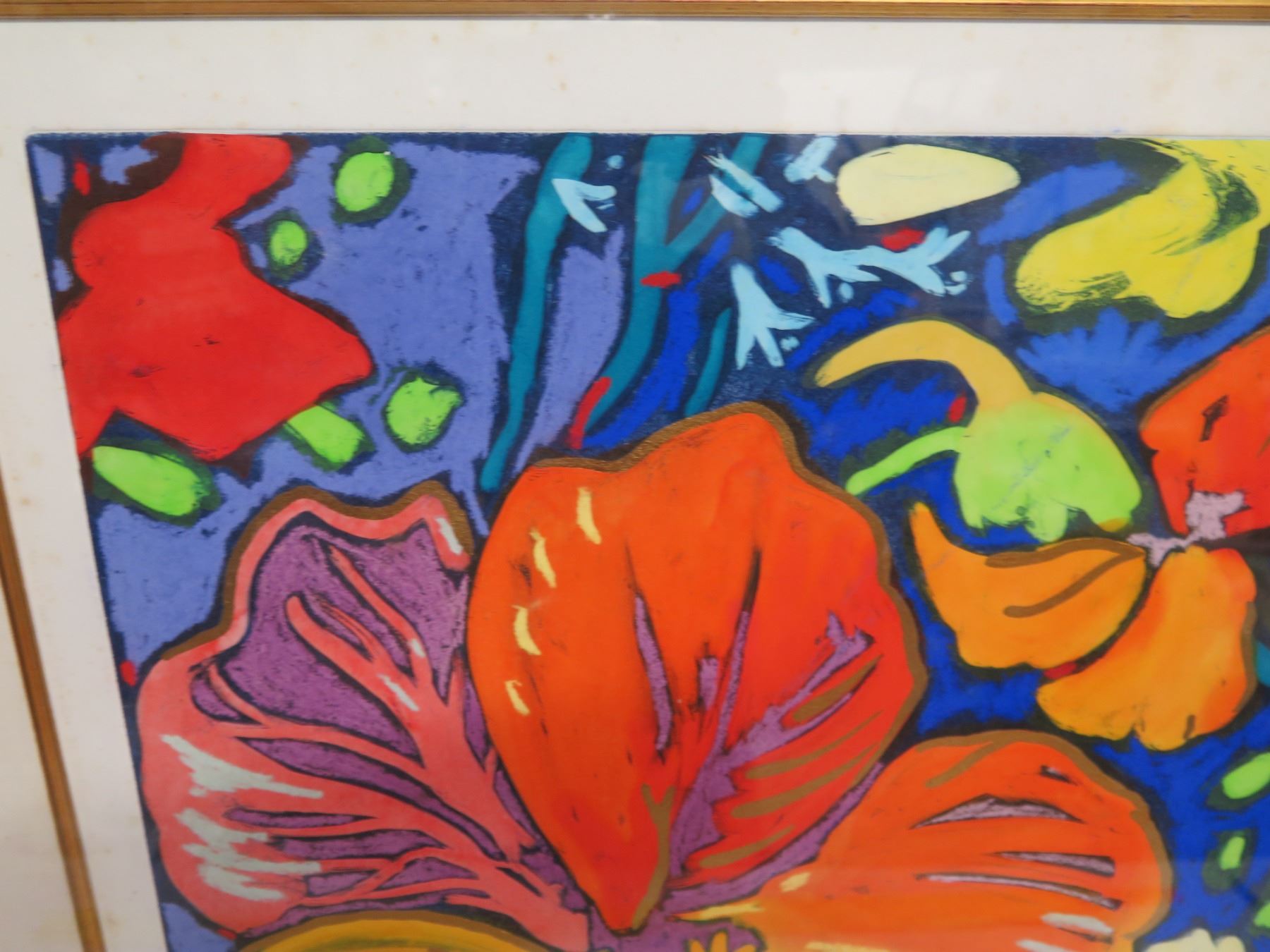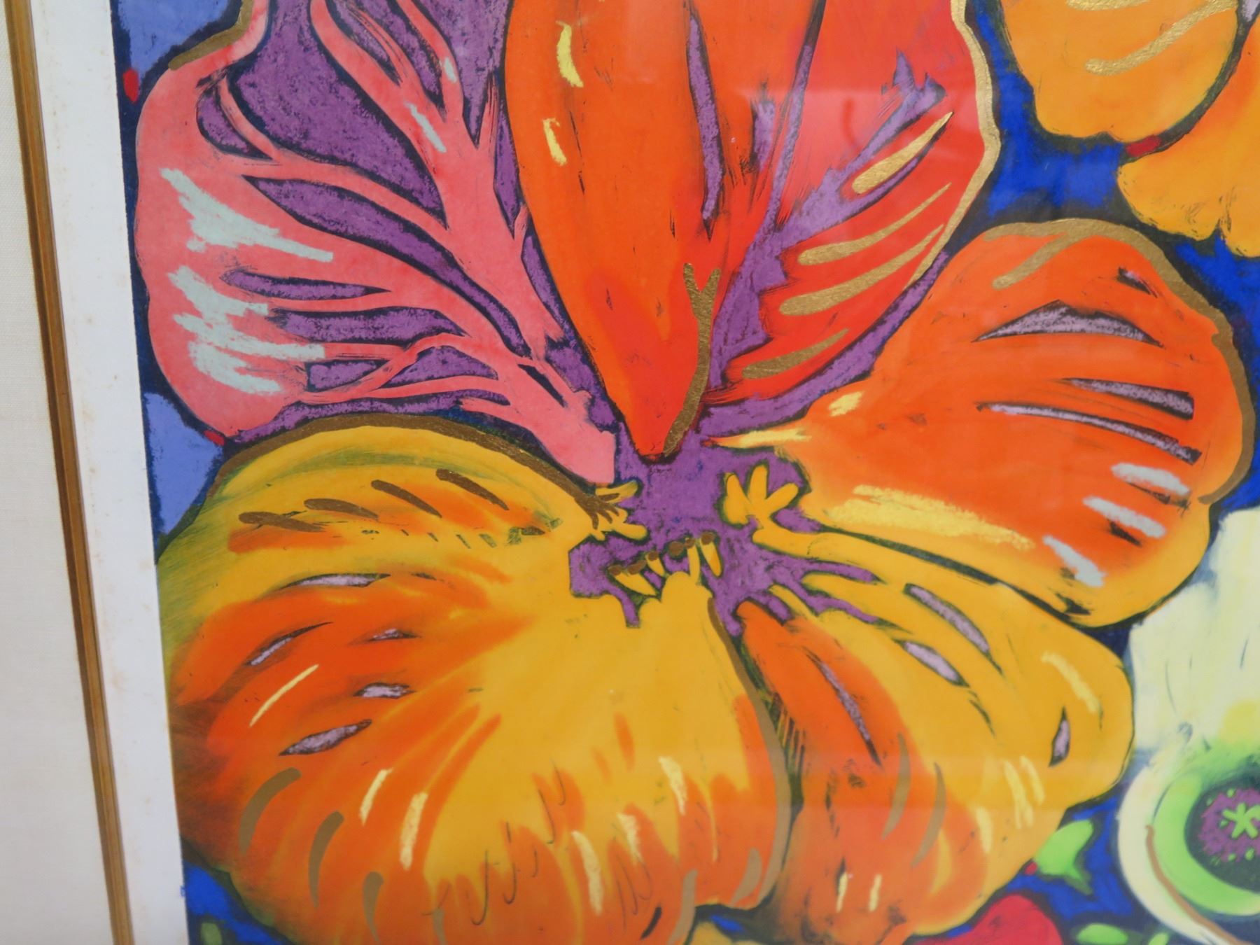 Colorful Hibiscus Artwork Signed by Artist 85/350 Framed 36"x42"