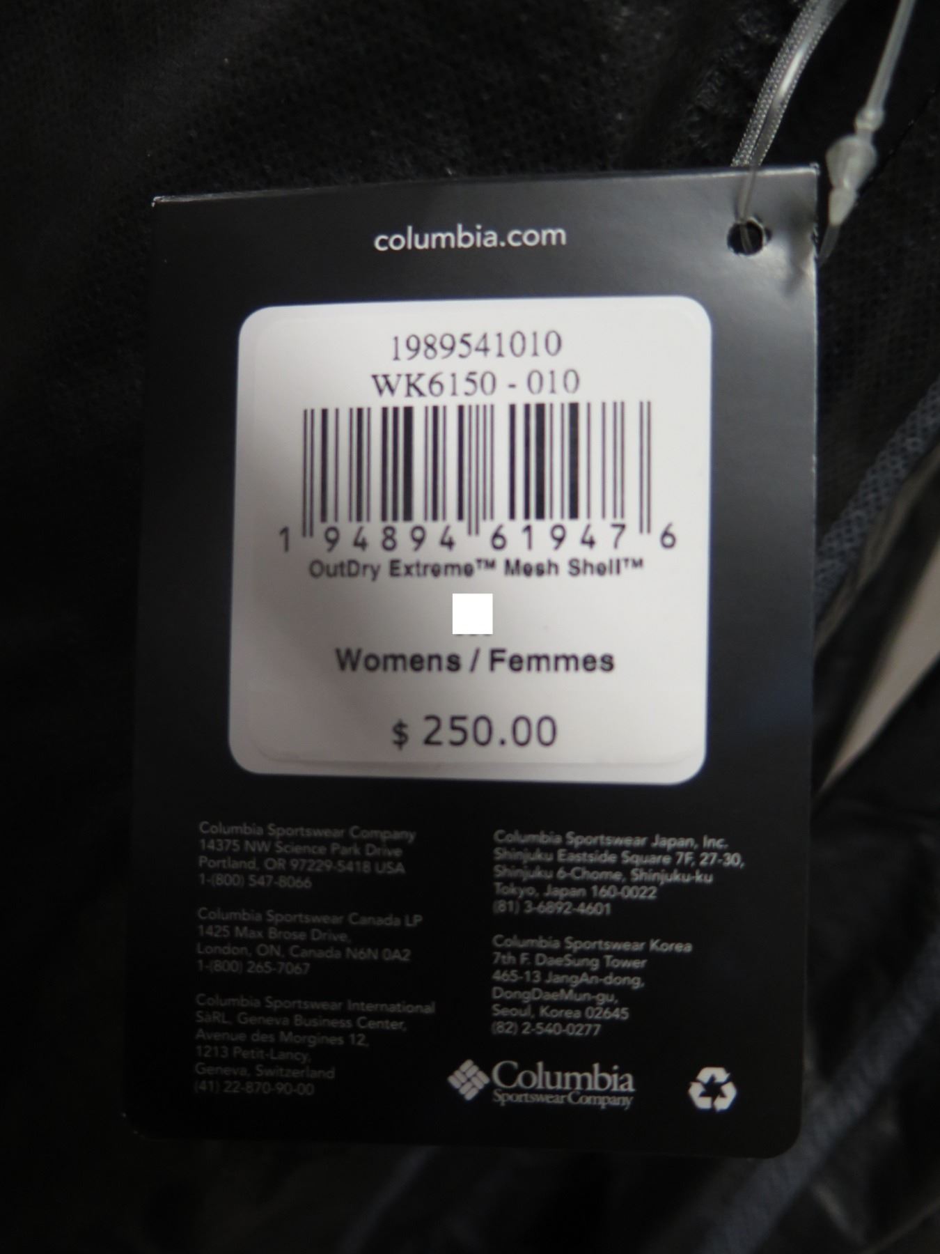 Columbia Sportswear OutDry Extreme Mesh Shell Women's Rain Jacket Size L (retail $250)