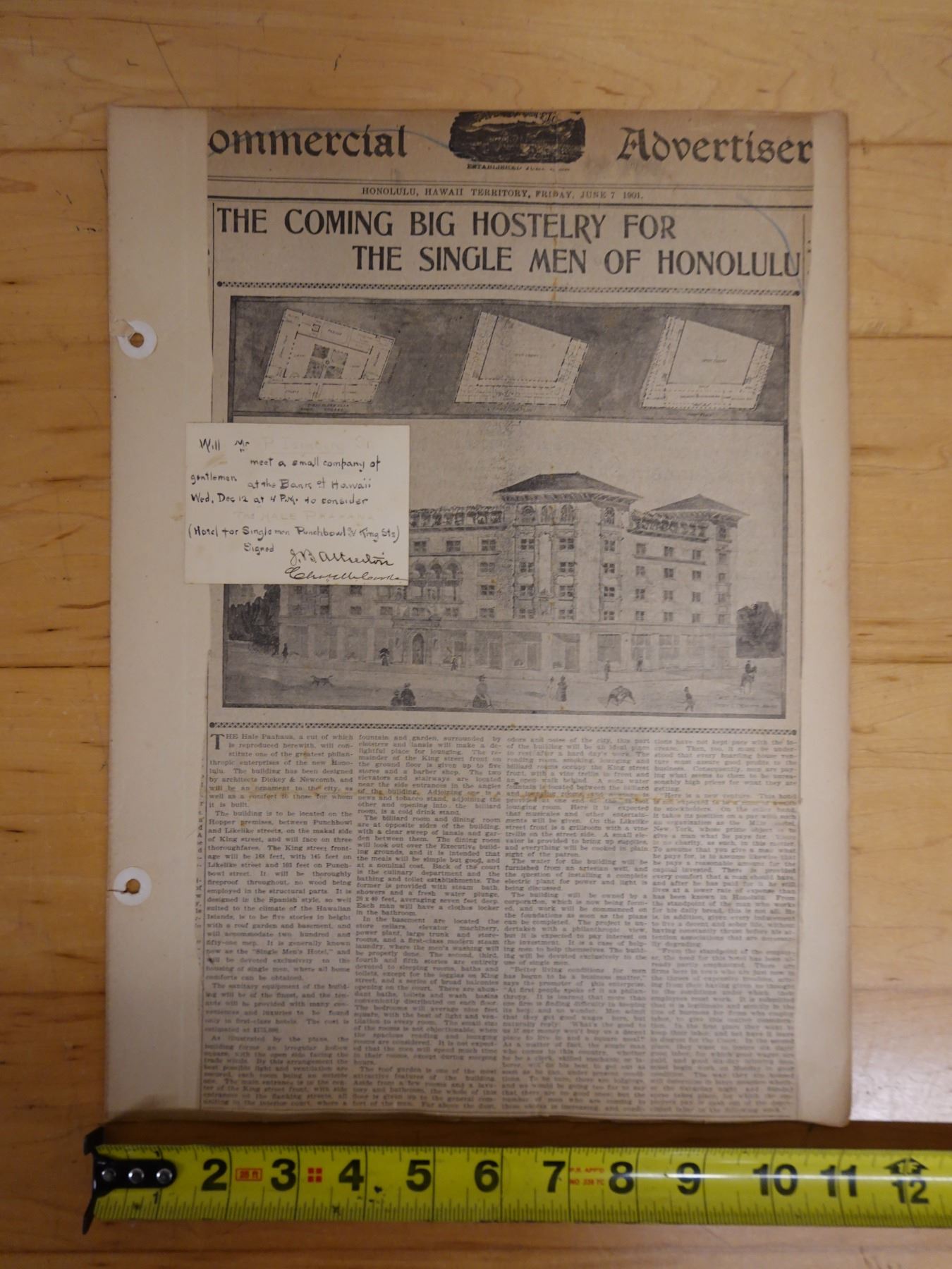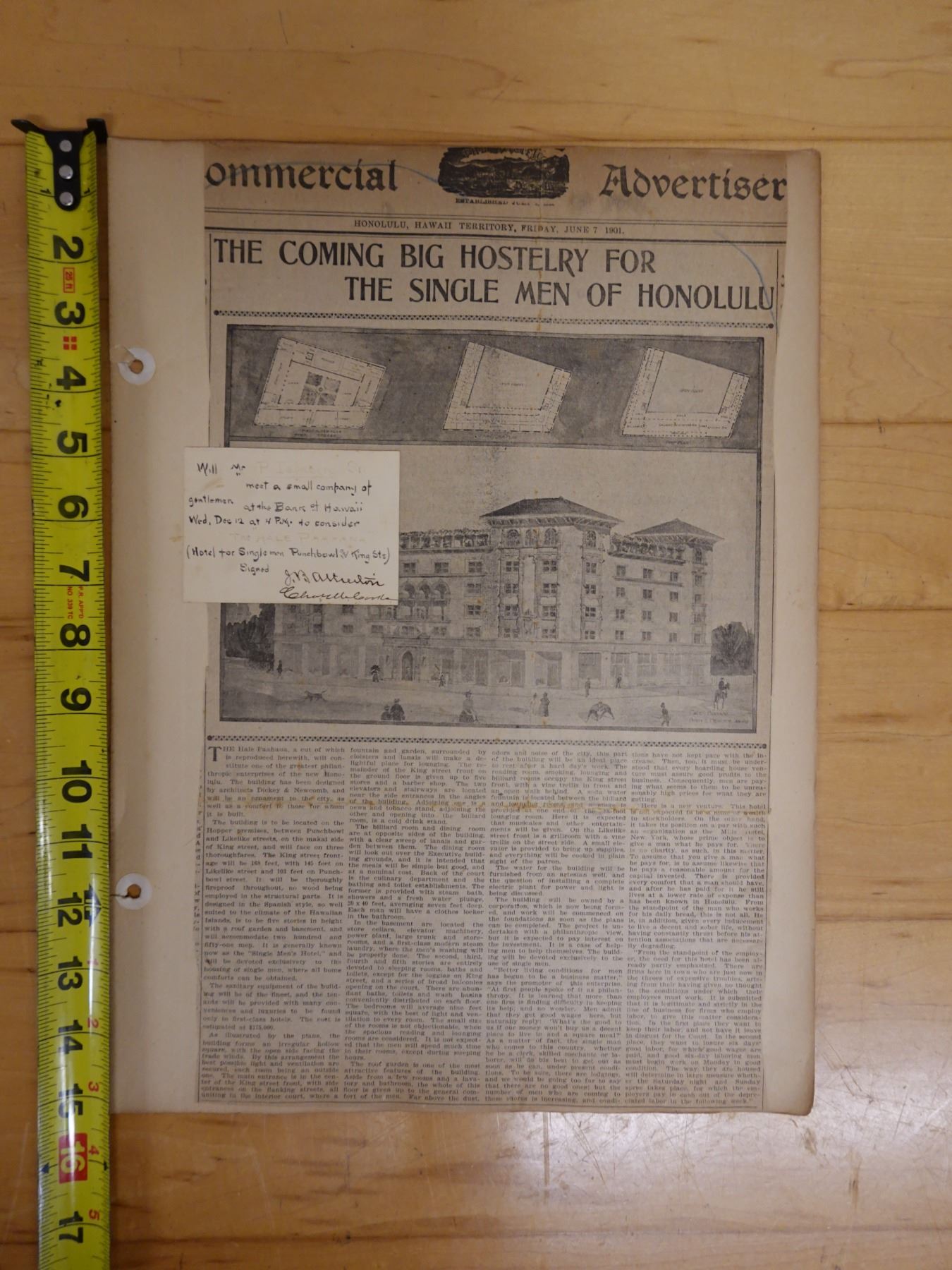 Commercial Advertiser Newspaper Dated 6/7/1901 w/ Note & Signed J.B. Atherton, 11" x 15"