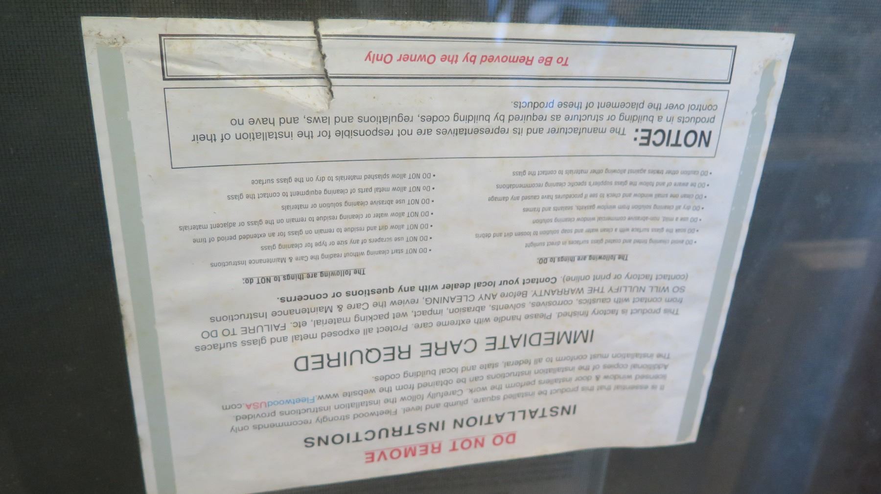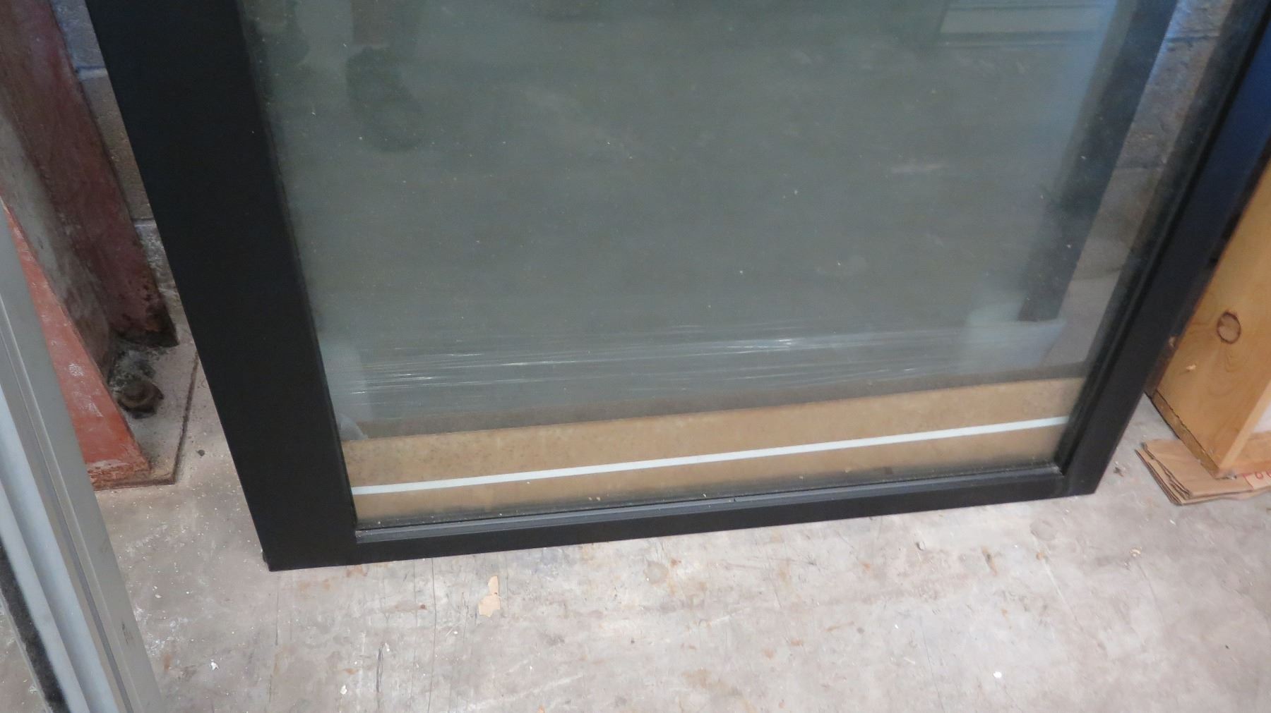 Fleetwood Norwood 3000 Aluminum sliding glass door system / 3 Panel / Block frame / Bronze anodized finish / Clear tempered glass / Screen door / frame (jamb channels and tracks) are included 112" x 97" OXO