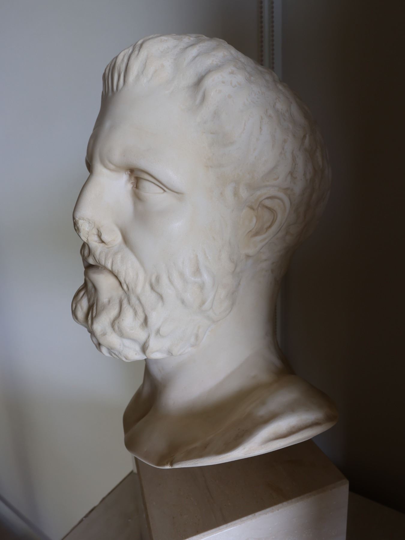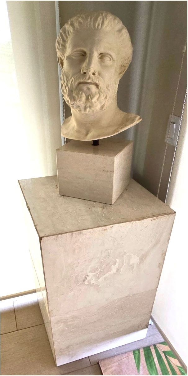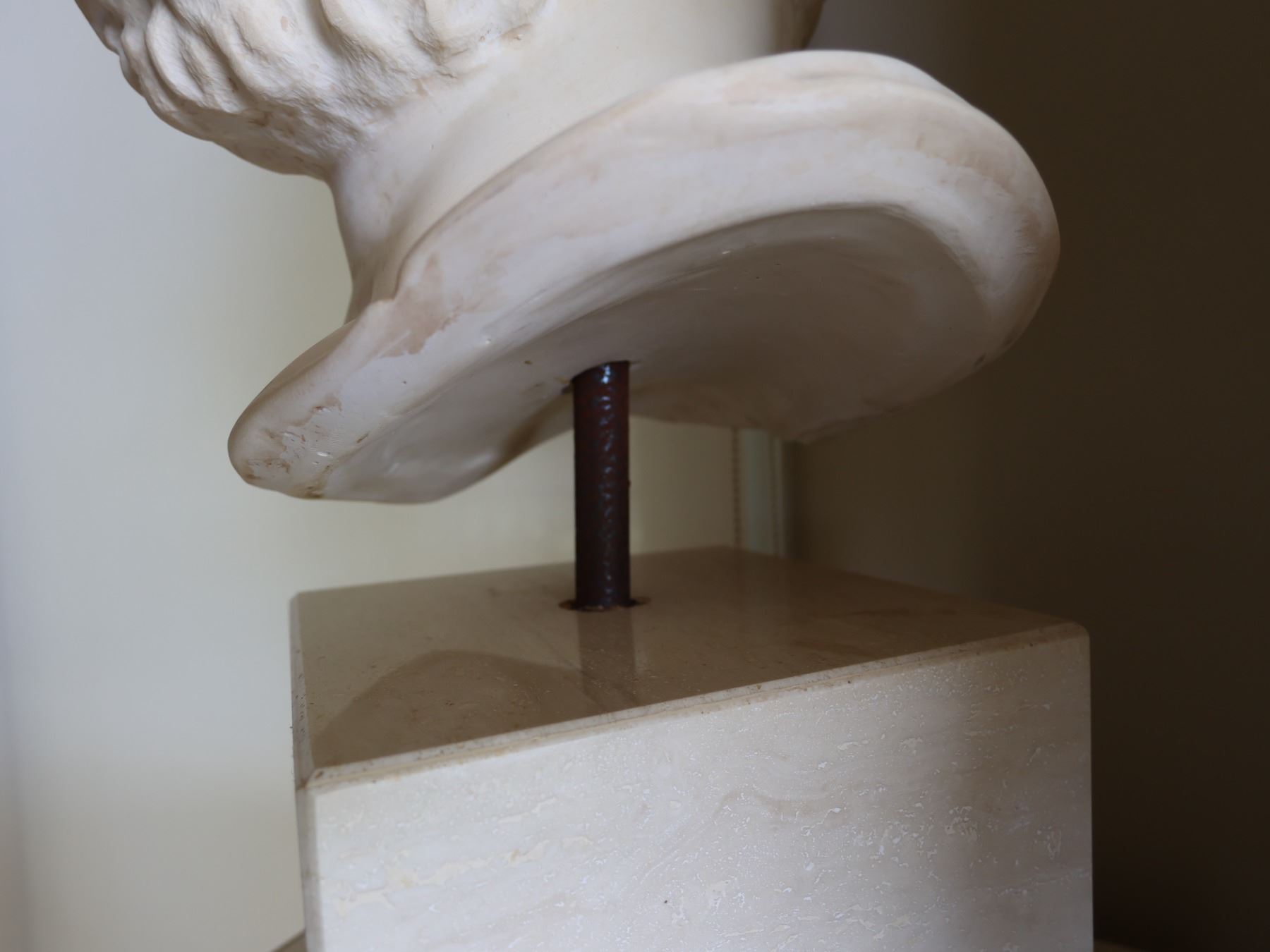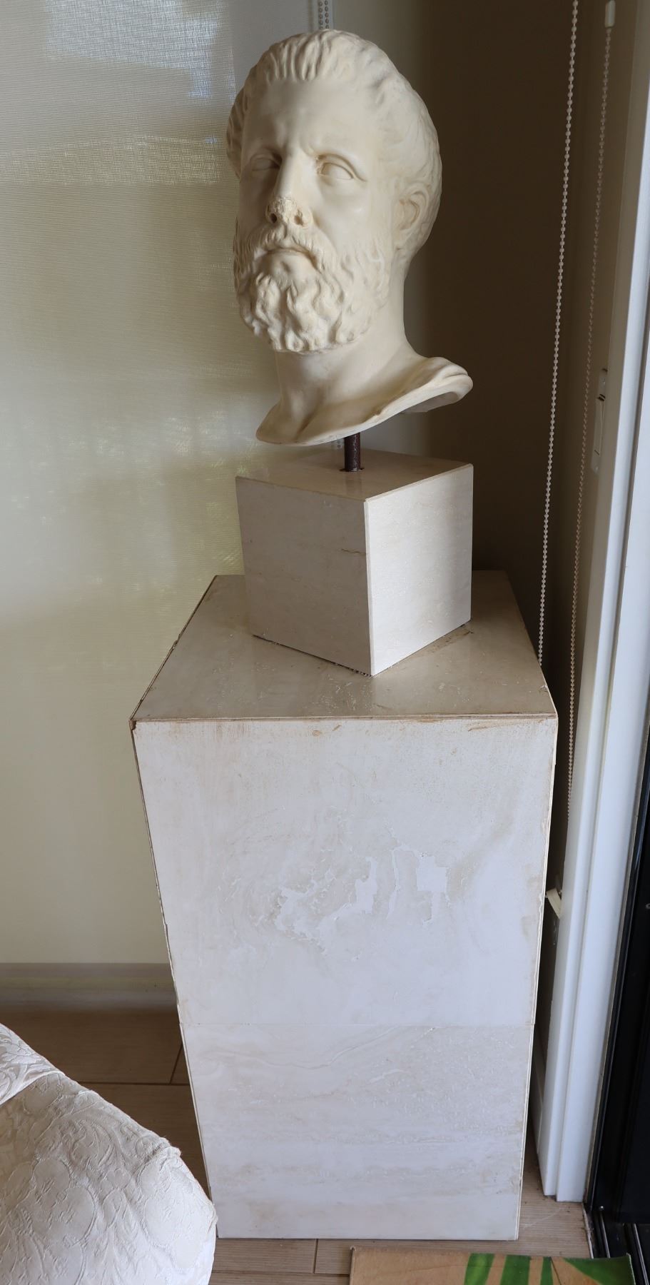 Contemporary Cast Marble Head of a Bearded Male Figure 26"H on Pedestal Stand 18" x 18" x 36"H