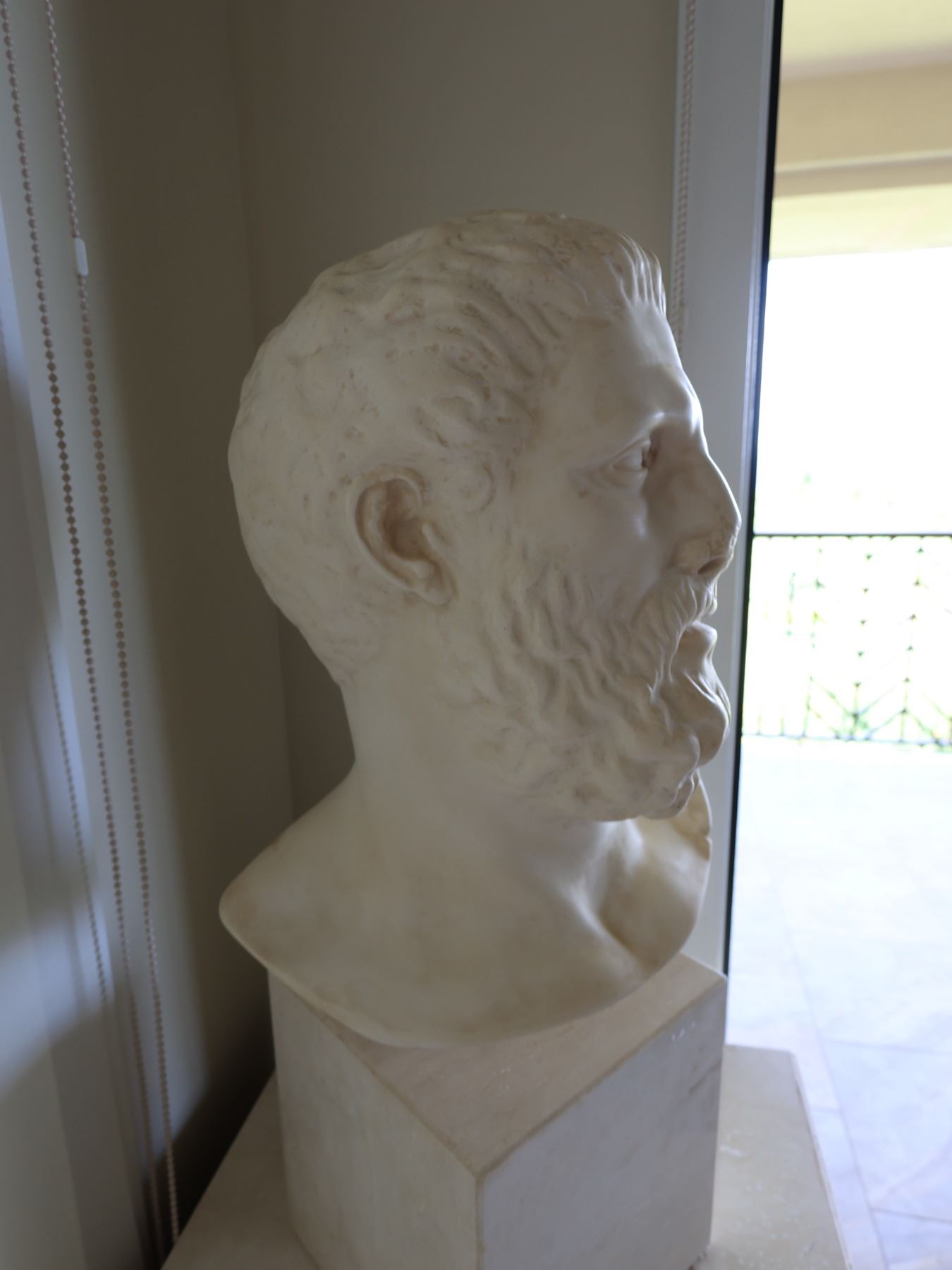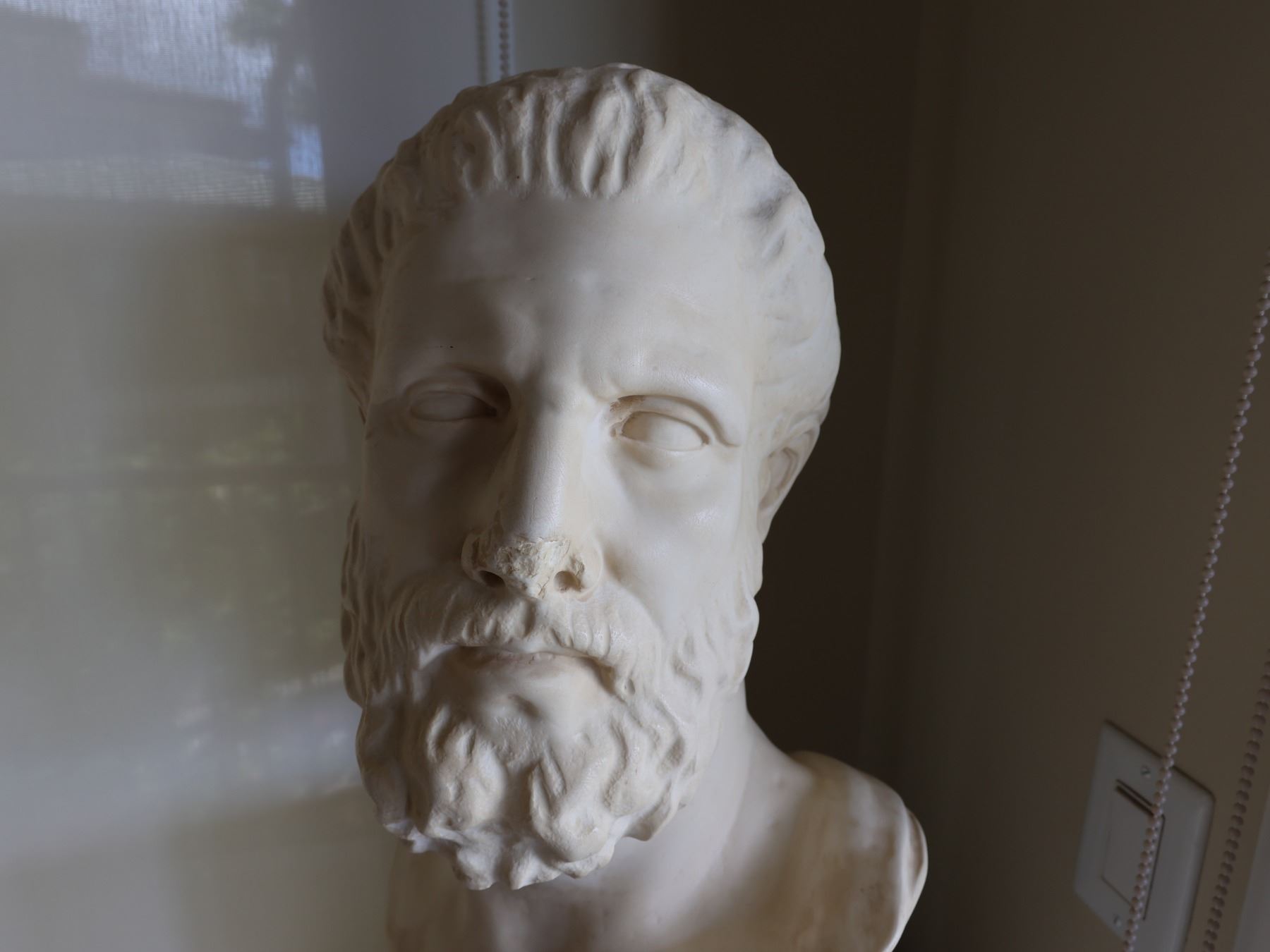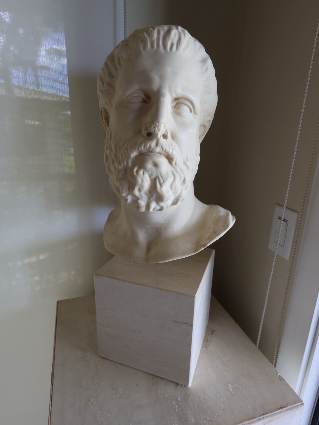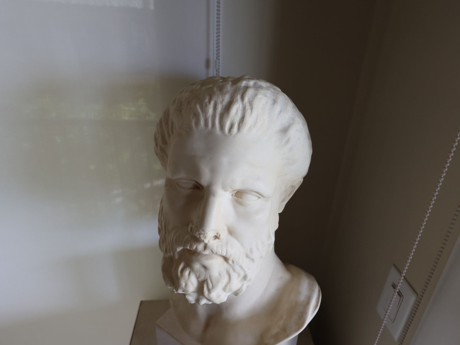 Contemporary Cast Marble Head of a Bearded Male Figure 26"H on Pedestal Stand 18" x 18" x 36"H