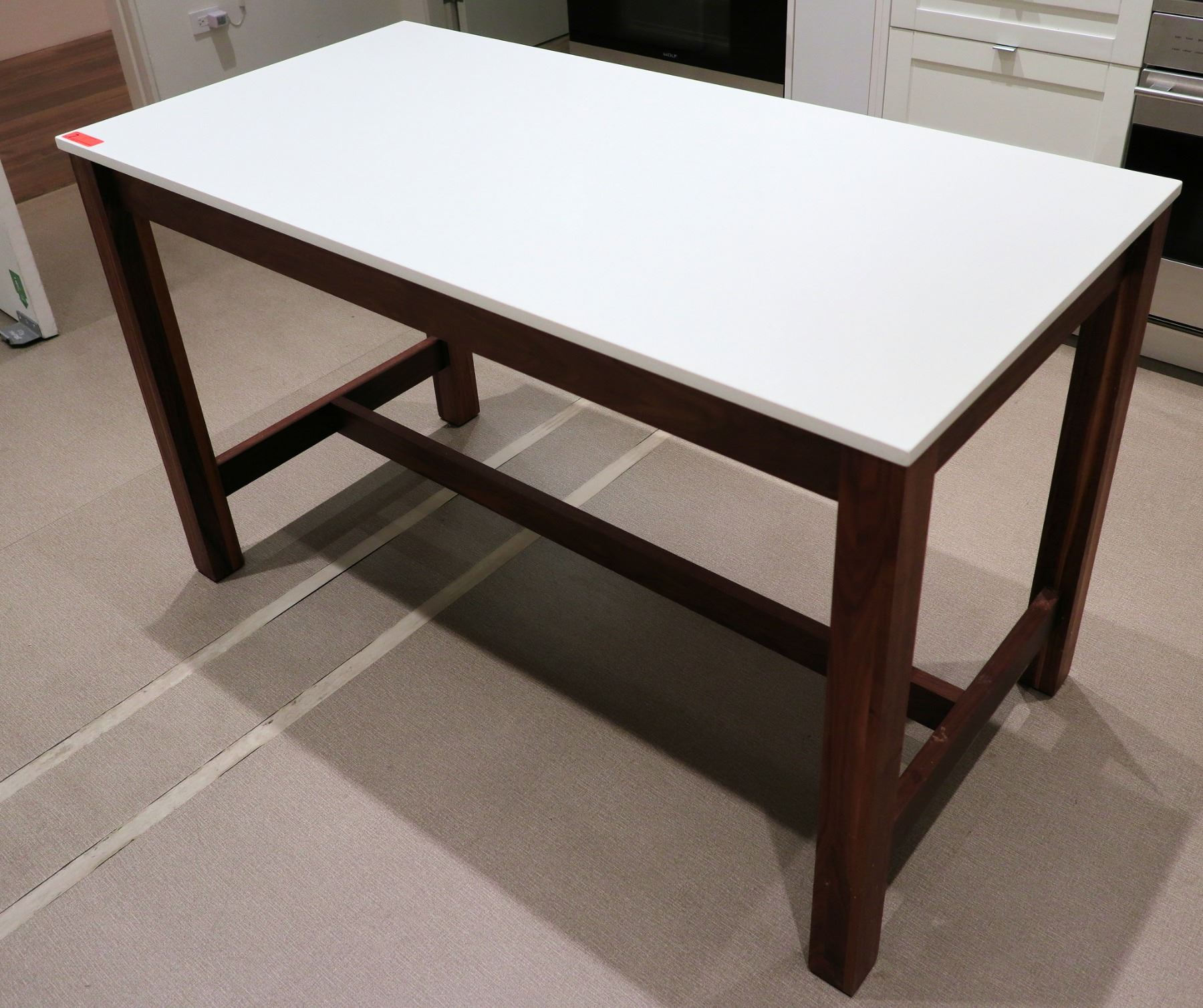Contemporary Table w/ Hanstone "Aurora Snow" Top 5' x 30" x 3' H