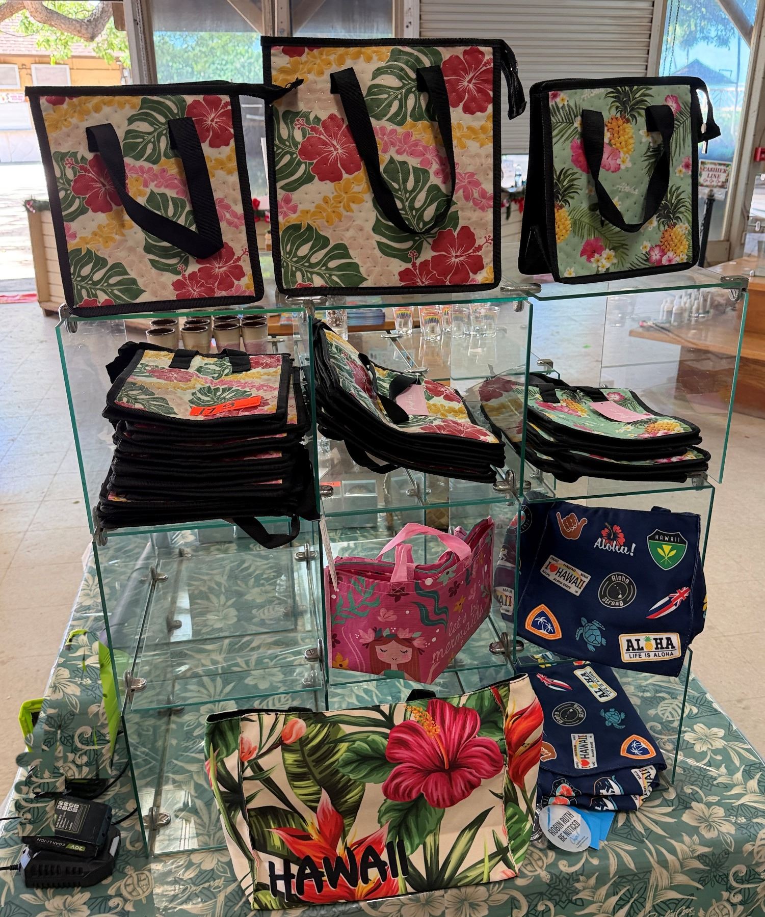 Contents of Display: Hawaii Tote Bags, Misc Sizes & Designs (rack not included)