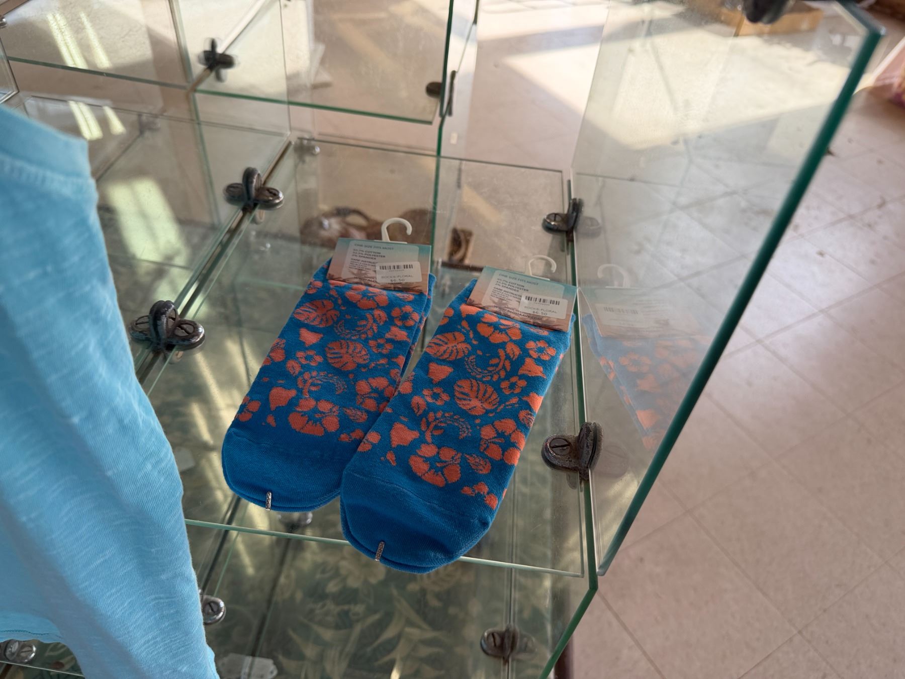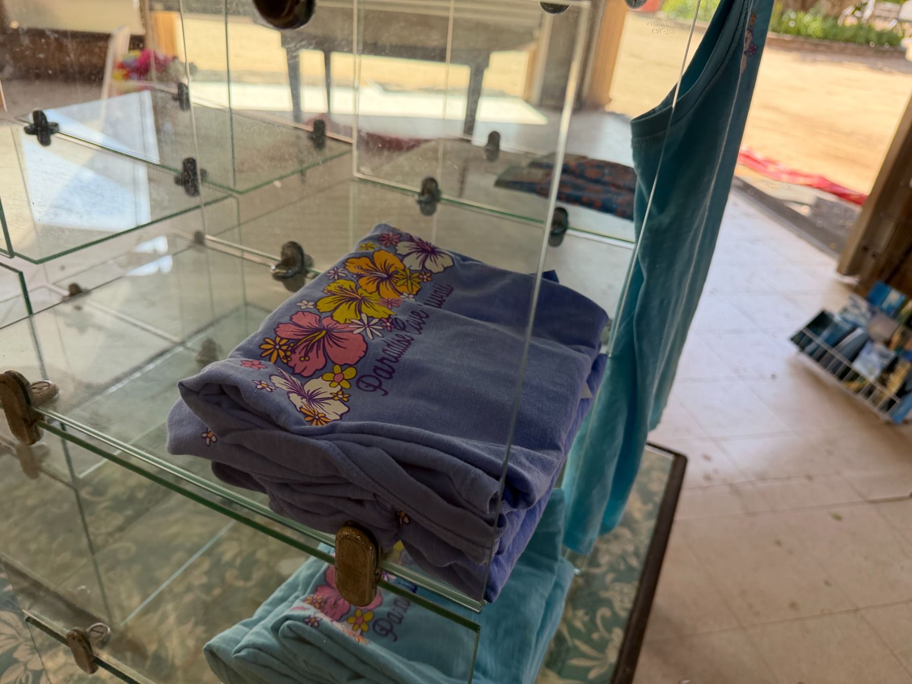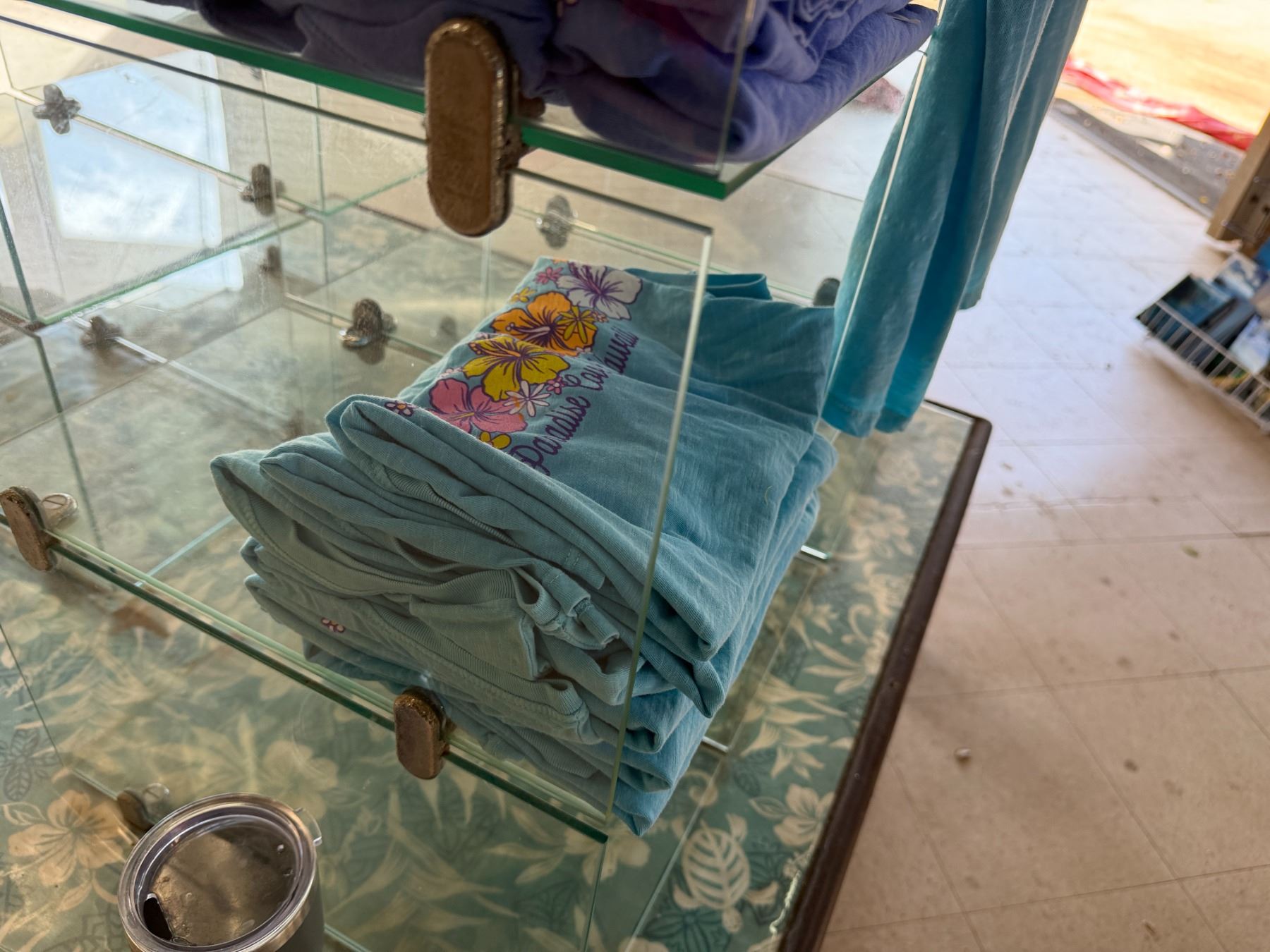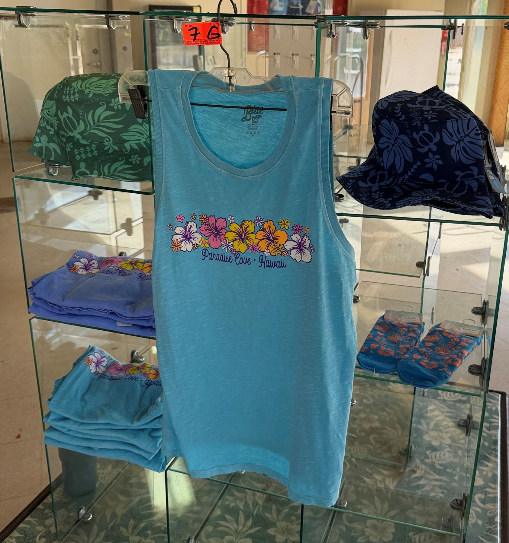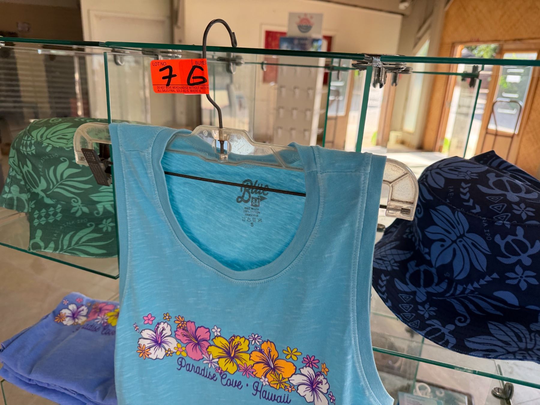 Contents of Display: Multiple Paradise Cove Tank Tops, Caps, Socks, etc (rack not included)