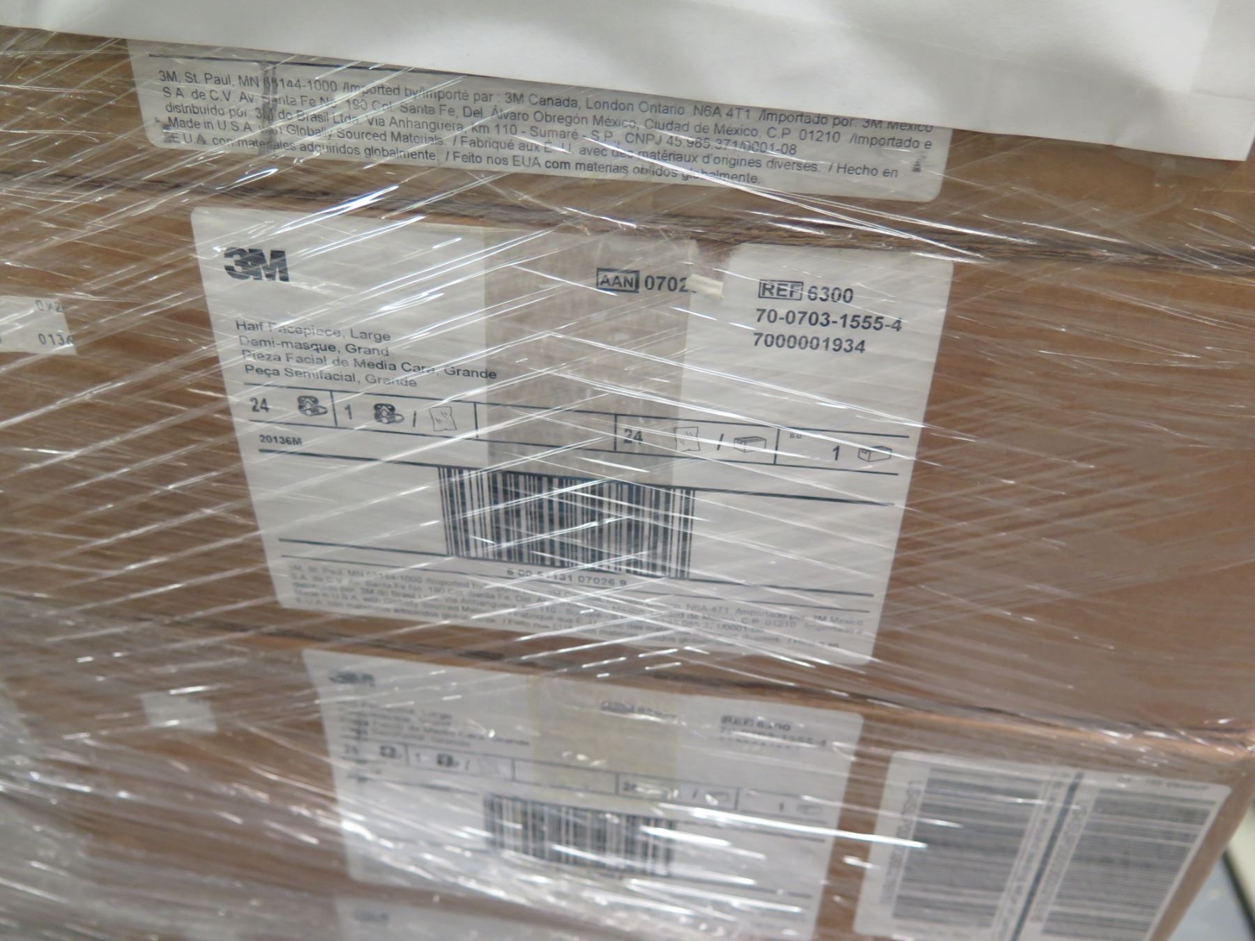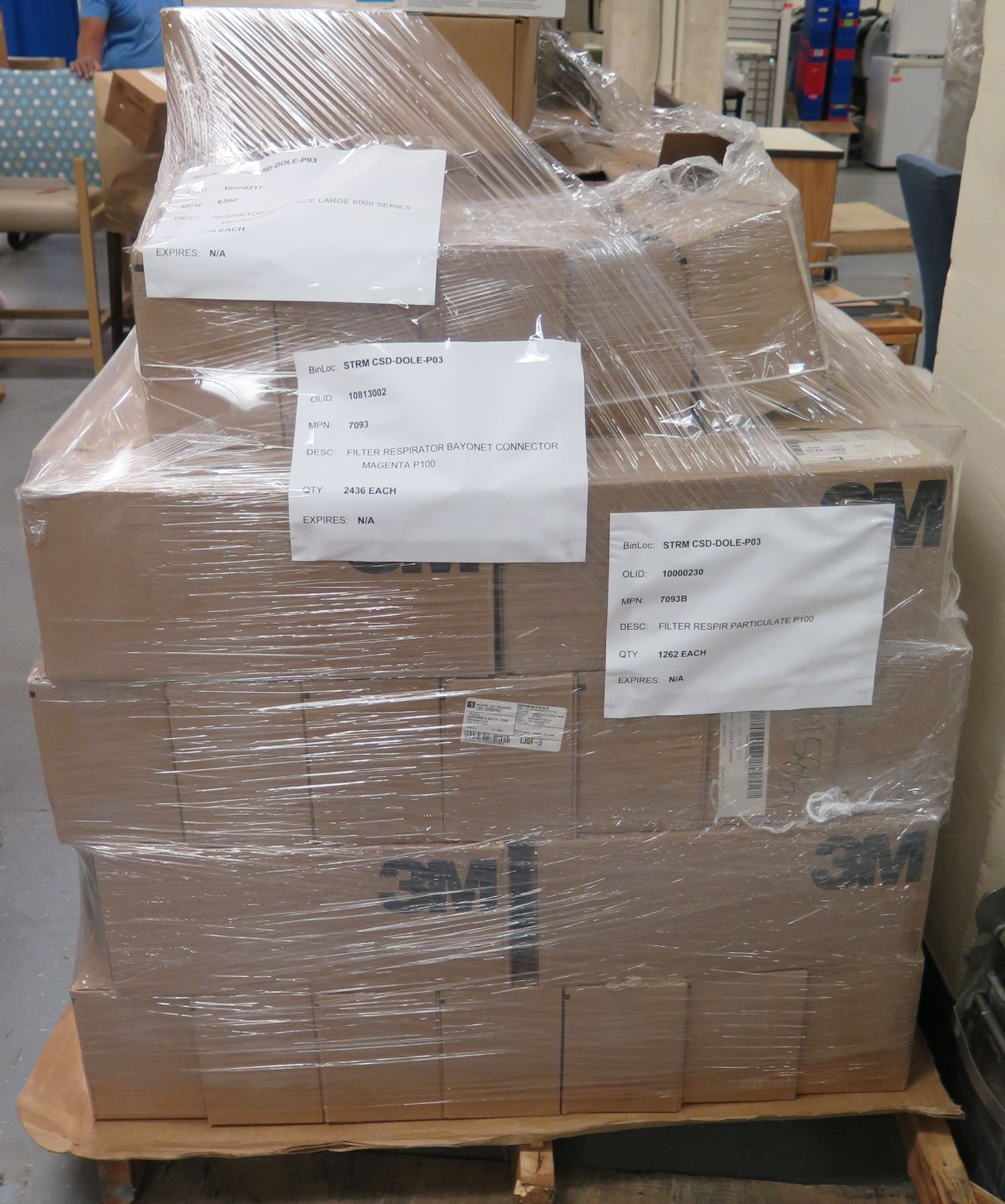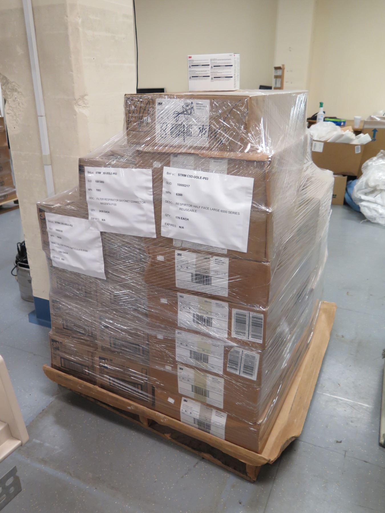 Contents of Pallet: 3M Respirators Half-Face Large 6000 Series & Bayonet Connectors
