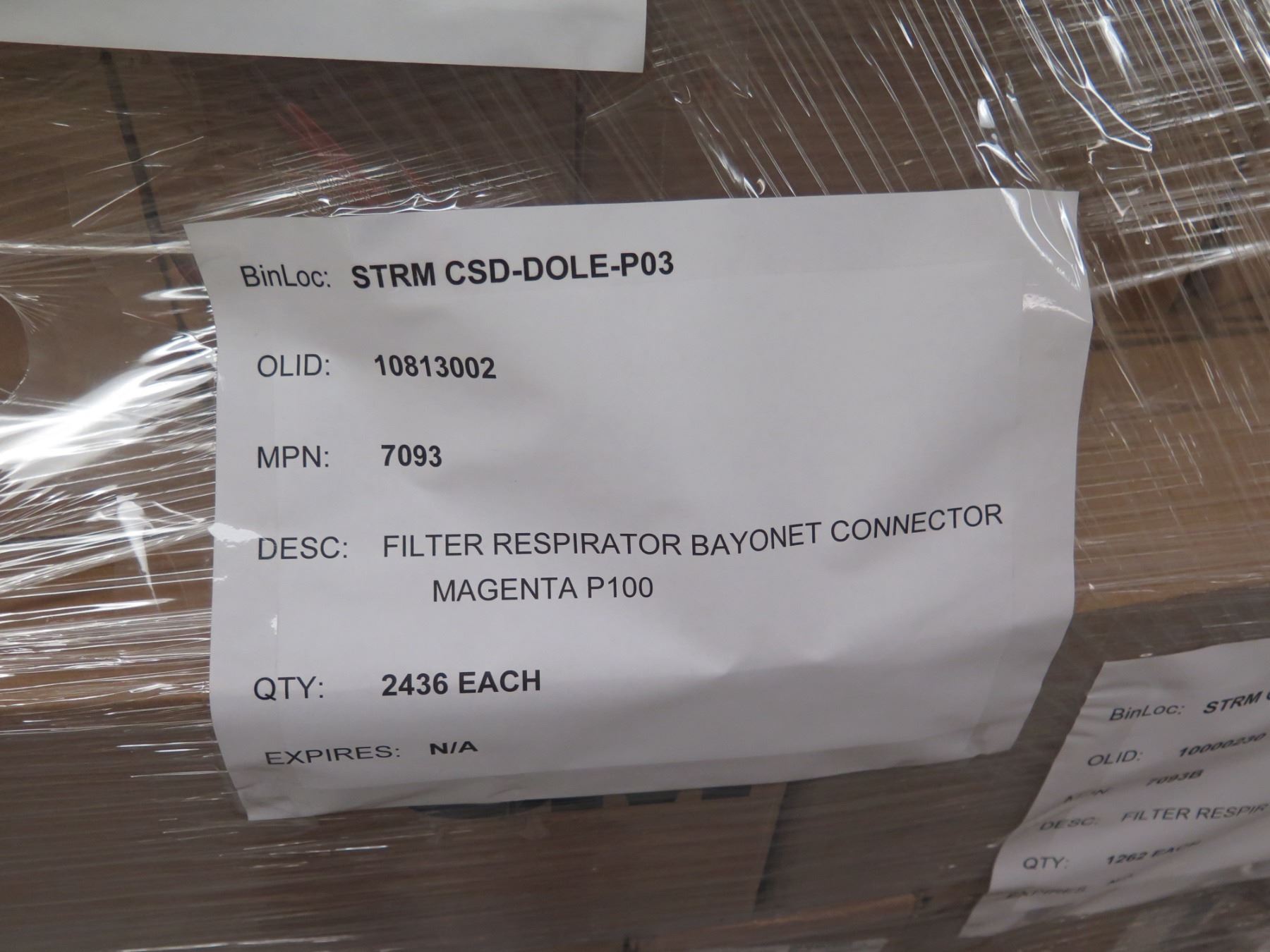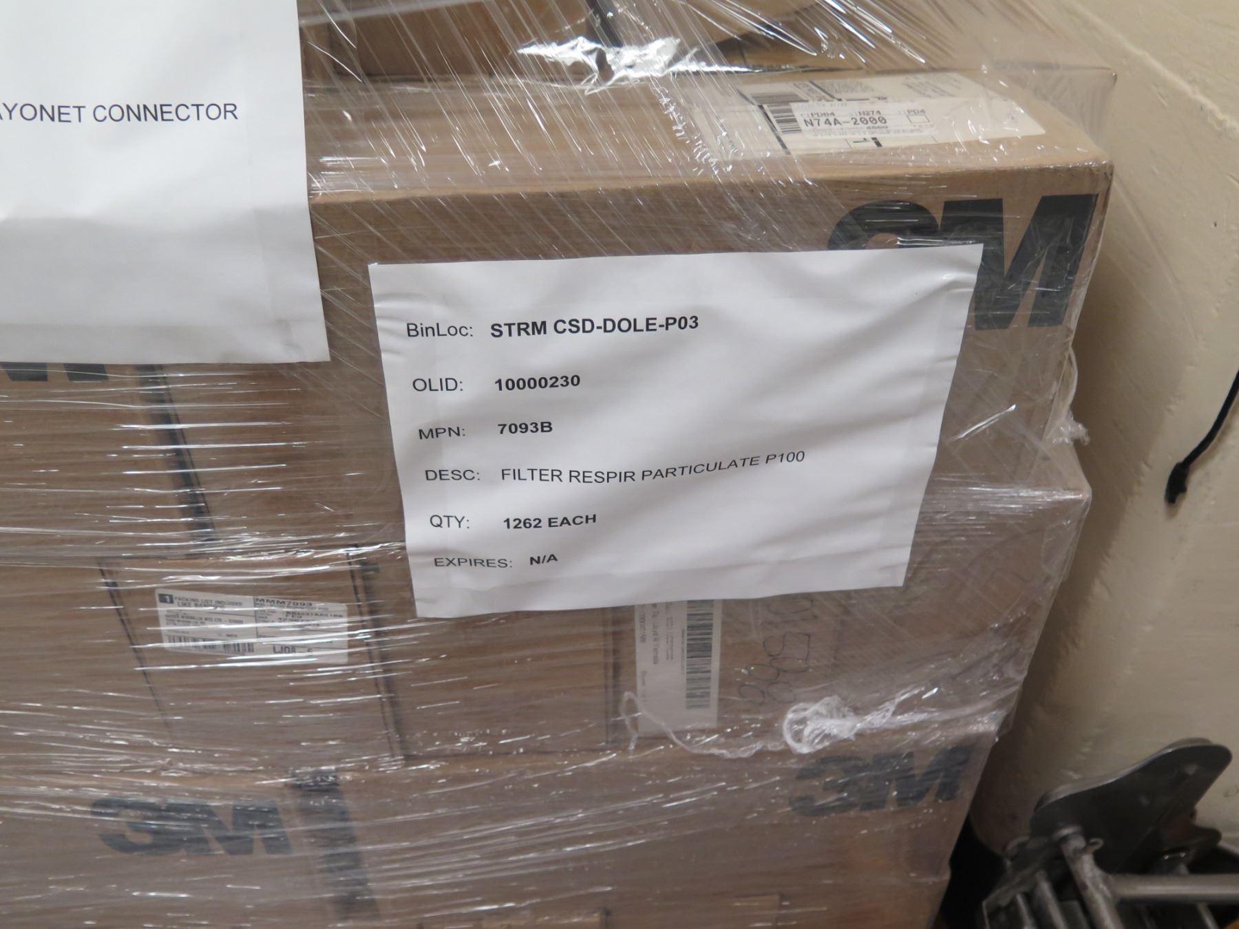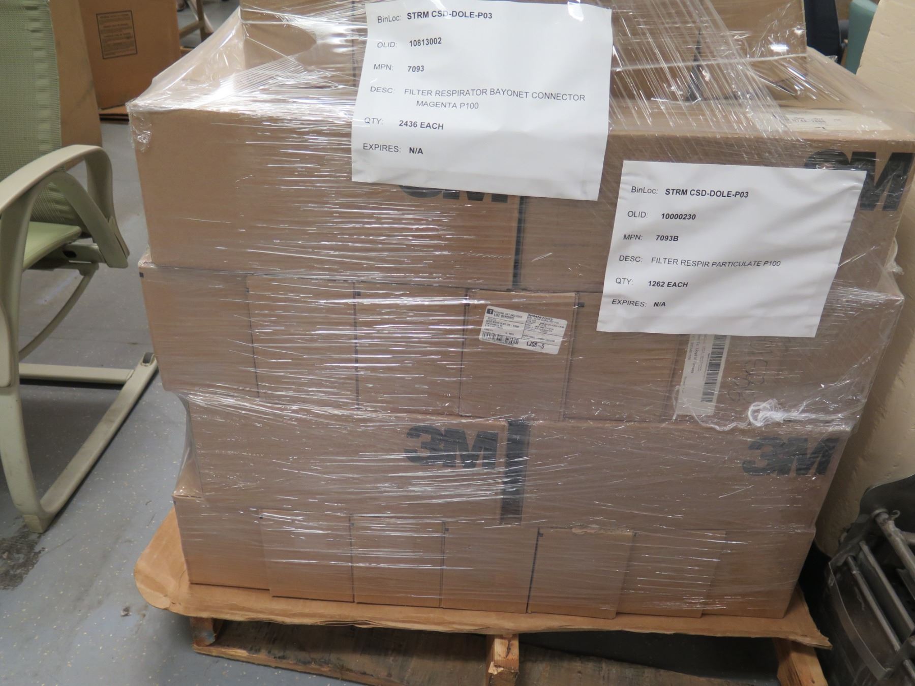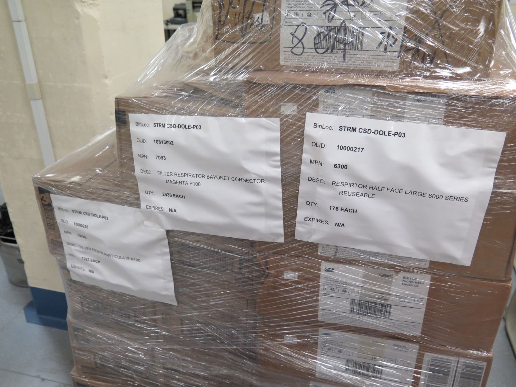 Contents of Pallet: 3M Respirators Half-Face Large 6000 Series & Bayonet Connectors
