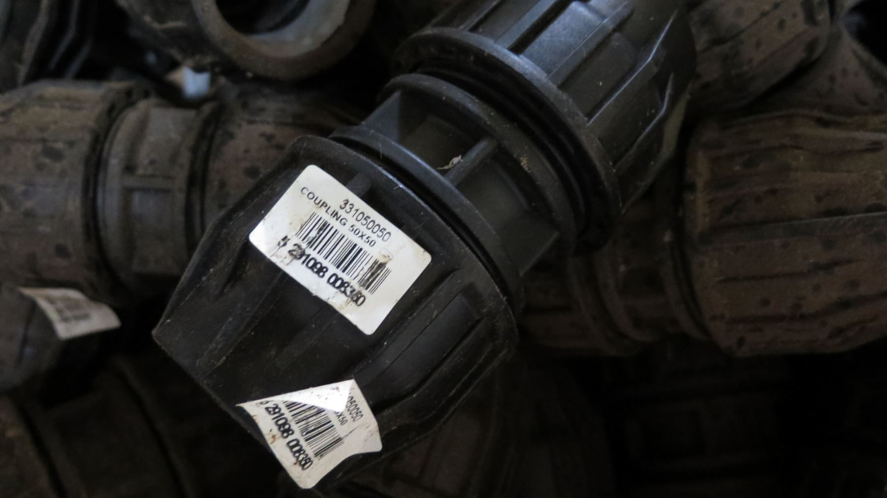 Contents of Pallet: Approx. 3 Plastic Containers & 1 Box of Misc. Fittings