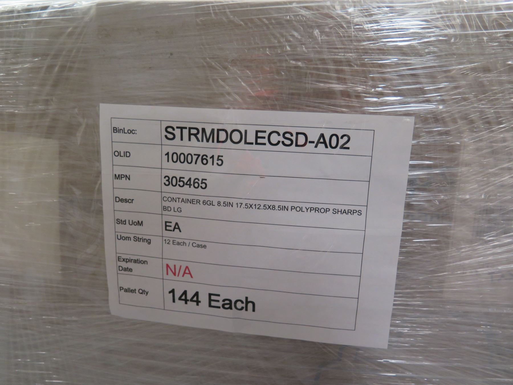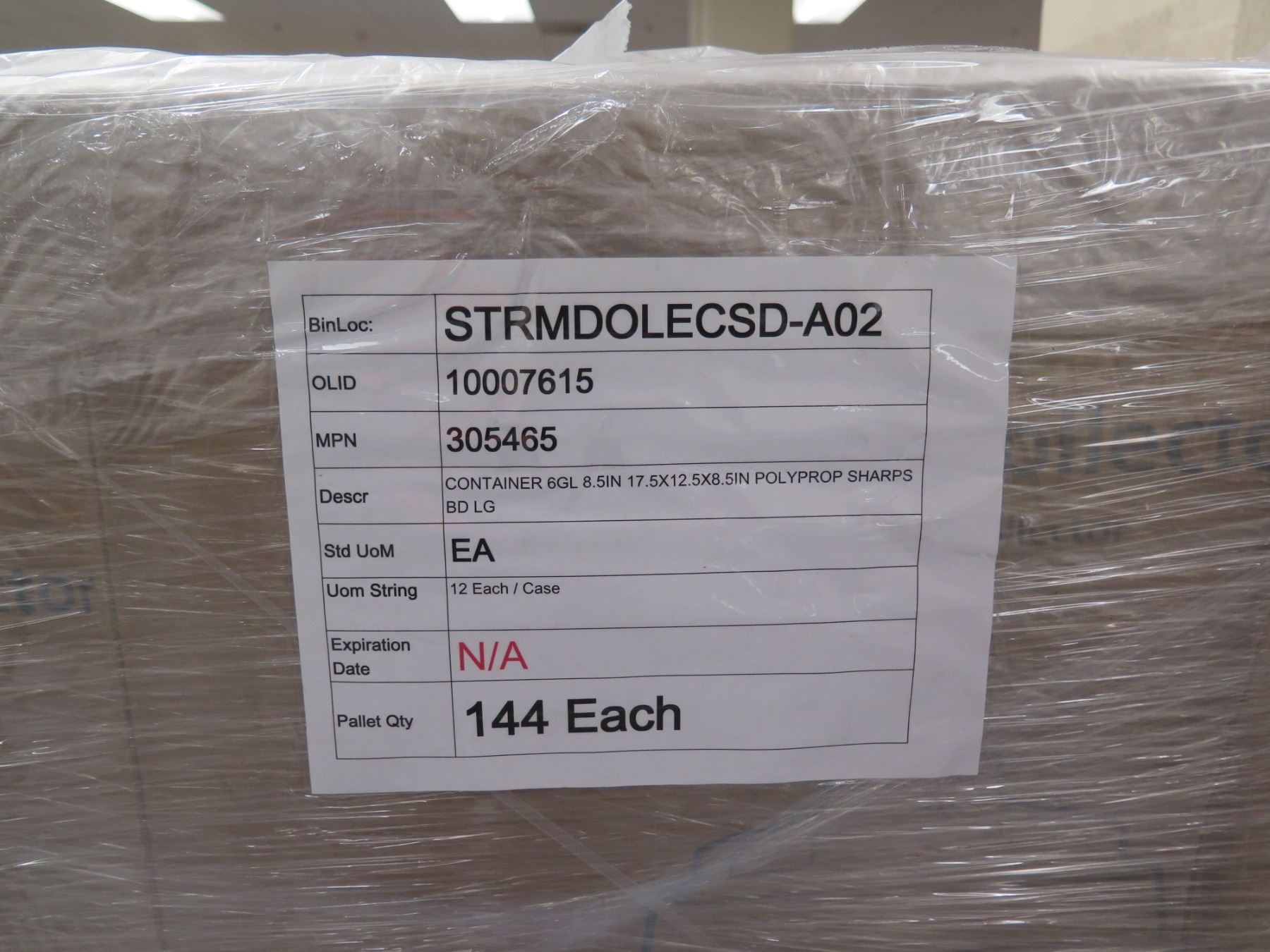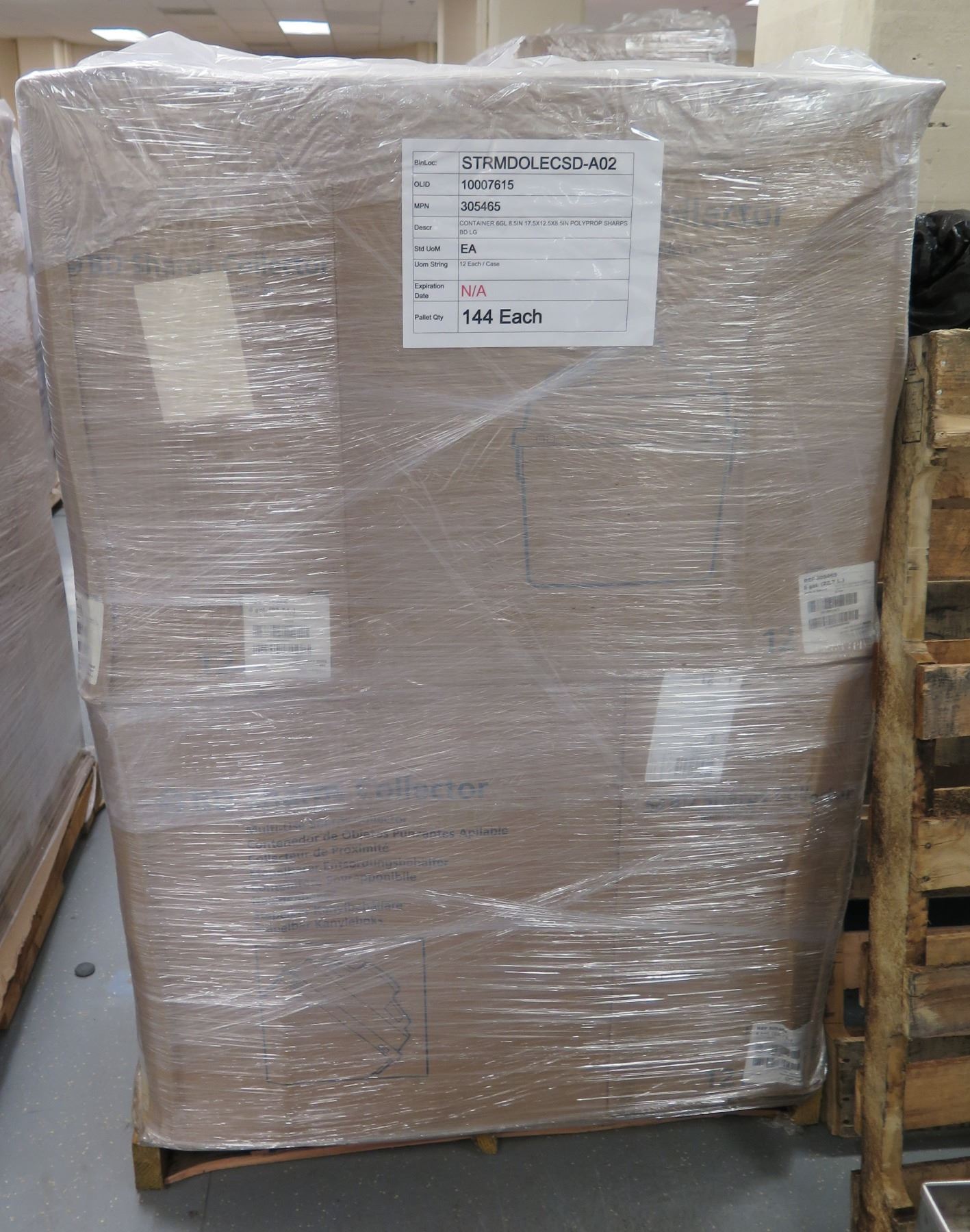 Contents of Pallet: Becton Dickinson 305465 Multi-Purpose Sharps Containers