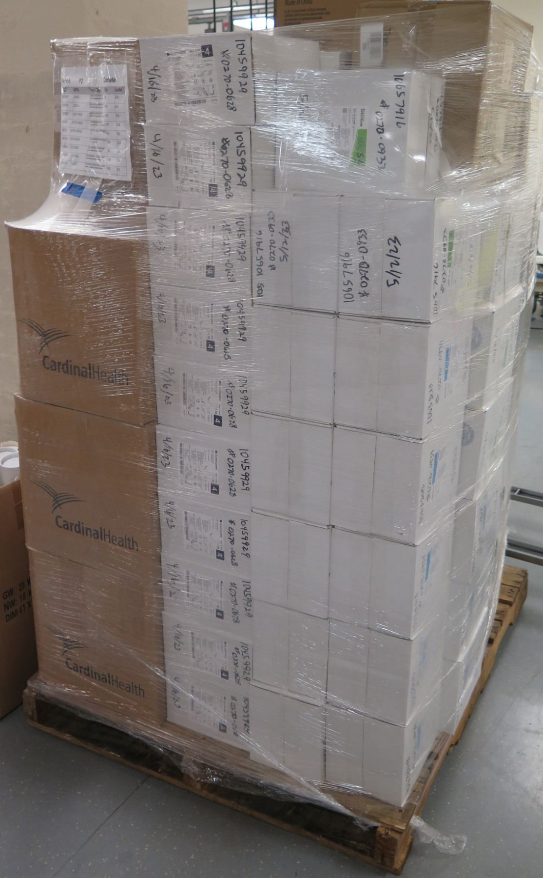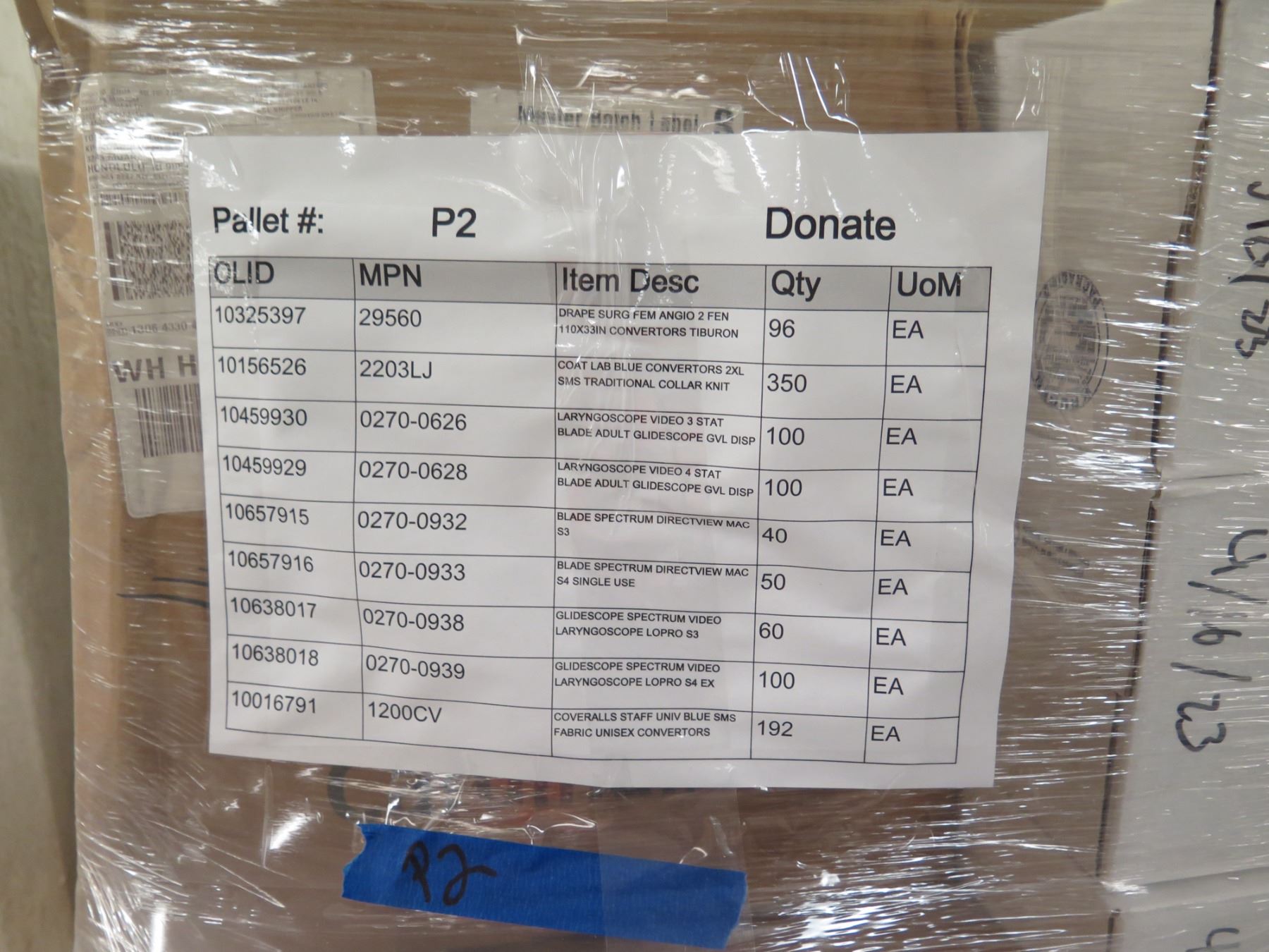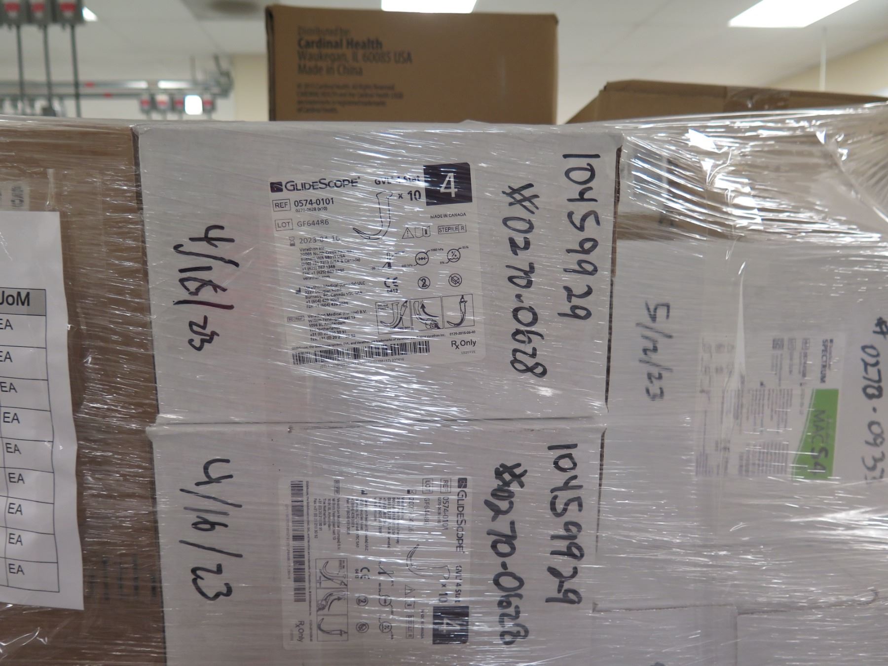 Contents of Pallet: GlideScope 074-0101 Laryngoscopes, Cardinal Health 29560 Surgical Gowns, etc