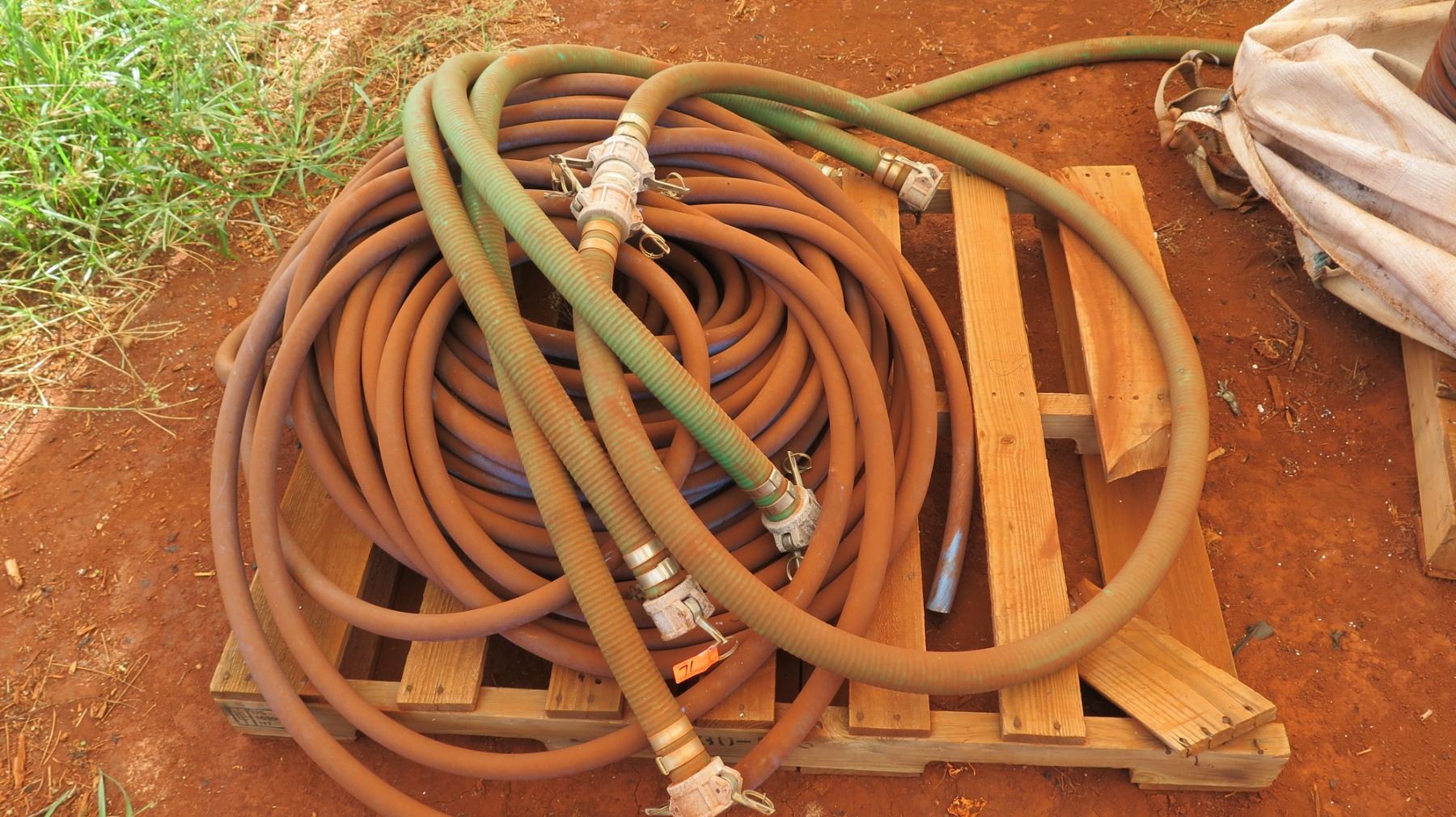 Contents of Pallet - Misc Hoses Pick up is at your own risk. Wasp nests were found when staging the items for sale, and there is a possibility of live wasps still remaining