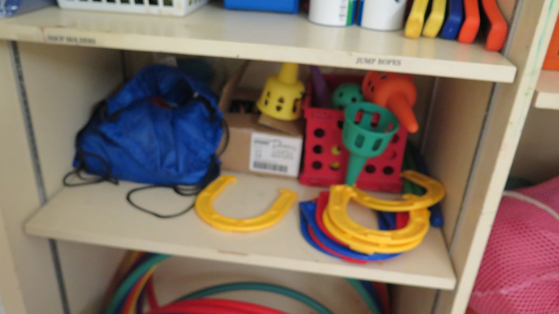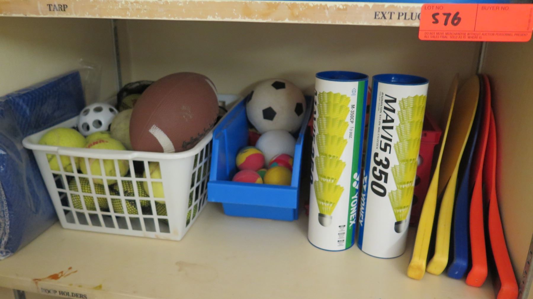 Contents of Shelf - Balls, Hula Hoops & Sports Equipment